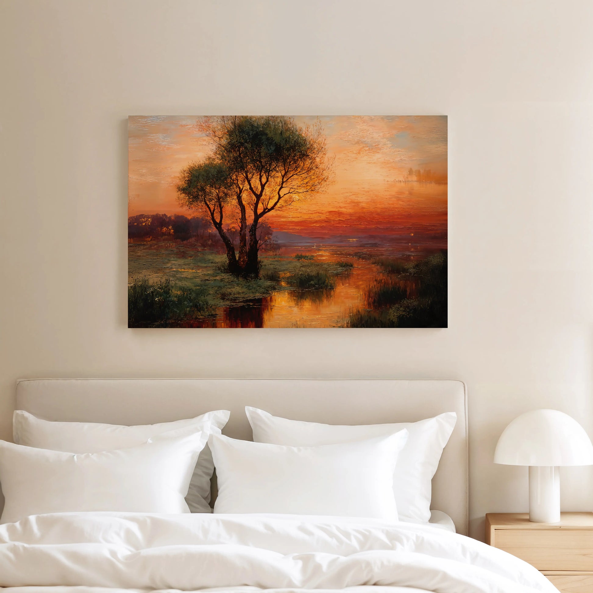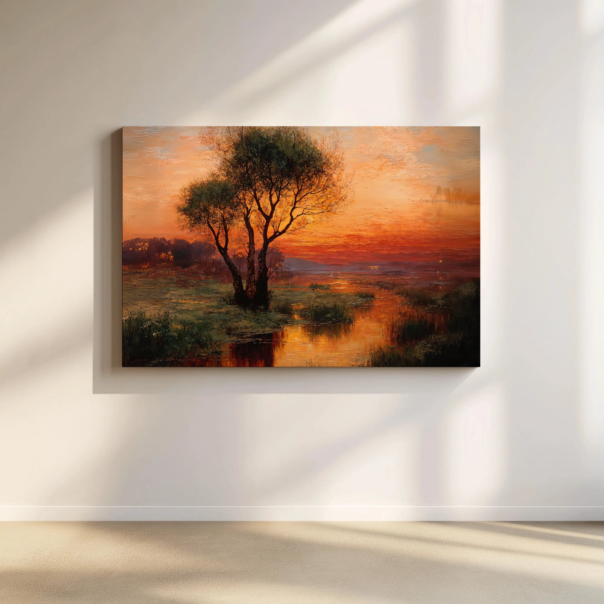 Afterglow adds elegant quietude to living rooms, bedrooms, or interior nooks longing for calm. Its gallery‑wrapped format draws you into the marsh’s embrace and invites a pause—in light, in reflection, in stillness.
