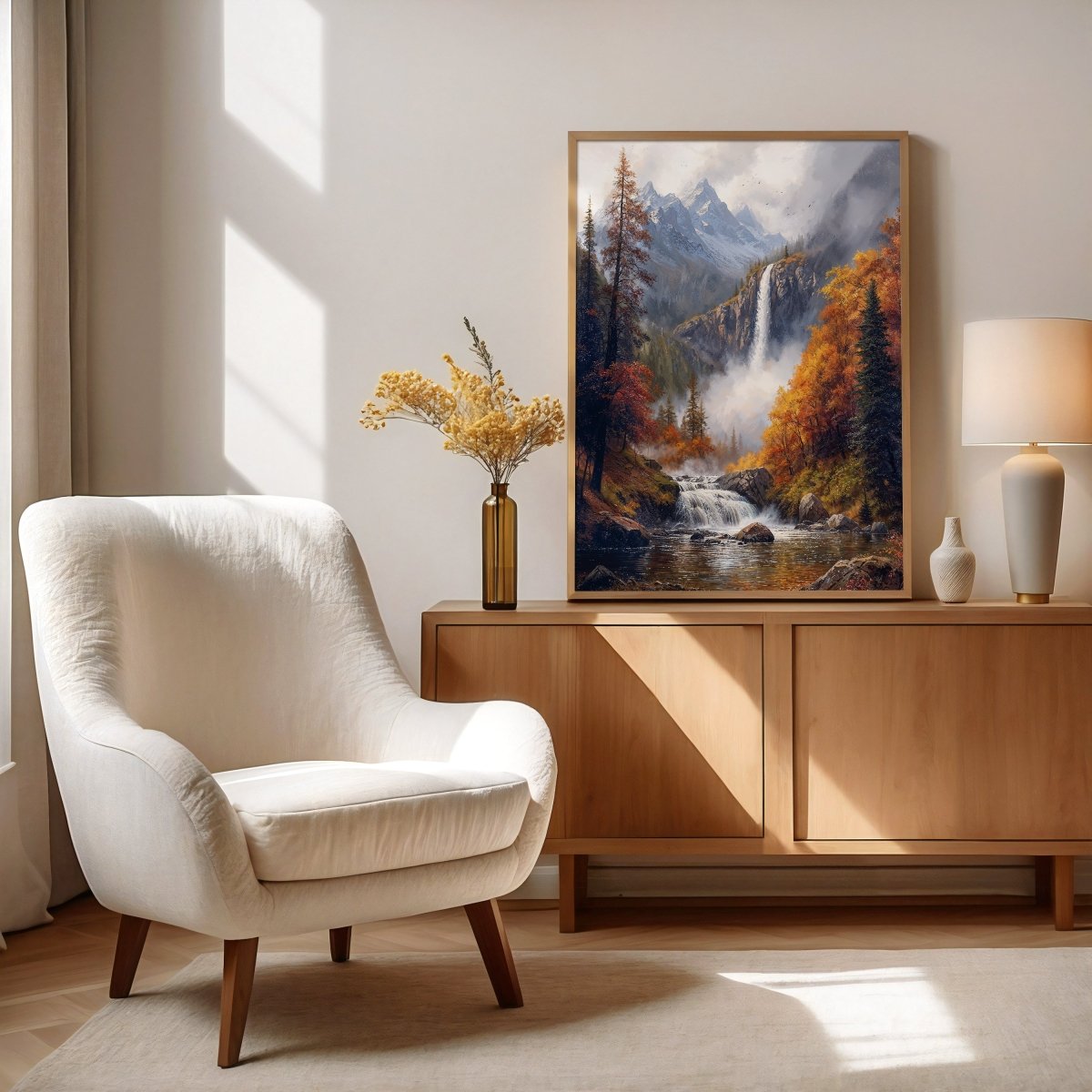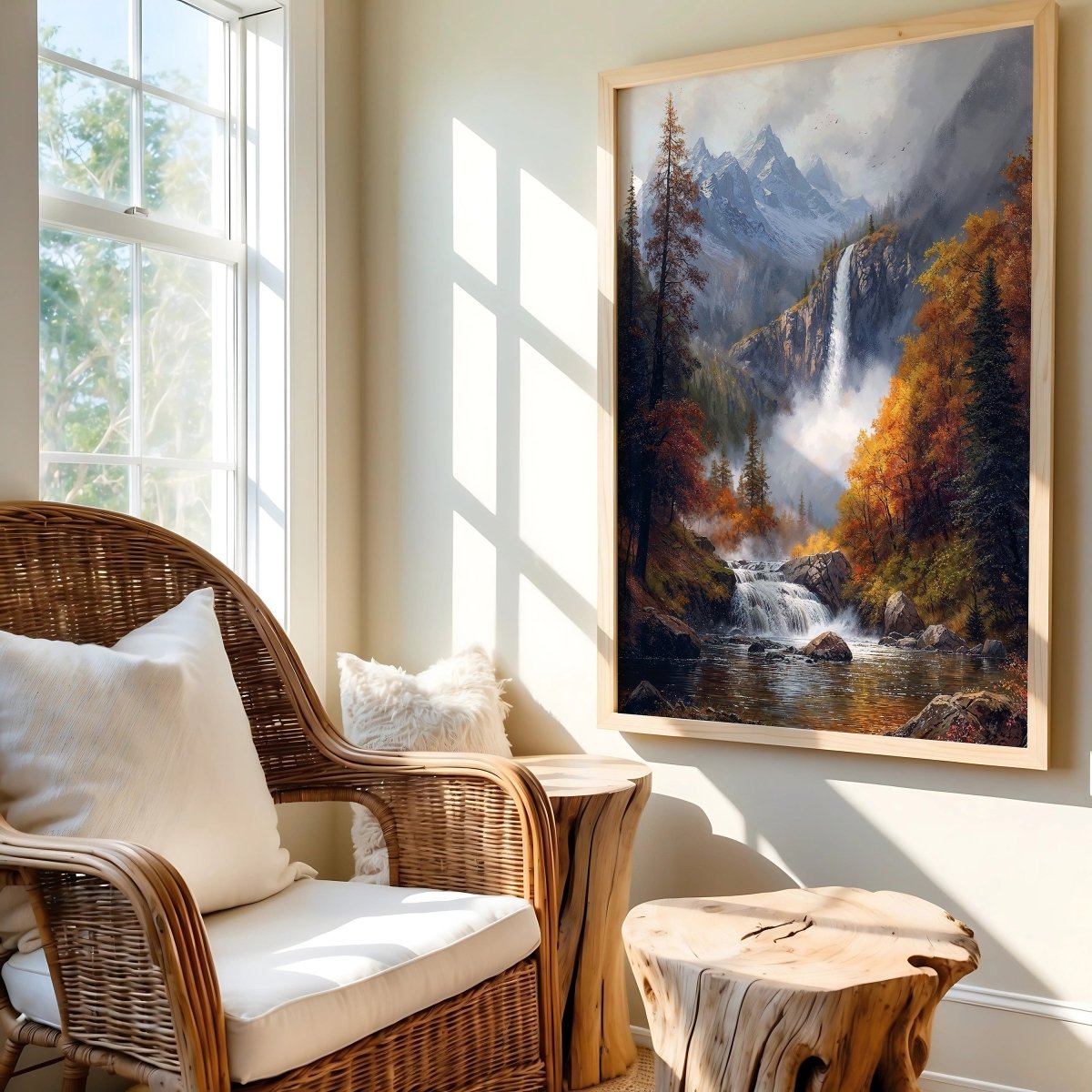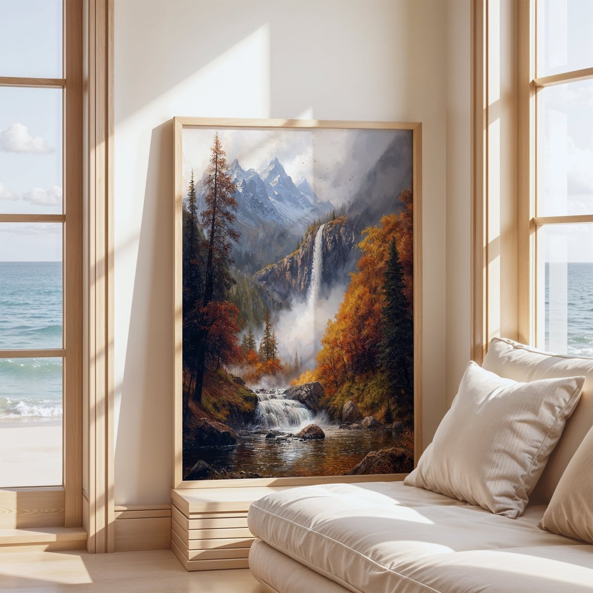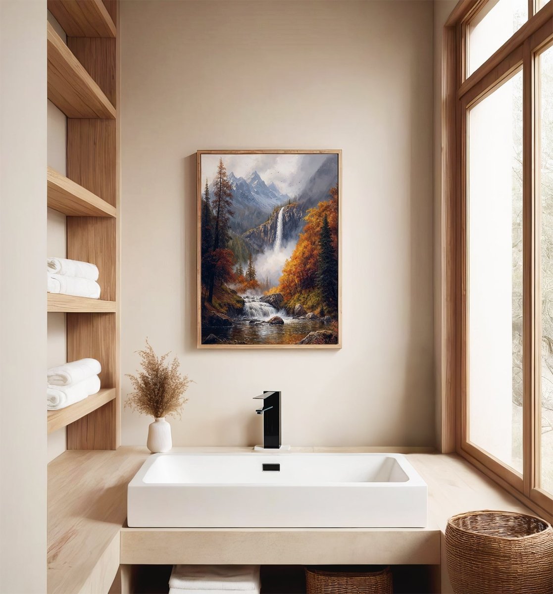 A perfect statement piece for grounded interiors, nature sanctuaries, or any space that honors balance and elevation. Cascade Majesty is not merely scenic—it is elemental presence. A stillness that thunders. A vision that roots and uplifts.