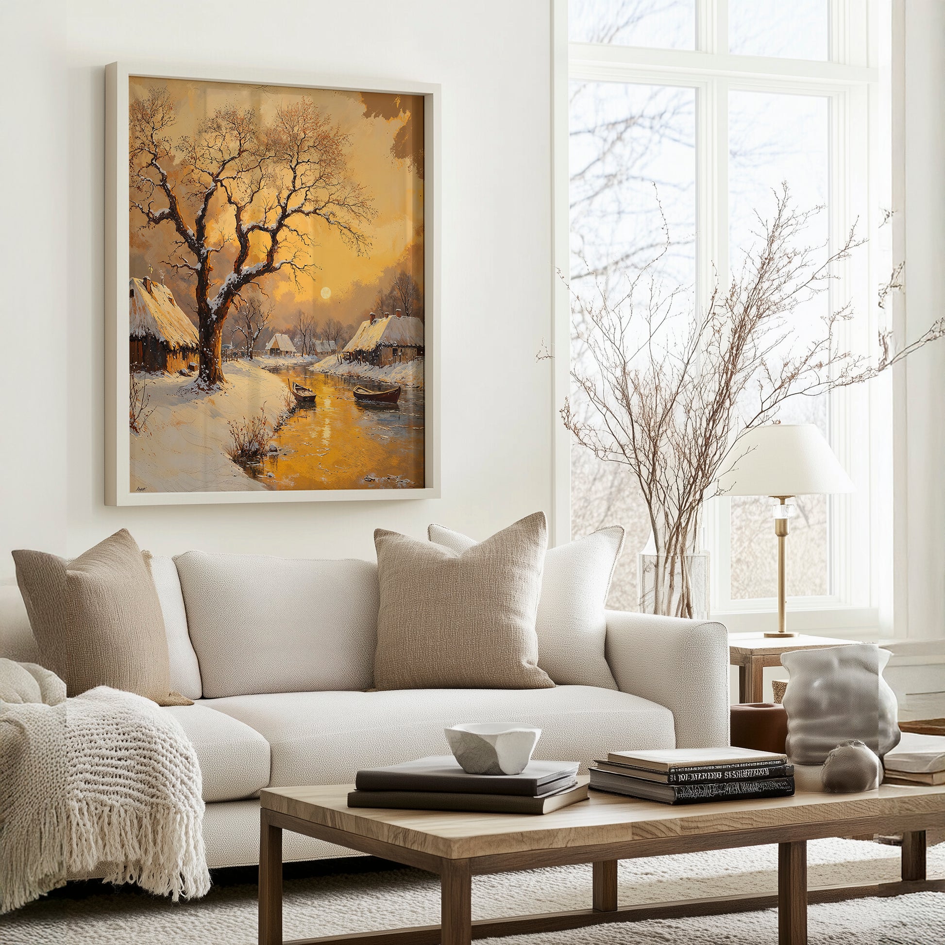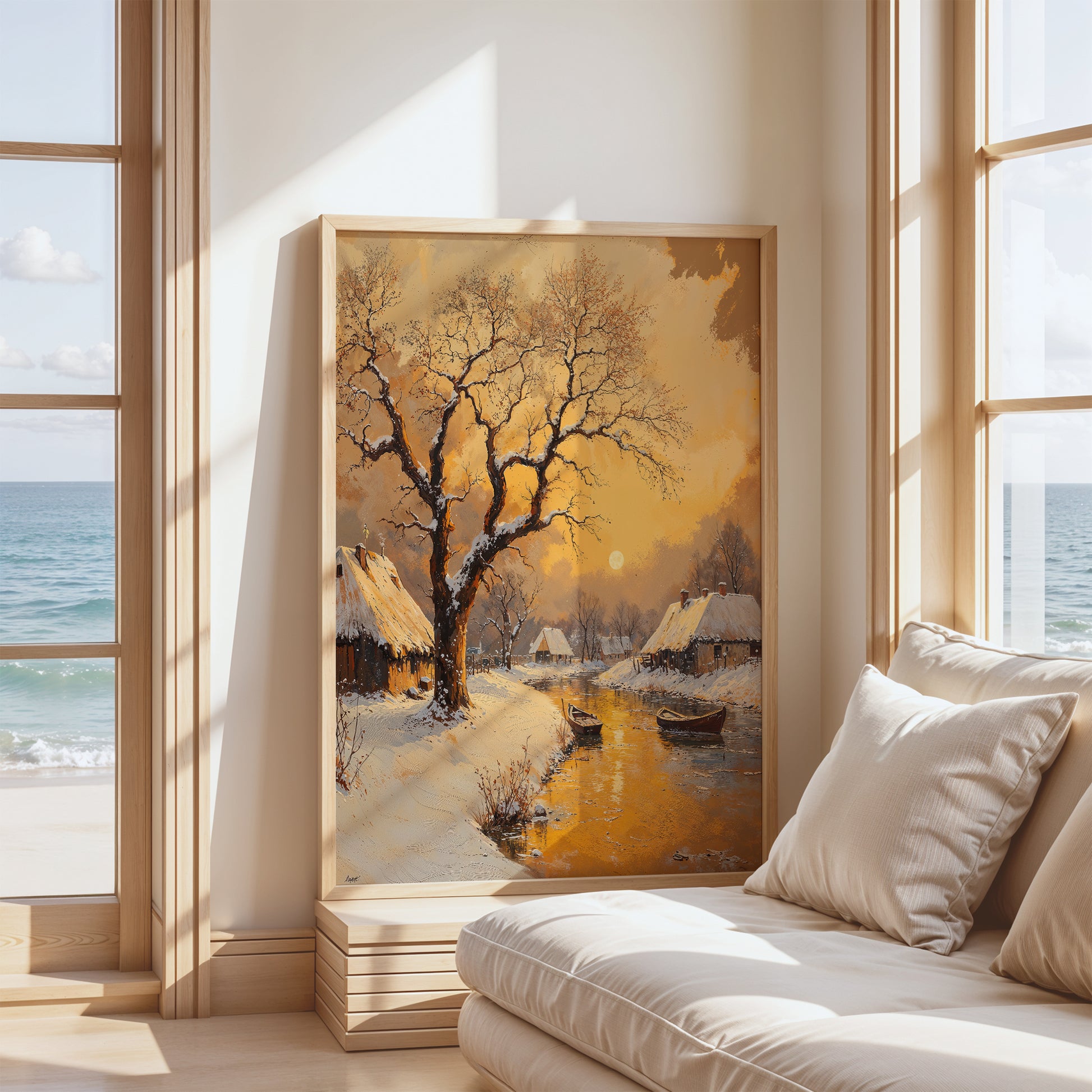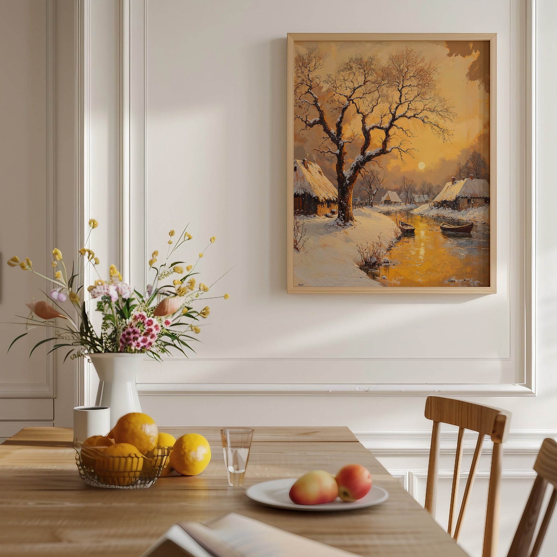 A luminous addition to winter-themed interiors, reading spaces, or mountain lodges, this work offers more than seasonal beauty. It extends a moment of peace, silent, golden, and reverently still.