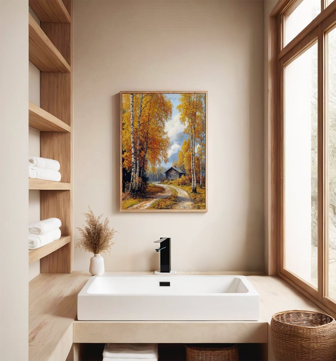 Perfect for transitional interiors, entryways, or spaces dedicated to grounding and reflection, Birchwood Reverie offers more than scenery—it offers pause. A journey toward simplicity. A place where color and calm converge.