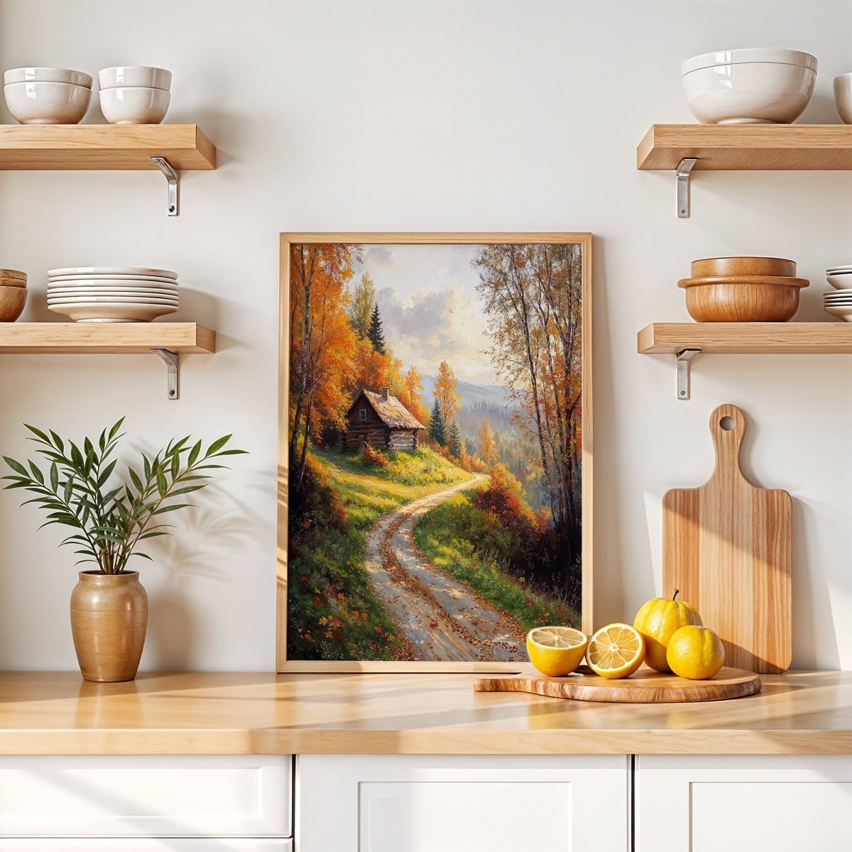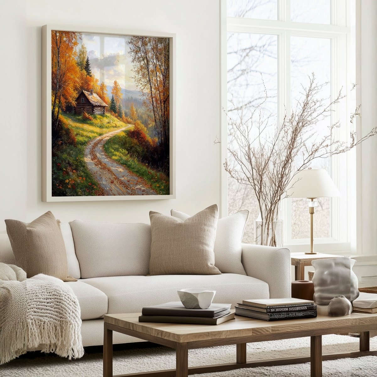 Perfect for cabin-inspired interiors, autumn gallery spaces, or nature-themed rooms, Cabin in Golden Hills offers more than warmth—it offers return. A threshold where season meets shelter, and every turn feels familiar.
