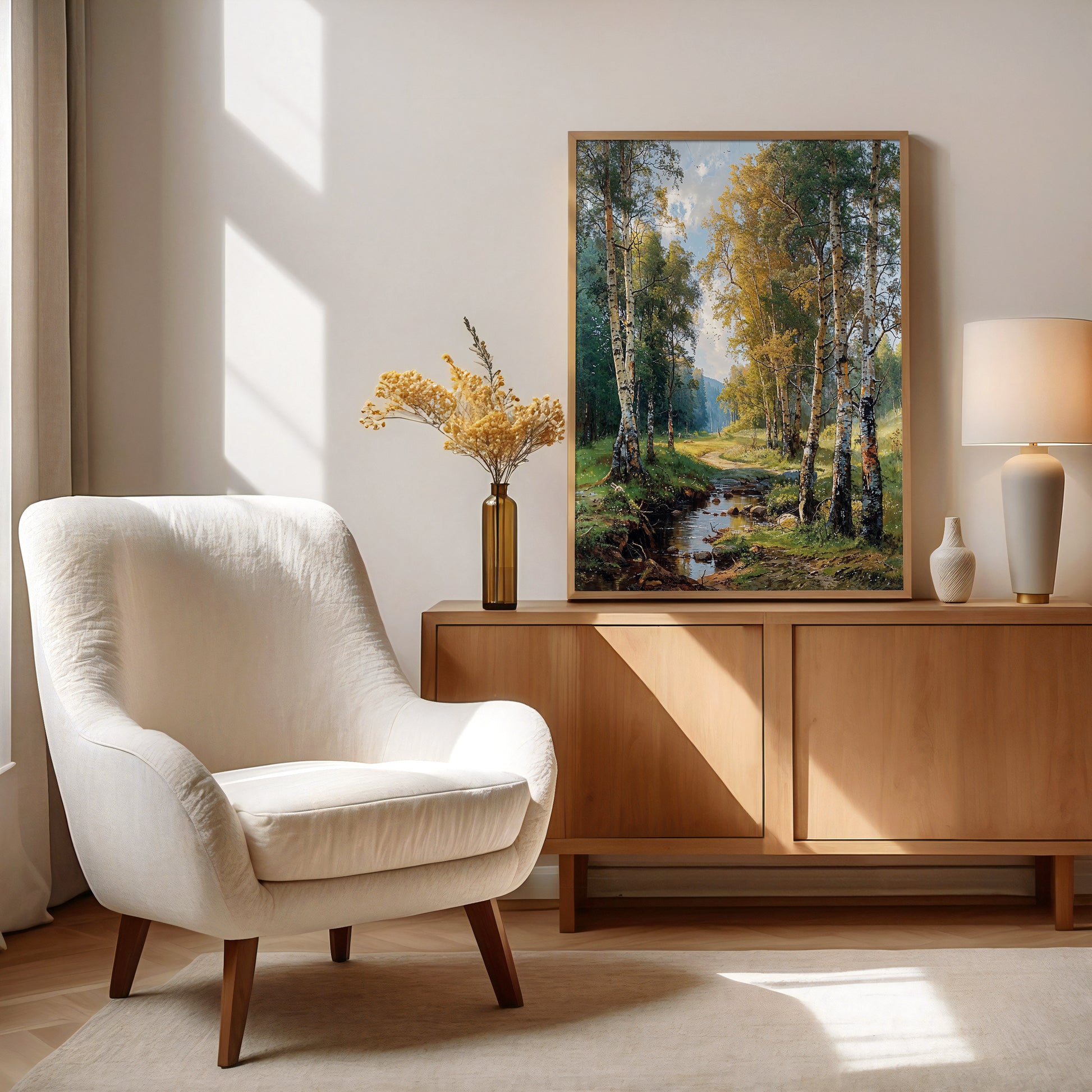 Suited for nature-inspired bedrooms, rustic retreats, meditation rooms, or gallery walls, the artwork offers more than beauty—it extends presence. A moment between light and silence, walked slowly and held long after the path ends.