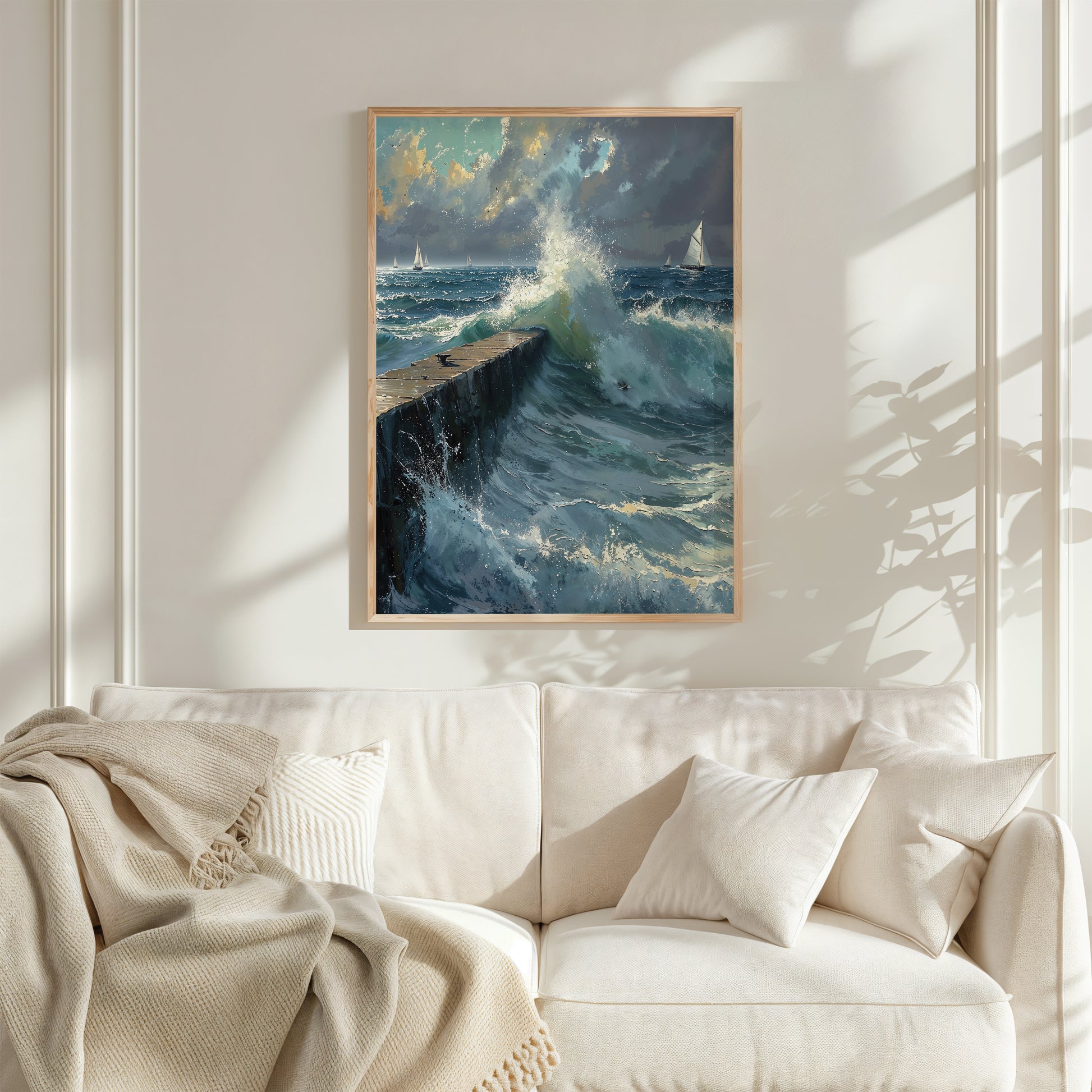 Ideal for coastal interiors or spaces that require dynamic intensity, this painting offers presence over prettiness. It is not merely a seascape—it is confrontation, momentum, and awe distilled.