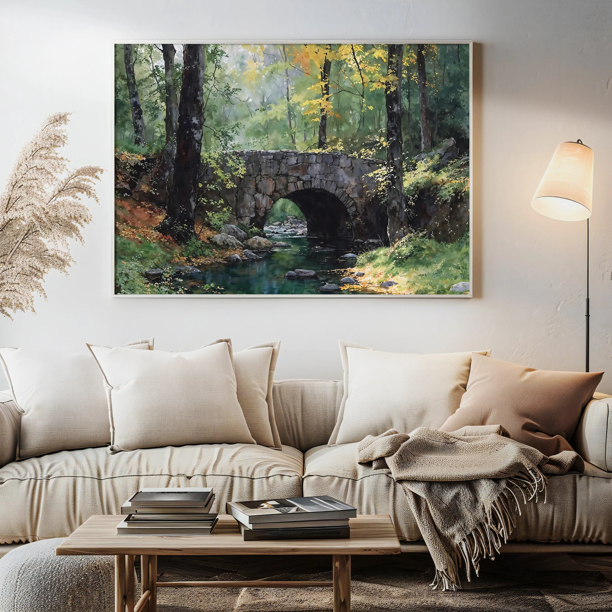 Printed on gallery-wrapped stretched canvas, this tranquil woodland scene adds rustic warmth and a touch of timeless nature to your home or workspace.