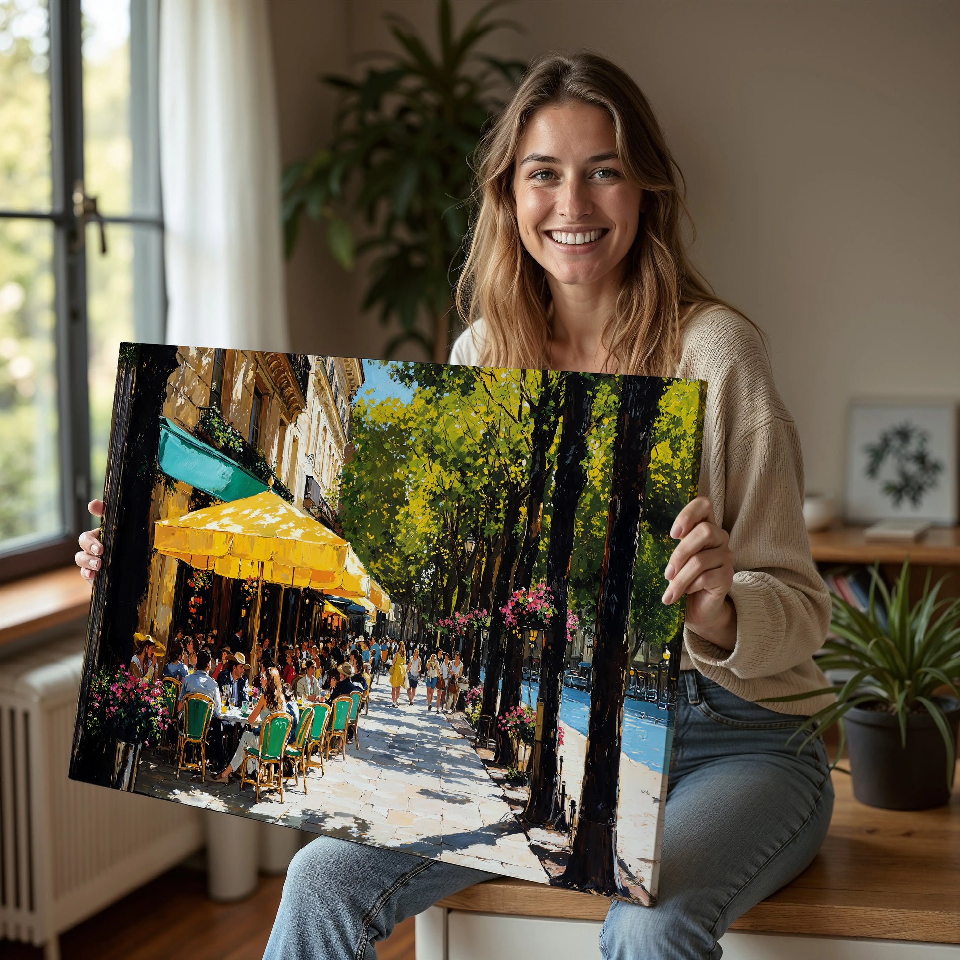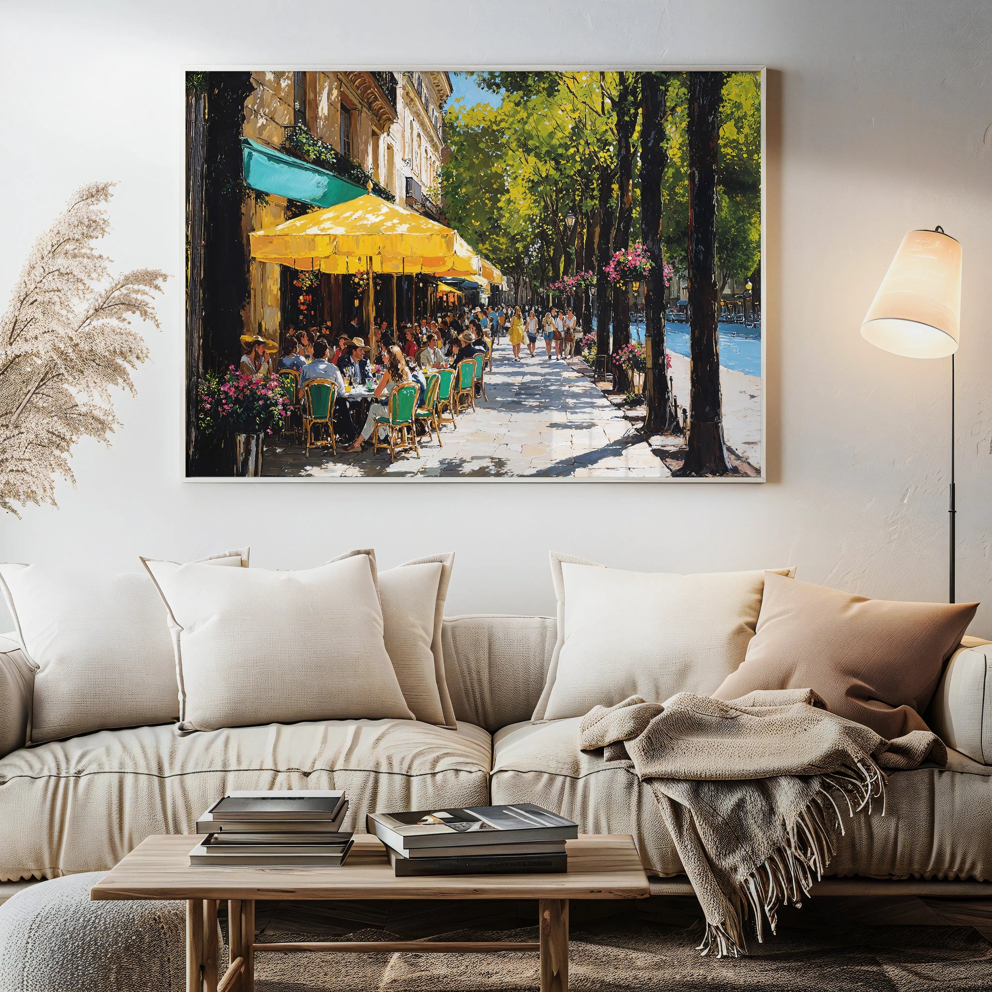 Printed on premium stretched canvas, this artwork brings Parisian charm and sunny serenity into any living space. Ideal for kitchens, dining areas, or anywhere that needs a splash of warmth and culture.