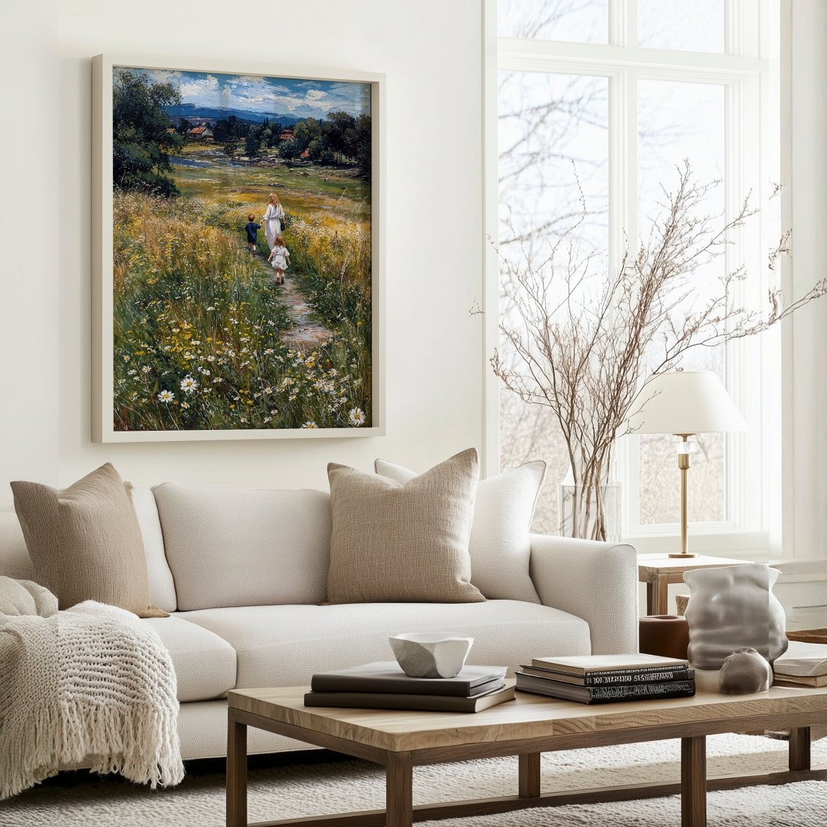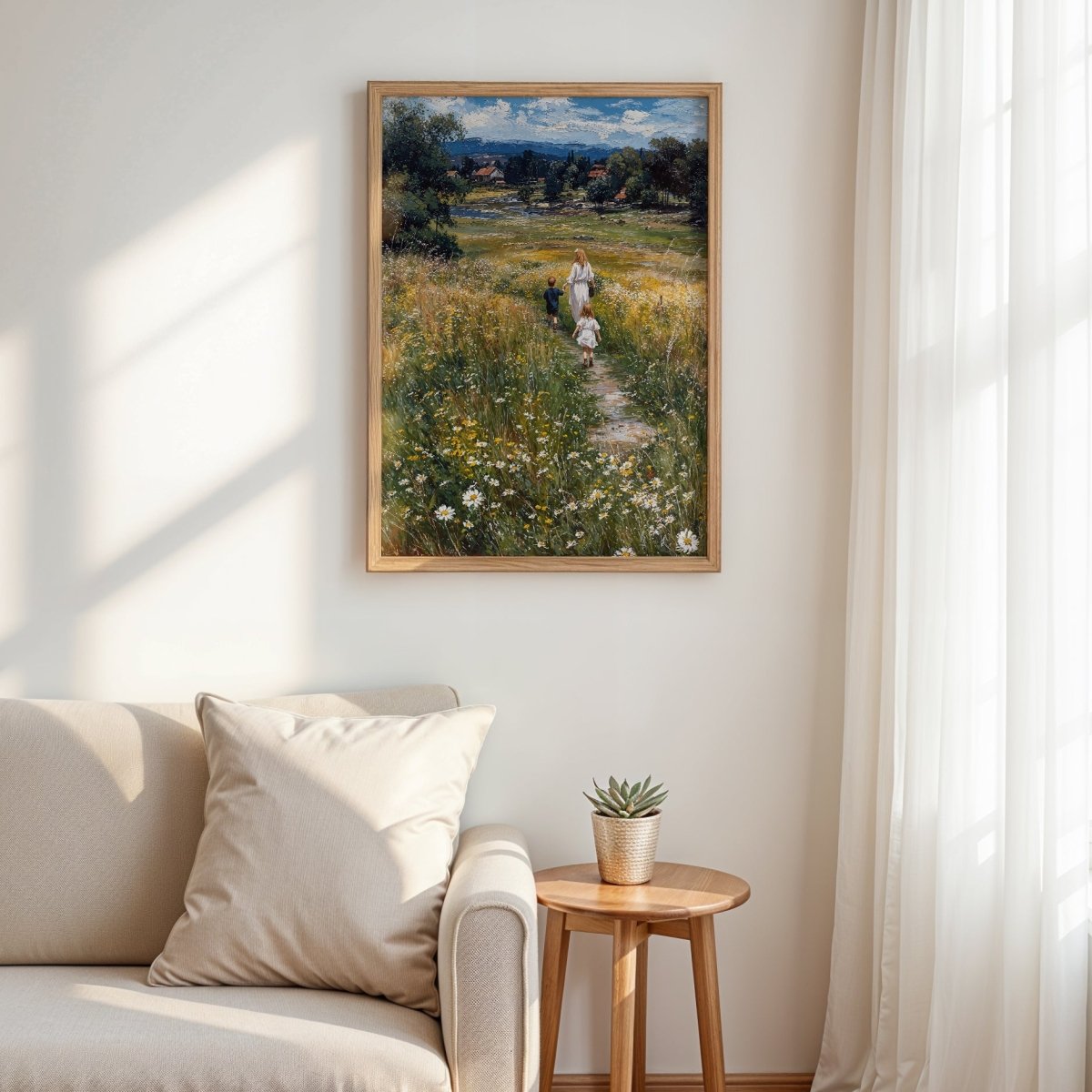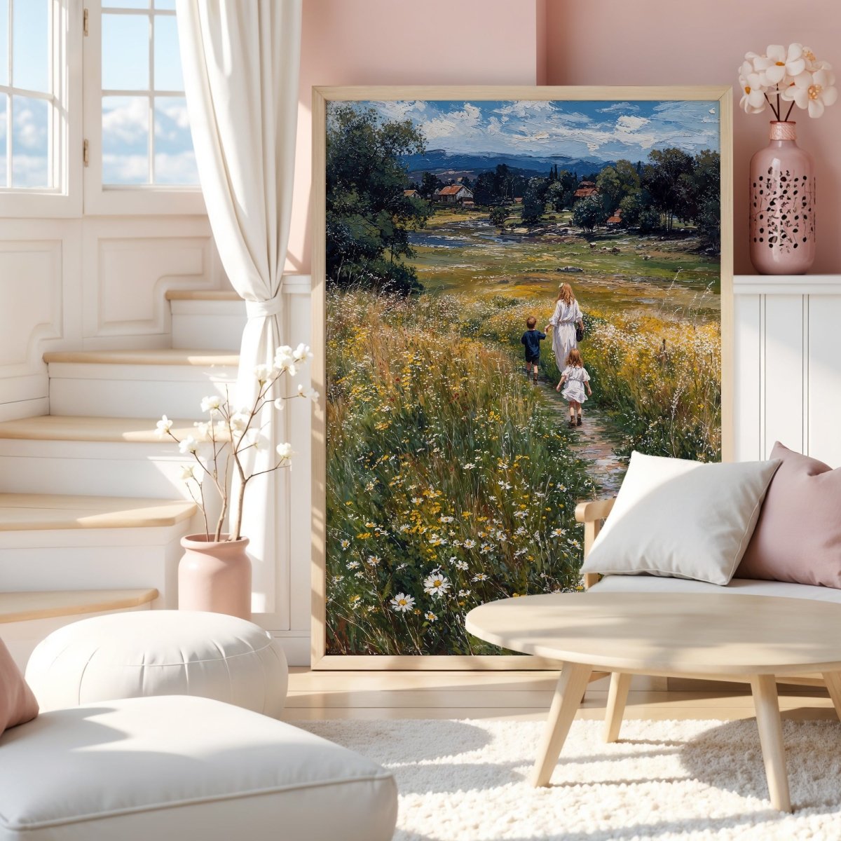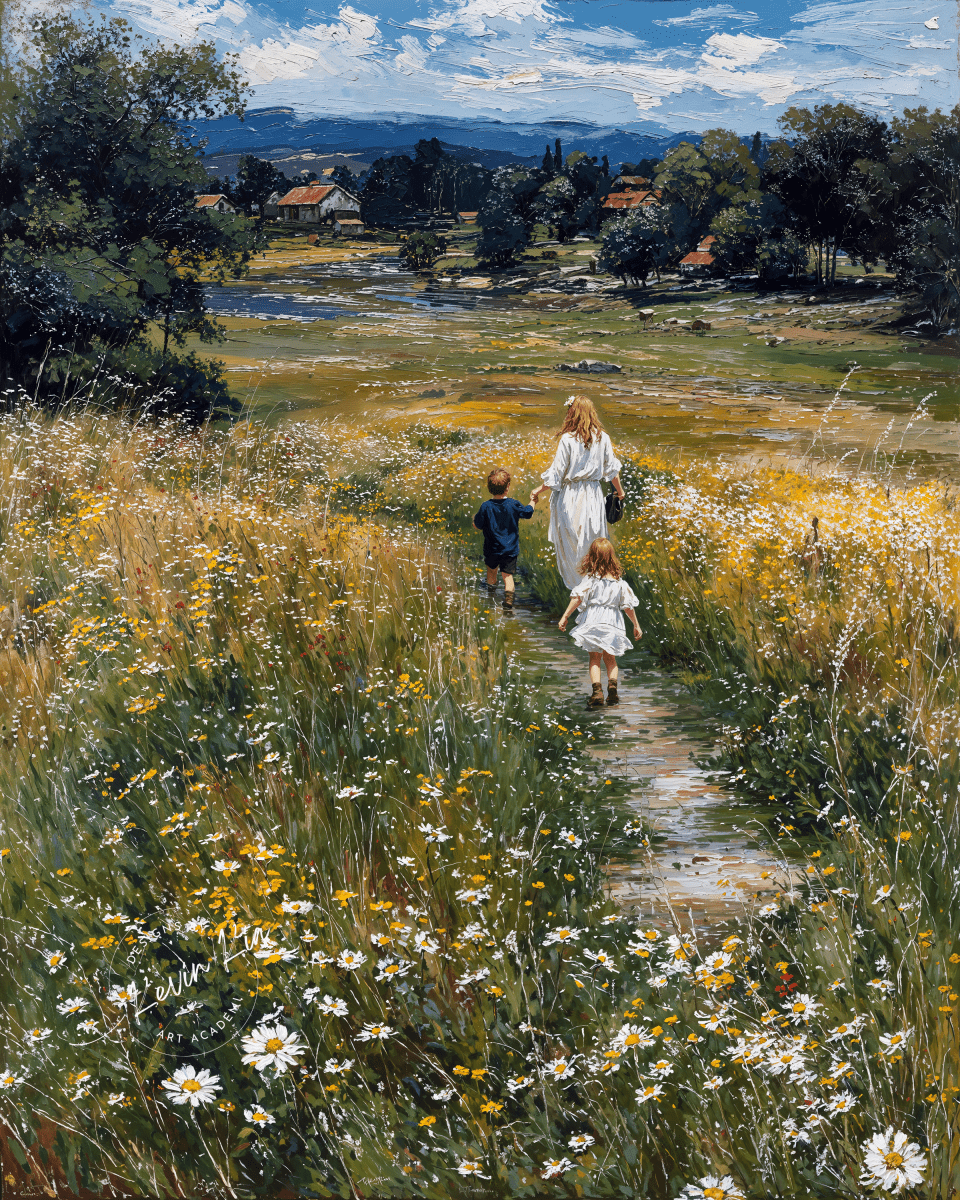 Perfect for spaces that celebrate warmth, memory, and connection, the painting brings a pastoral serenity into any home. Its presence invites reflection on family, belonging, and the quiet rhythms of rural life. In Charisma, nature becomes both backdrop and embrace, framing human tenderness within the boundless poetry of the earth.