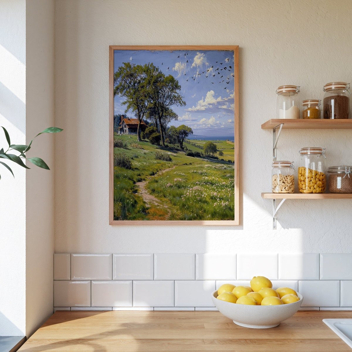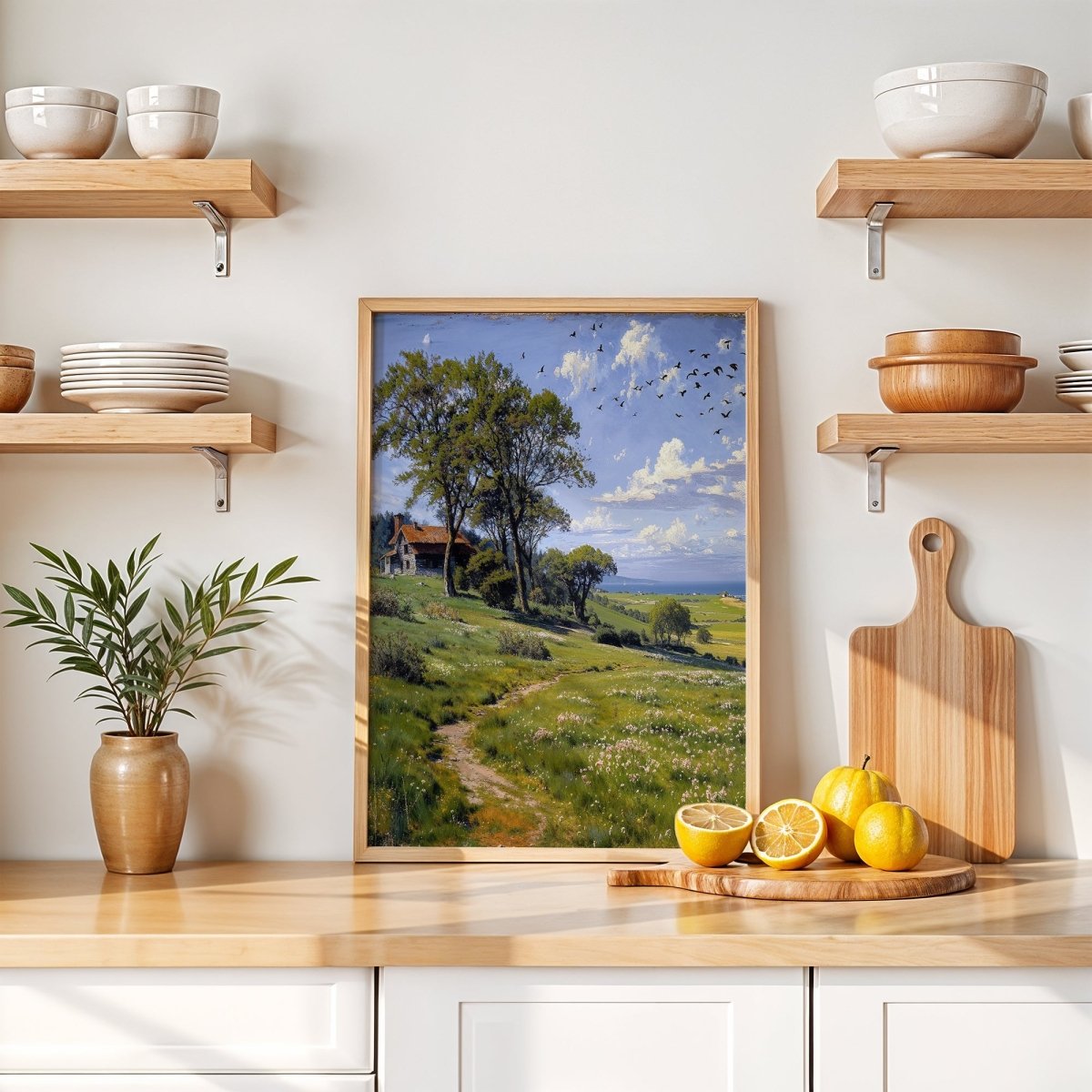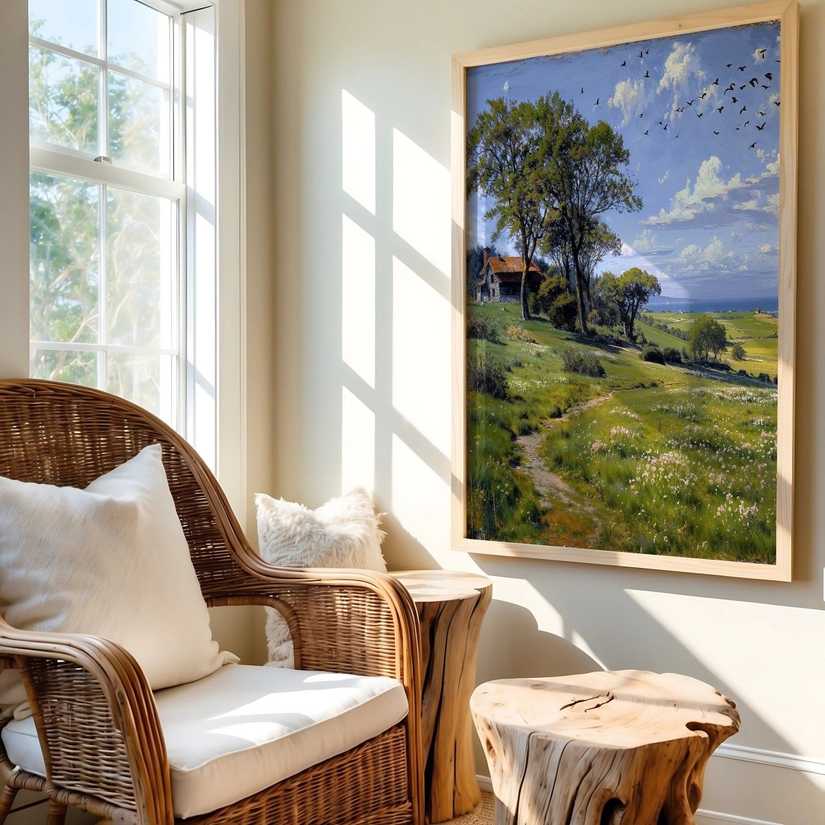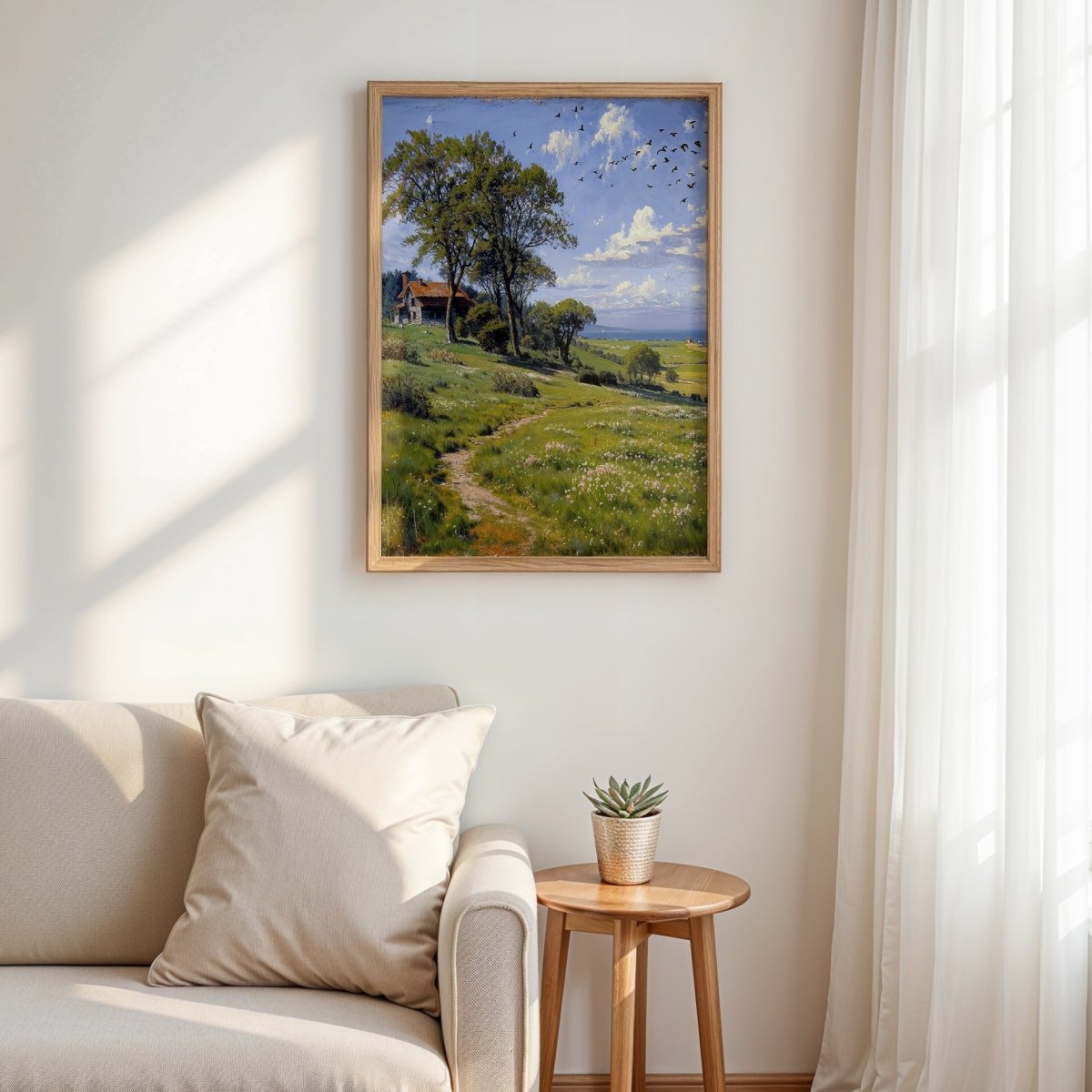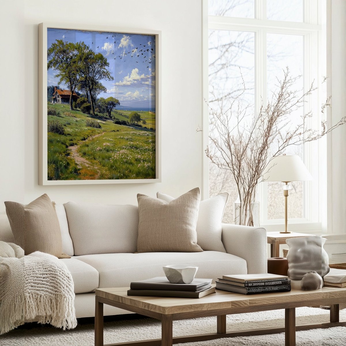 Perfect for serene living rooms, reading nooks, or transitional spaces craving calm, the artwork becomes both journey and resting place—light-filled, open, and profoundly still.
