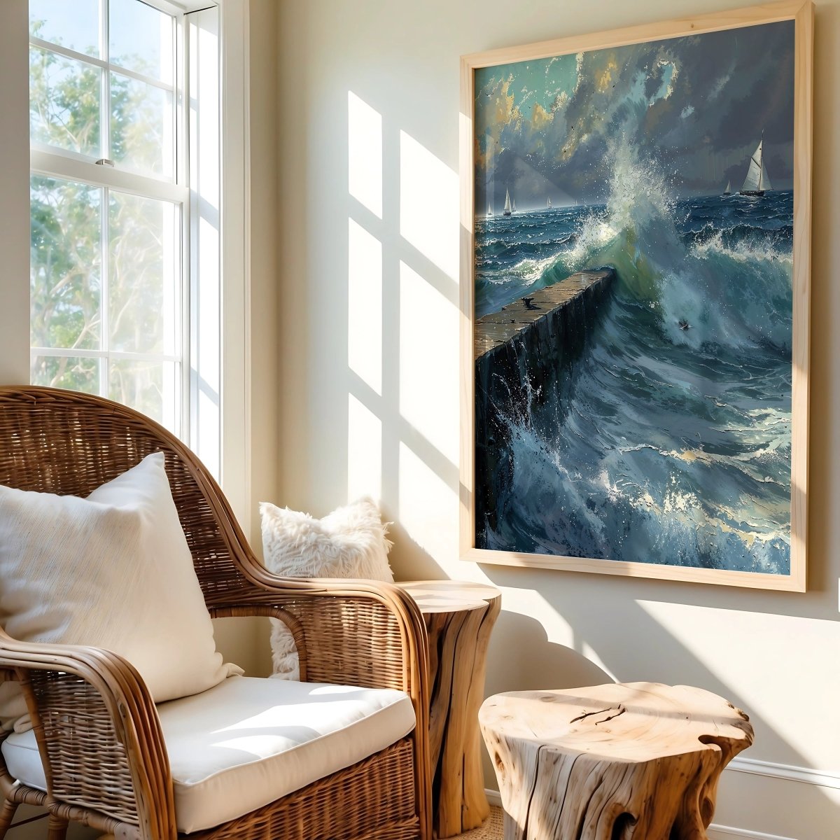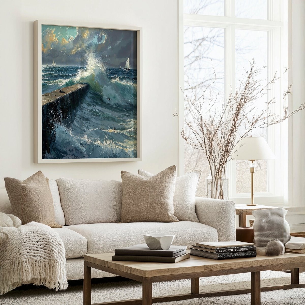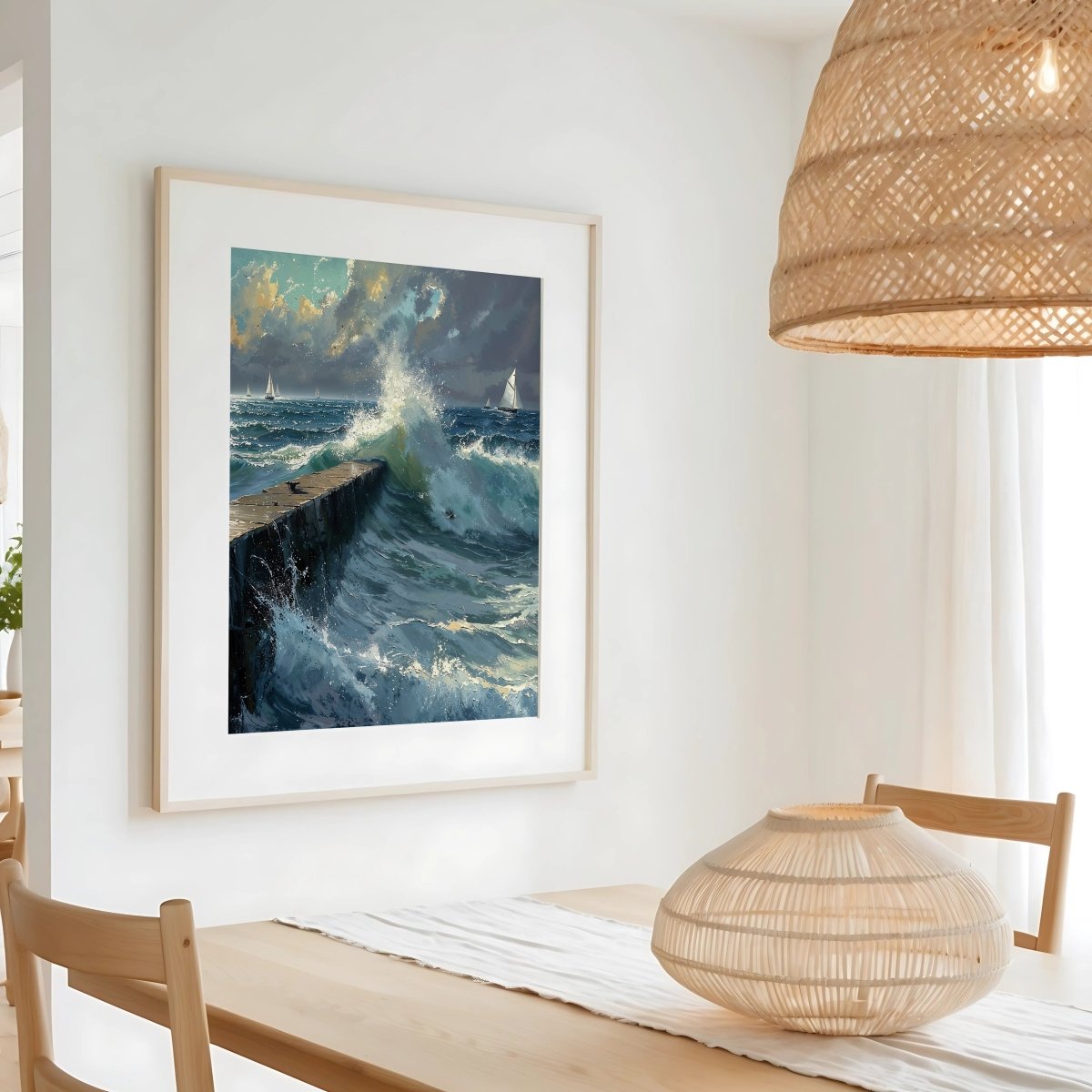 Ideal for coastal interiors or spaces that require dynamic intensity, this painting offers presence over prettiness. It is not merely a seascape—it is confrontation, momentum, and awe distilled.