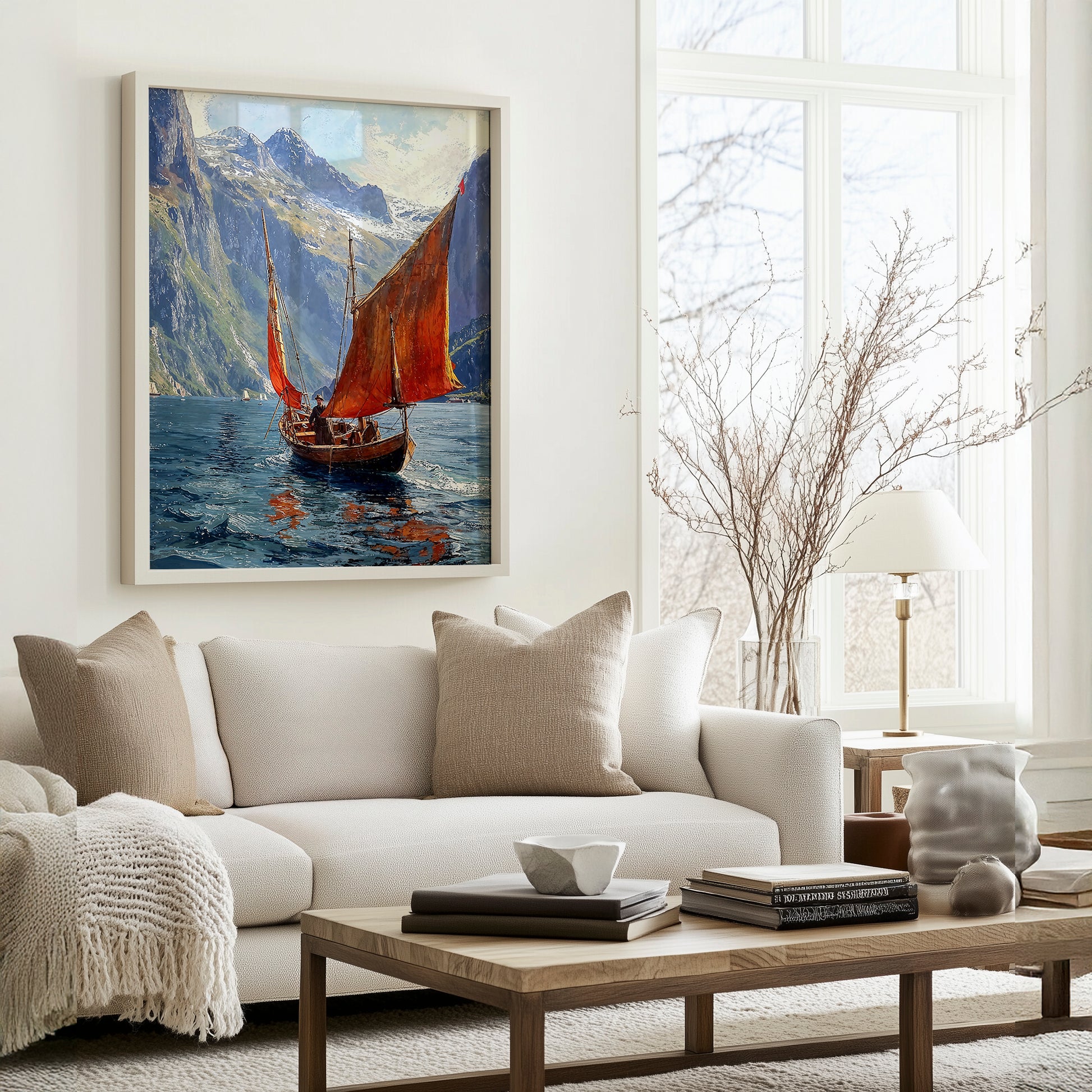 Ideal for contemplative interiors, study walls, or spaces drawn to purposeful calm, Crimson Voyage evokes the spirit of personal odyssey. No turbulence, no trumpet—just a vessel, its path, and the color of conviction.