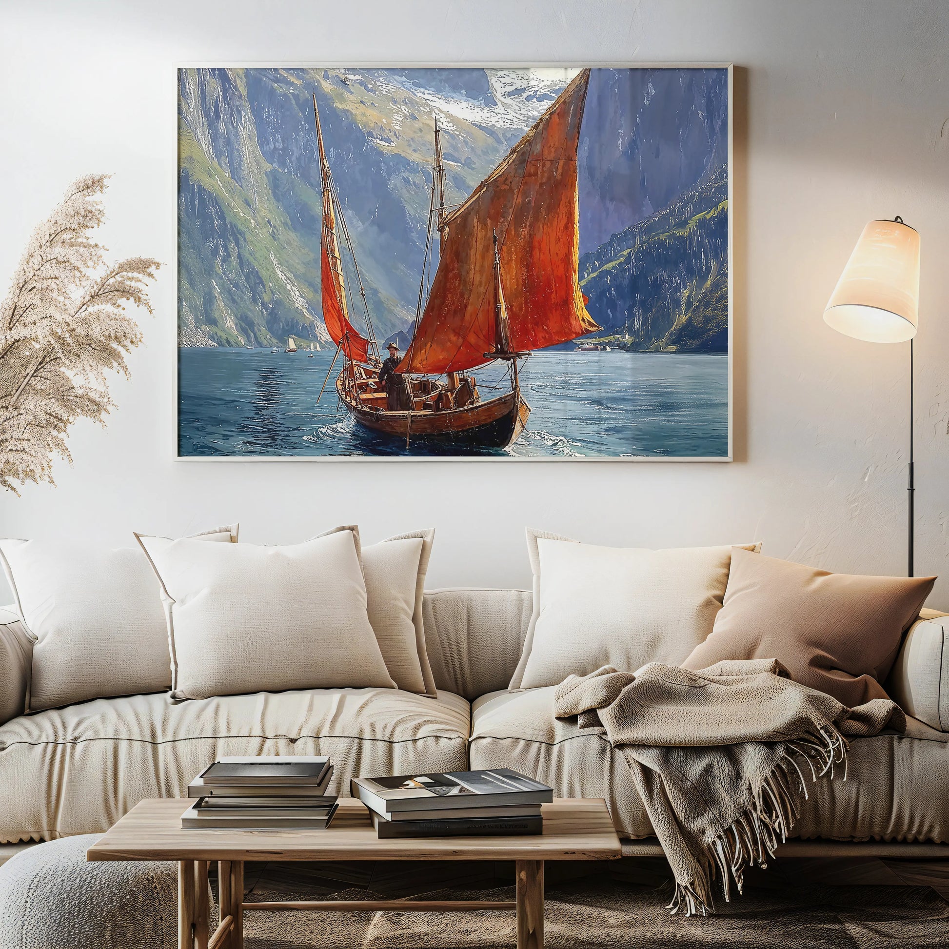 Ideal for contemplative interiors, study walls, or spaces drawn to purposeful calm, Crimson Voyage evokes the spirit of personal odyssey. No turbulence, no trumpet—just a vessel, its path, and the color of conviction.