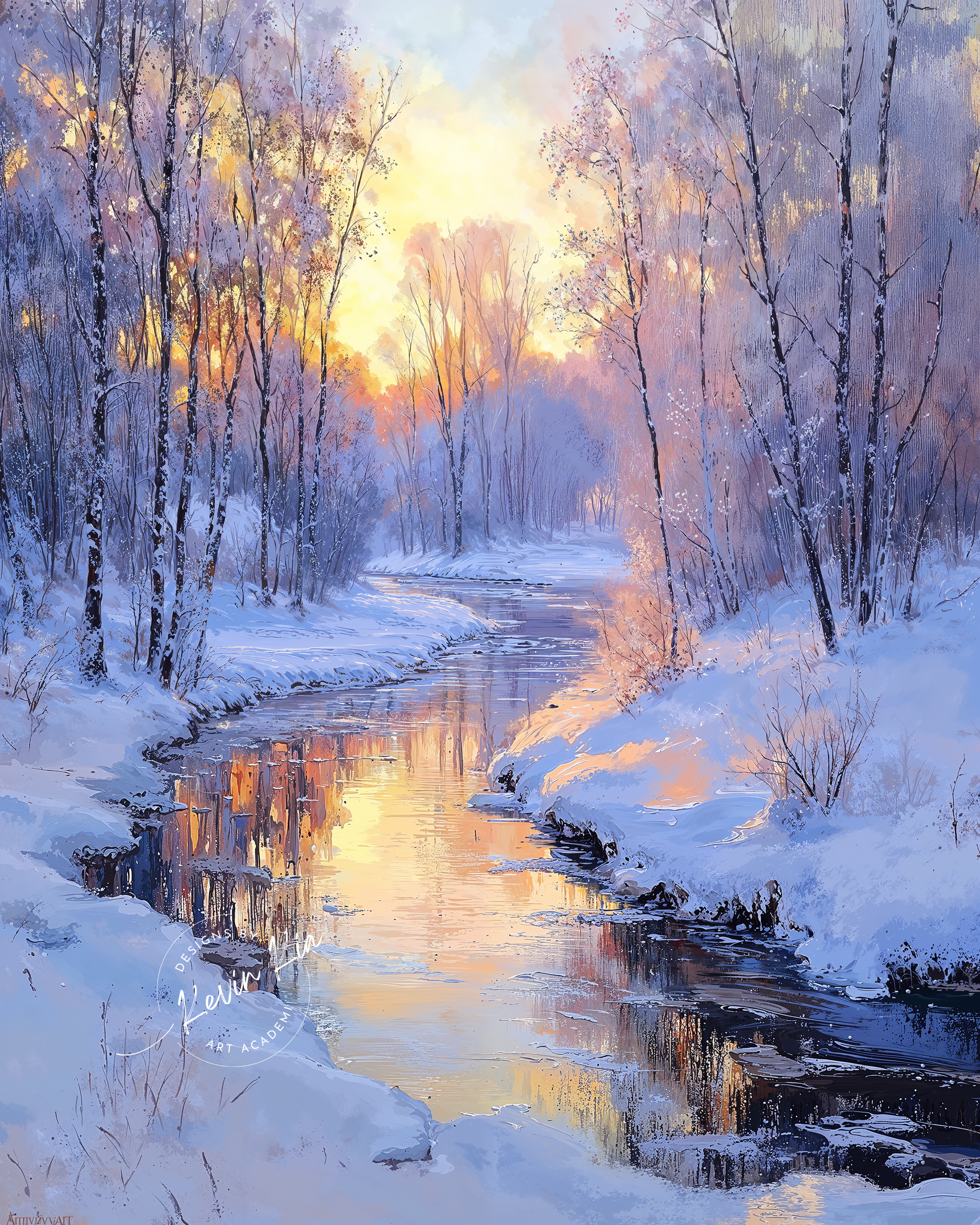 Dance of Colors breathes into the hush of winter dawn, where warmth and stillness converge across a river’s mirrored skin.