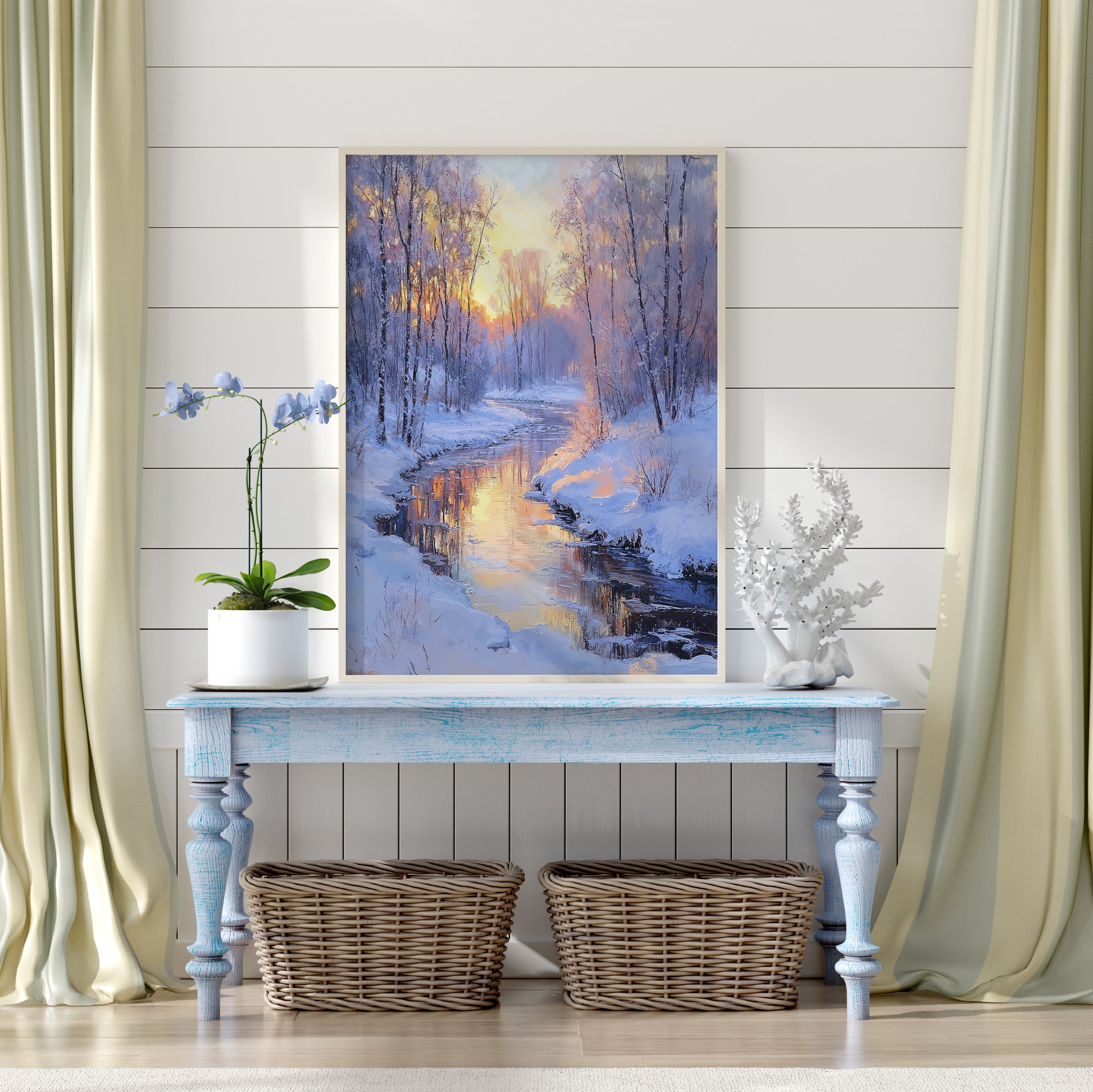 Ideal for winter-themed interiors, peaceful reading corners, or Scandinavian-inspired spaces, it is a visual meditation—where frost meets flame, and silence turns luminous.