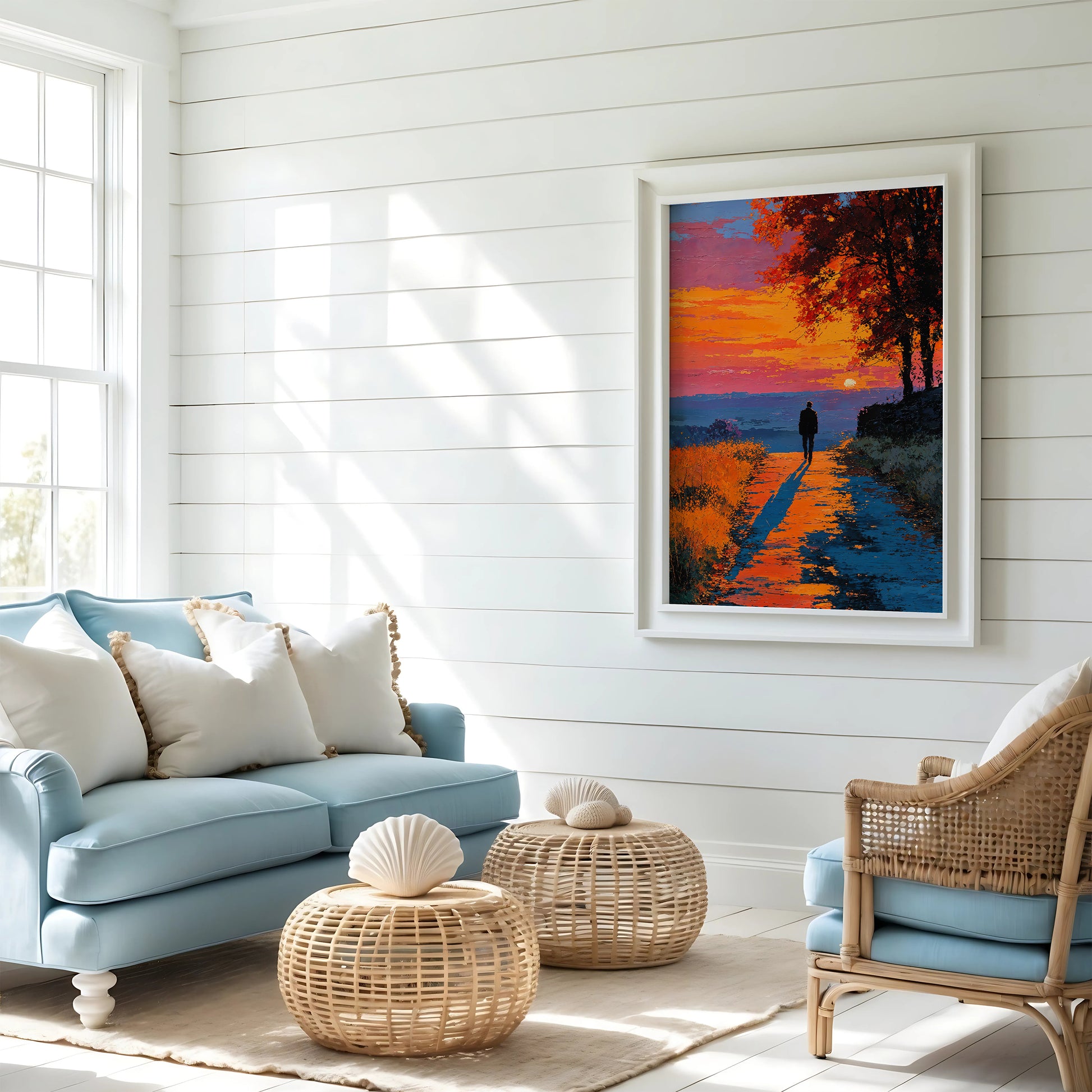 We include the most common frame sizes — 5×7, 8×10, 11×14, 12×16, 16×20, 18×24, and 24×36 inches. Some artworks also have A4–A1 metric files. If your wall needs a custom ratio, just tell us and we can re-export it for you.