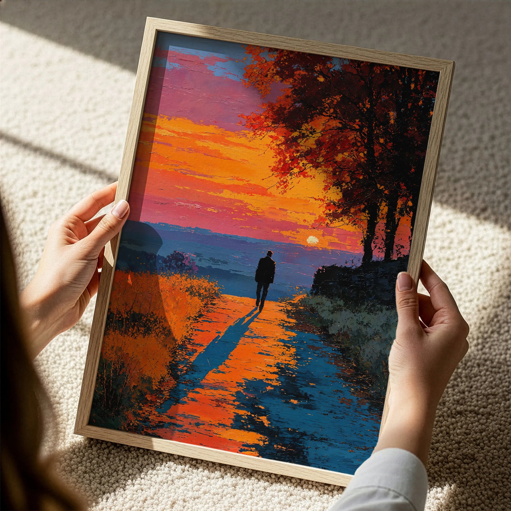 Perfect for contemplative interiors or collections of emotional realism, Devoted is a tribute to stillness in motion—a visual vow rendered in color and silence—where each step is lit by something unspoken.