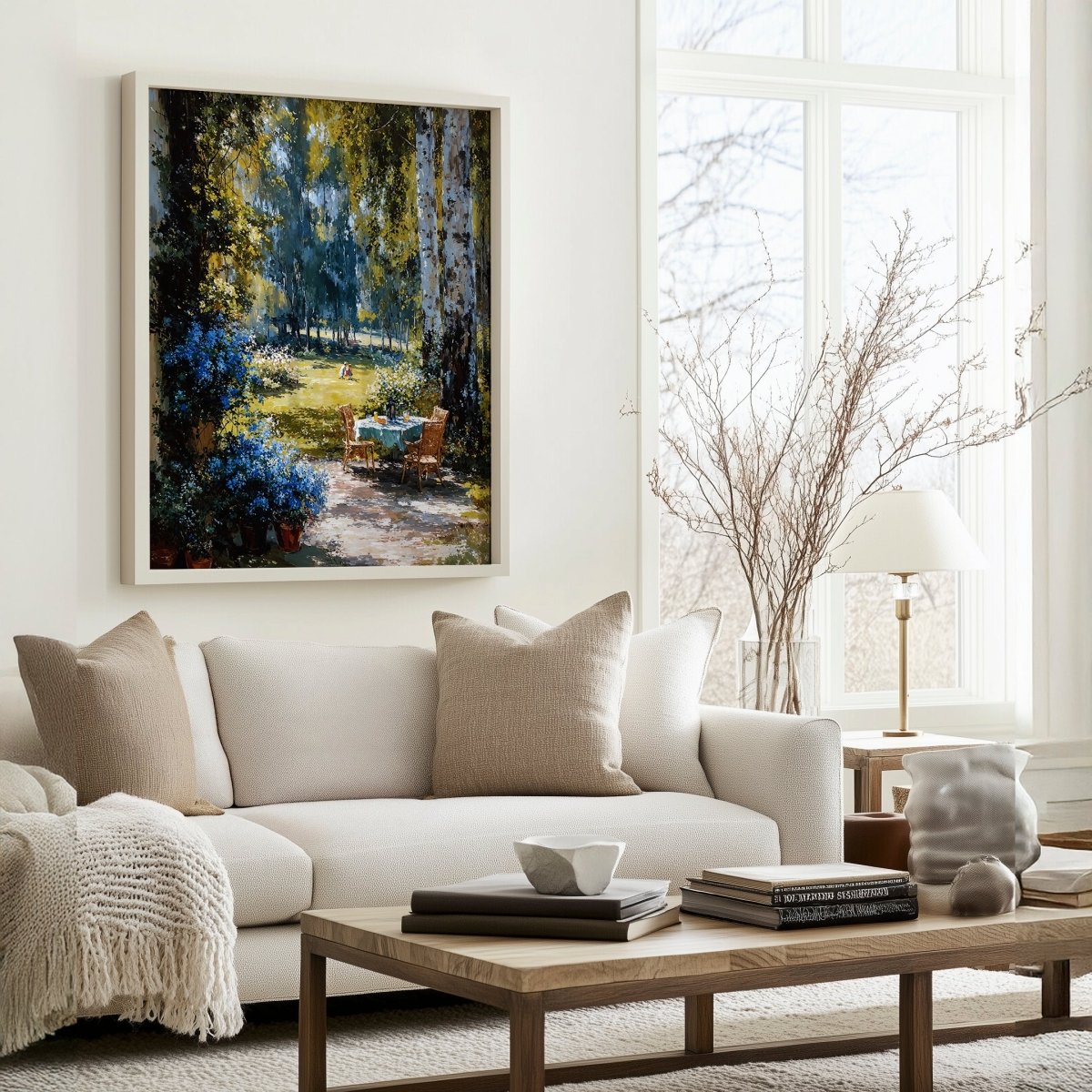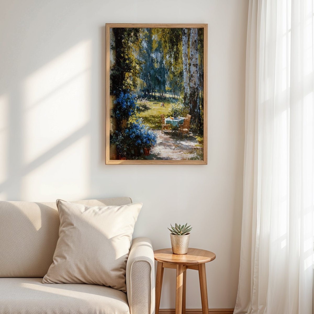 Perfect for bright interiors, garden rooms, or sun-soaked corners, the artwork invites stillness. A tender reminder that beauty often blooms in quiet, unspoken moments.