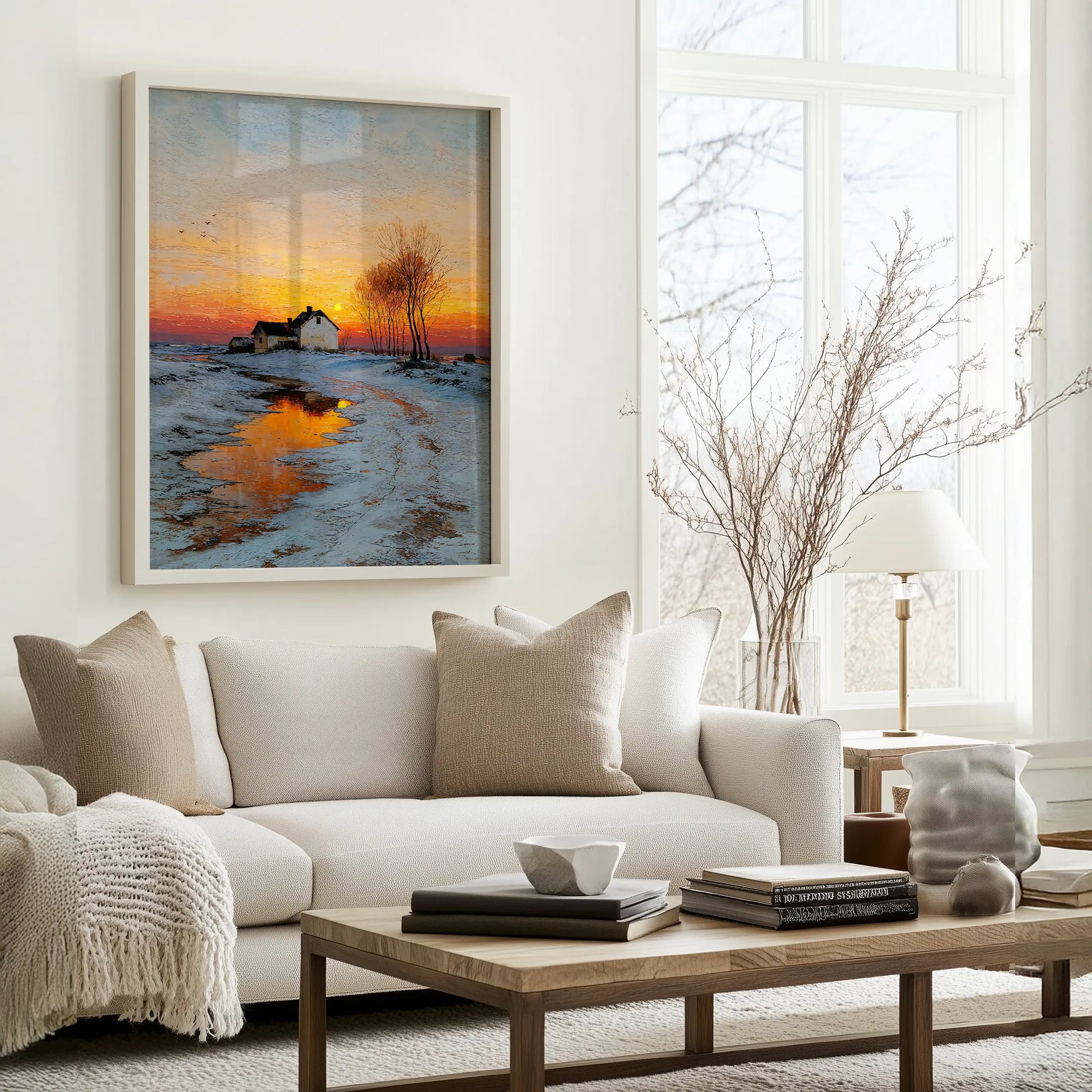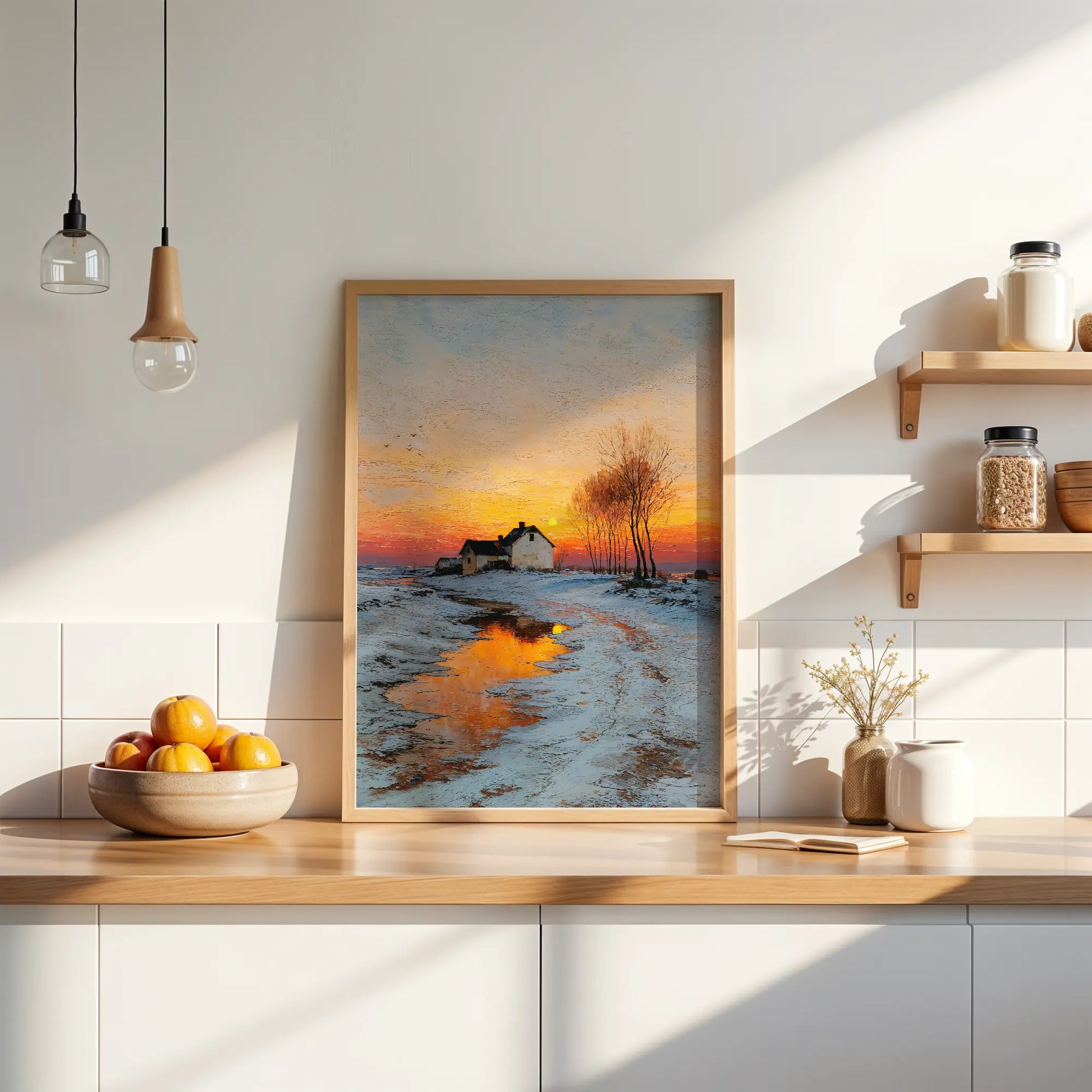 Perfect for contemplative spaces, seasonal vignettes, or warm winter decor, Echoes of Cinnabar captures the hush of memory carried on light. A visual reverberation of warmth remembered—where color becomes feeling, and silence glows.