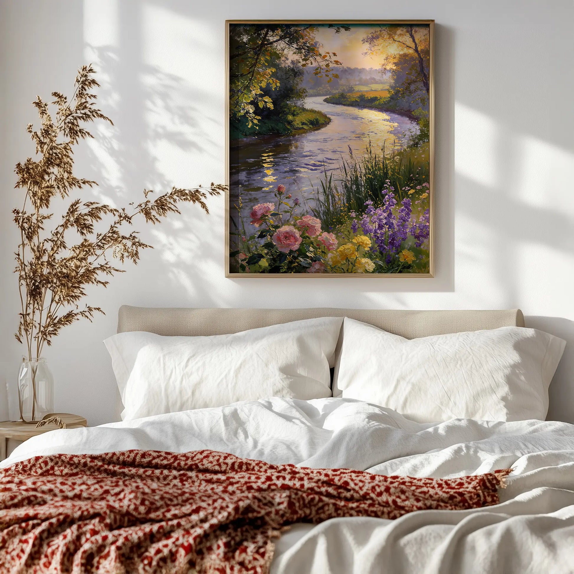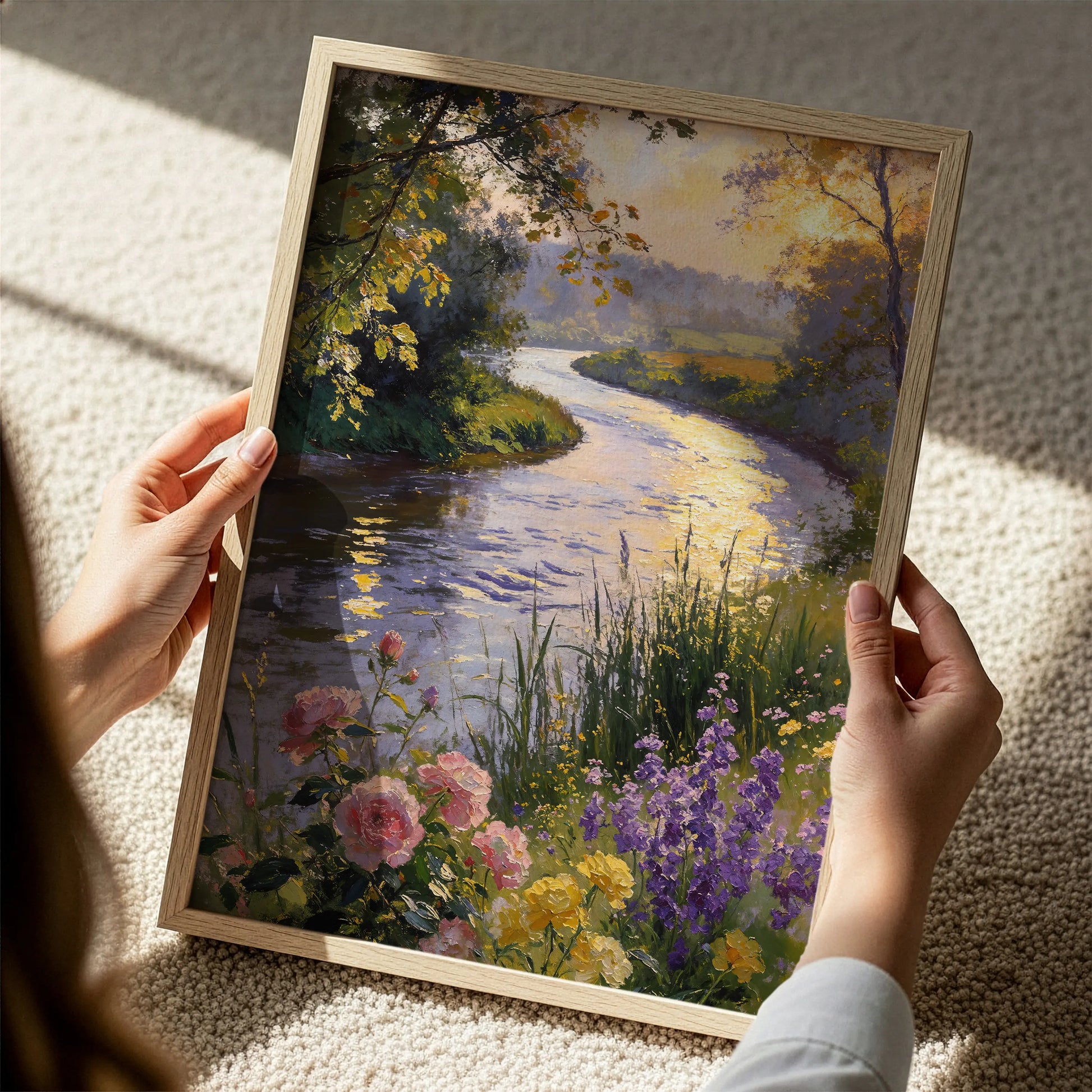 The composition emphasizes depth and flow, making this print well-suited for calm interiors, nature-focused collections, and spaces that favor light, color, and a serene seasonal presence.
