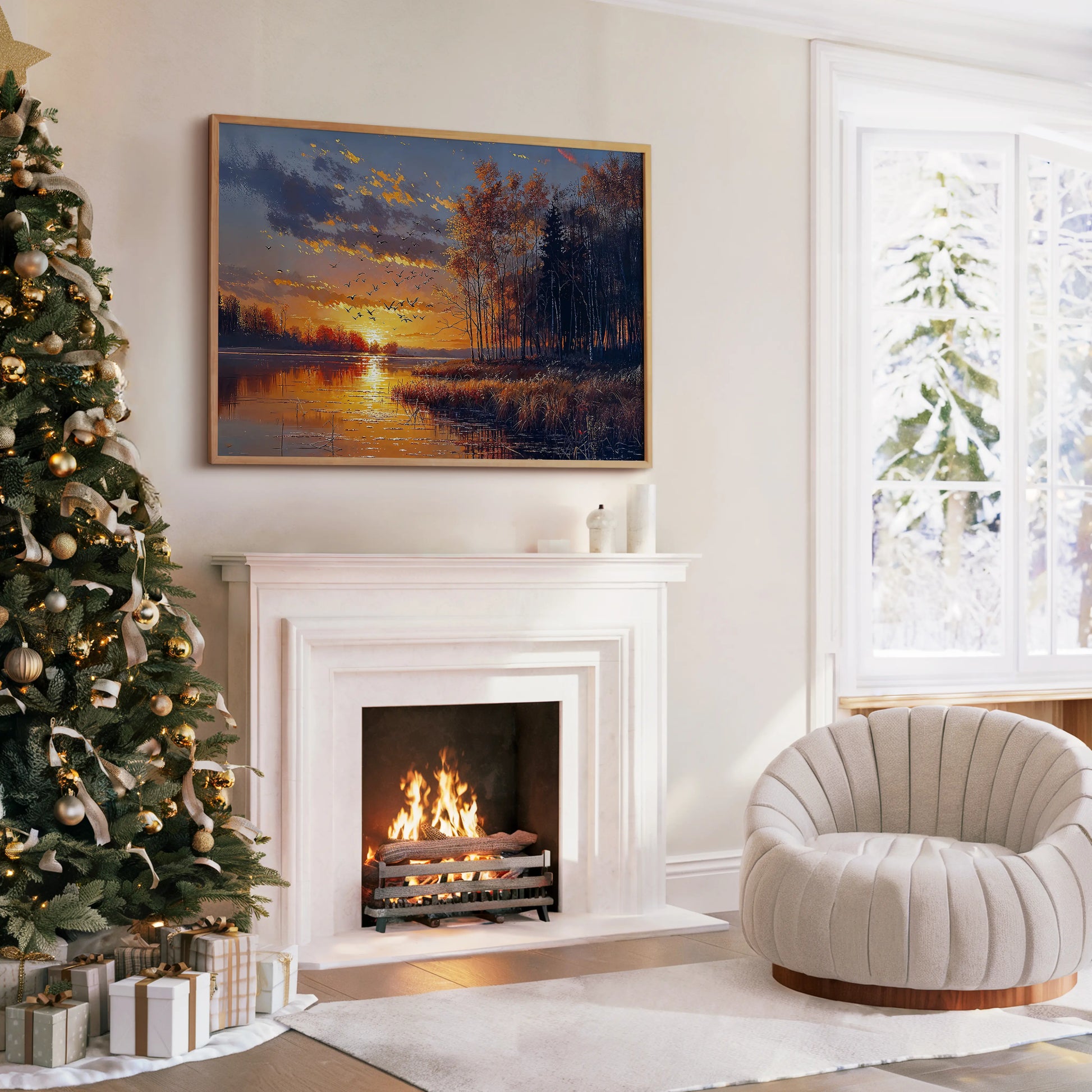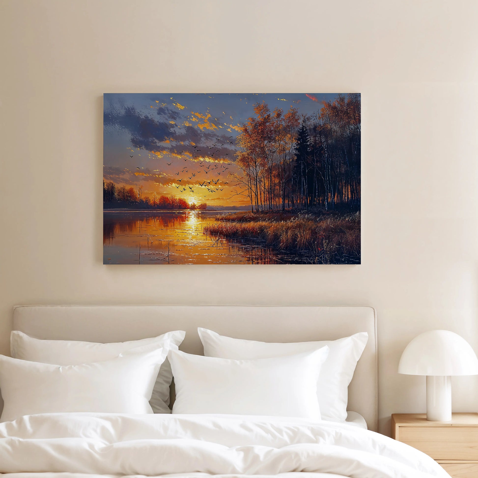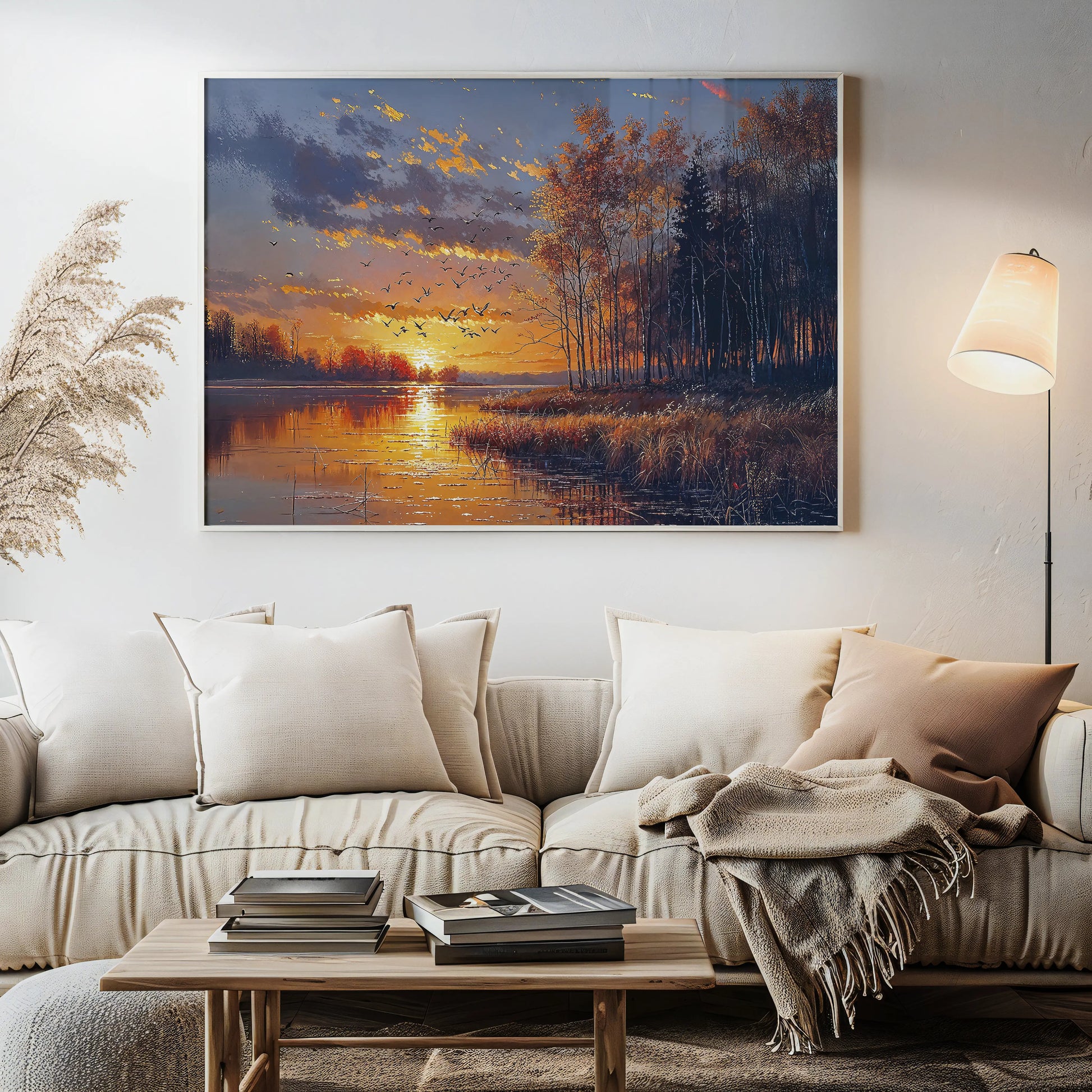 Ideal for living rooms, cozy reading corners, entryways, or any quiet space that welcomes stillness, gratitude, and the slow, honeyed shimmer of a day coming to rest.