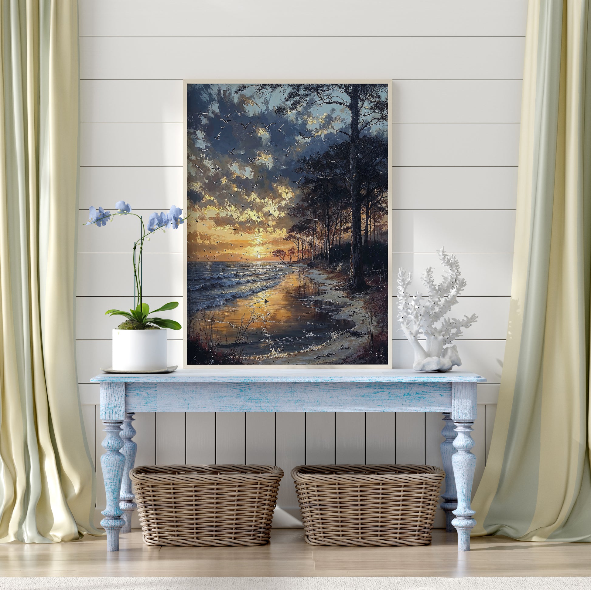 Perfect for coastal bedrooms, reflective corridors, or interiors attuned to rhythm and release, this piece offers not just a view, but a passage. It carries both movement and surrender—the essence of twilight held between tide and sky.