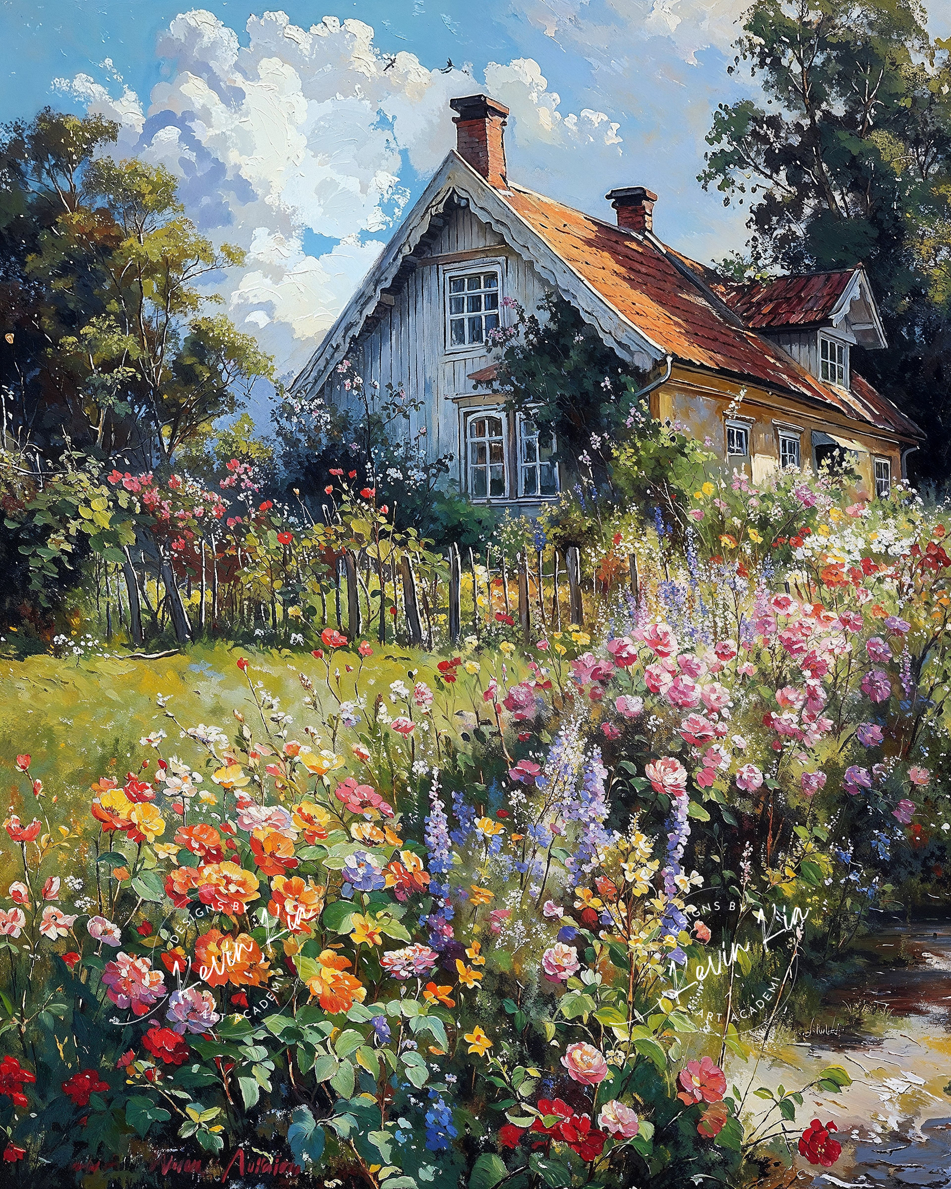 Digitally handcrafted using Adobe Photoshop, Illustrator, and Procreate, this high-resolution artwork is perfect for garden rooms, creative studios, or hallways that evoke a nostalgic elegance. It is not just a celebration of bloom, but of space held in full, fragrant presence.