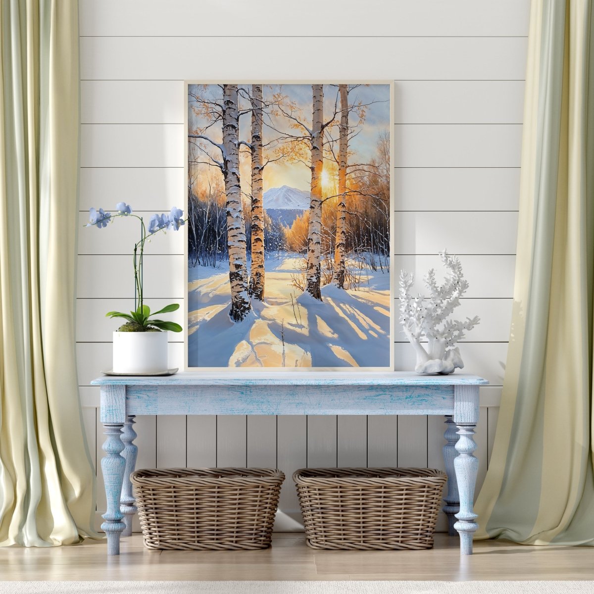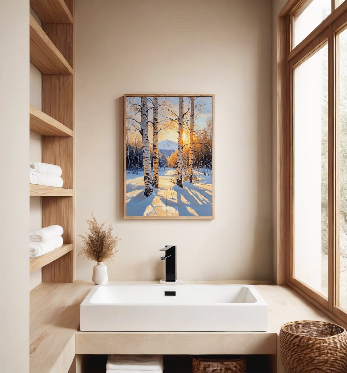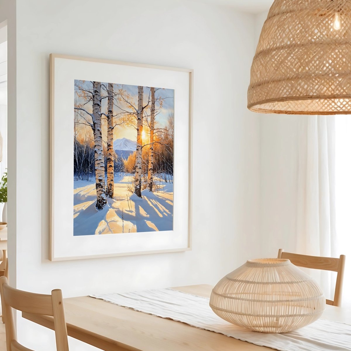 Ideal for minimalist winter interiors, seasonal galleries, or meditation rooms craving calm and luminance, this artwork offers more than beauty—it embodies the moment when light, land, and breath align.