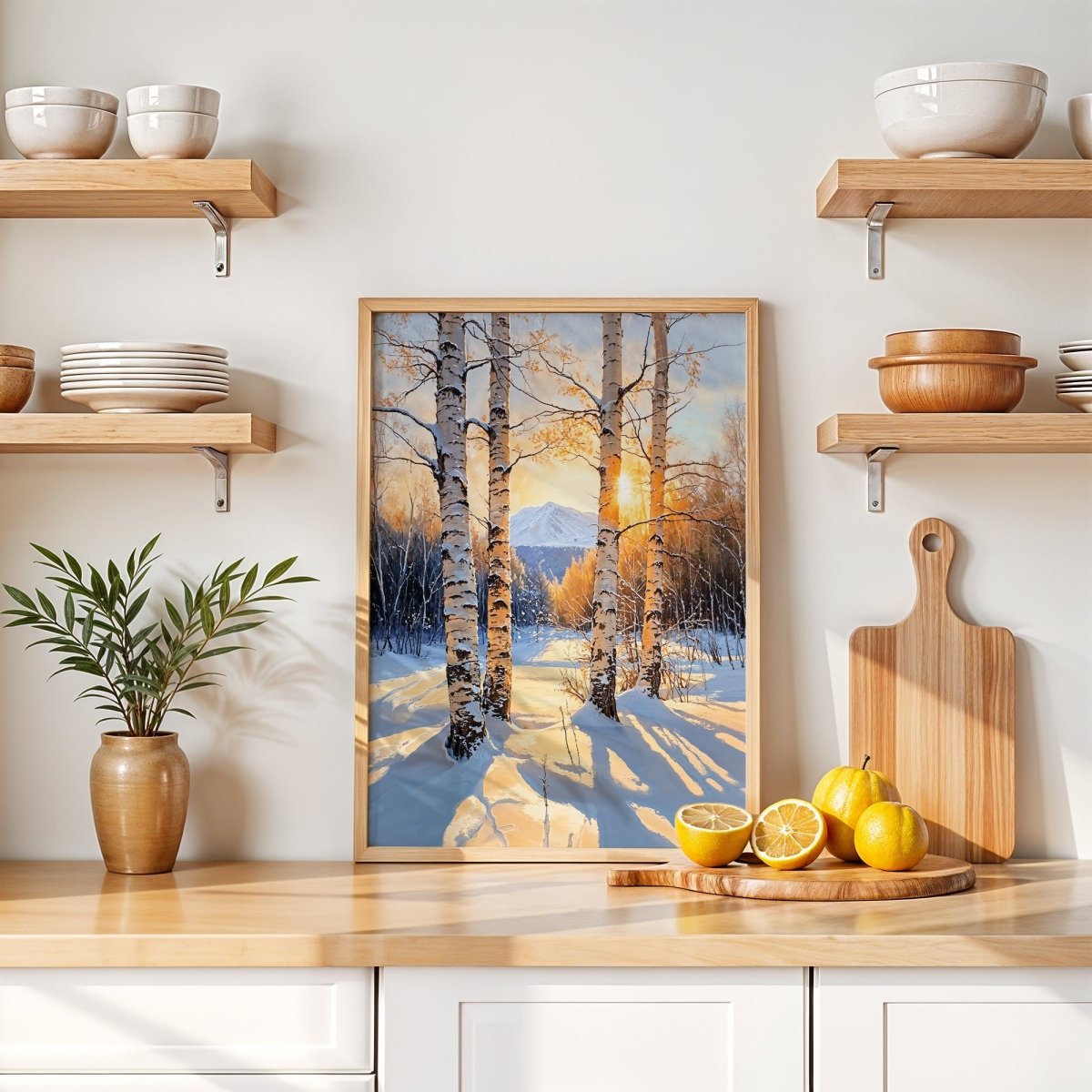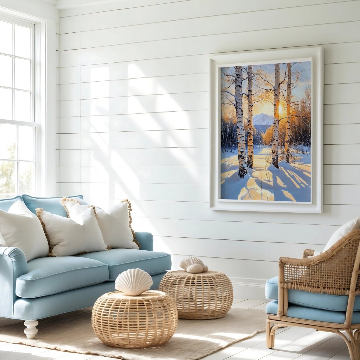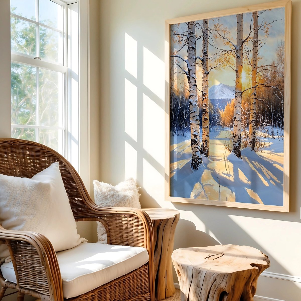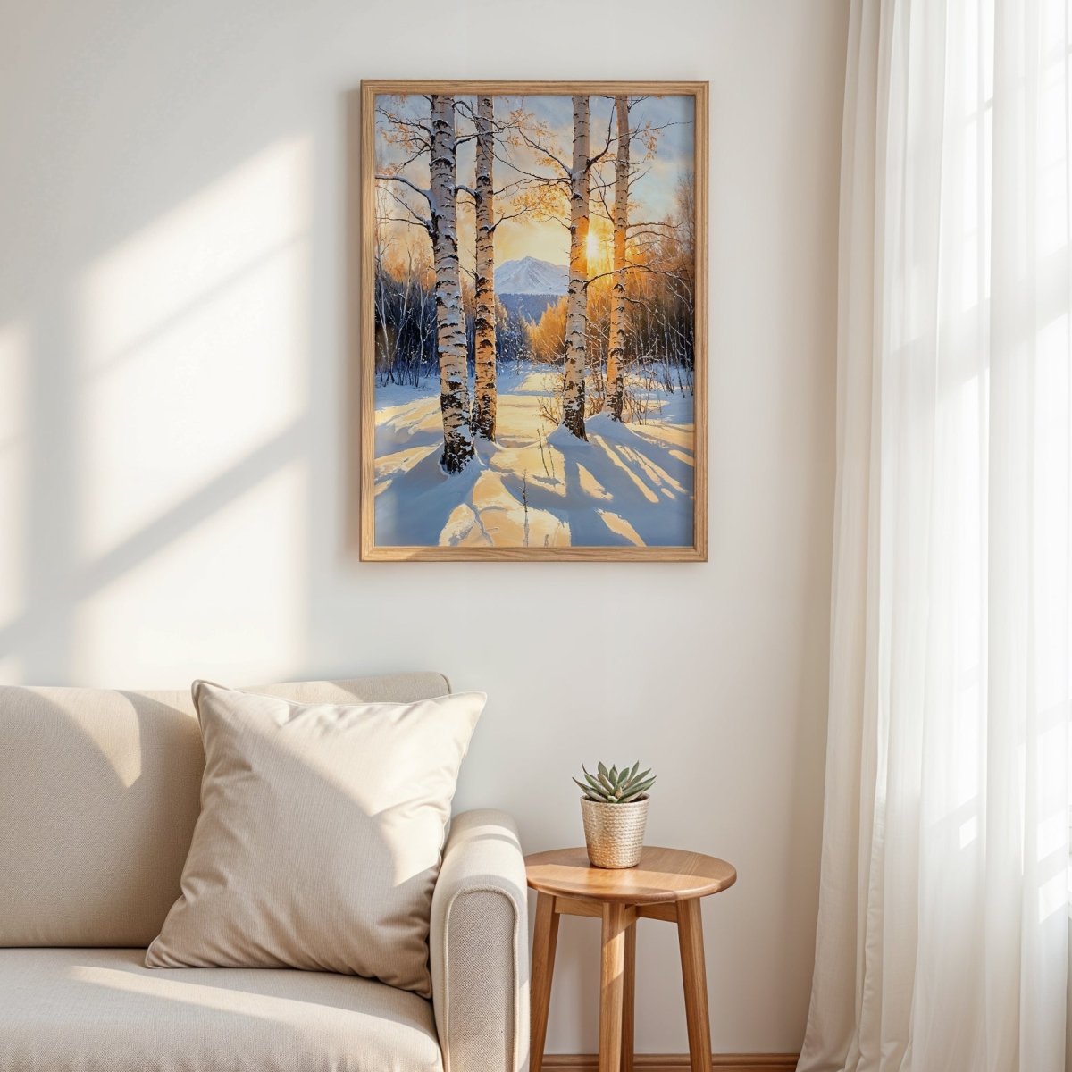 Ideal for minimalist winter interiors, seasonal galleries, or meditation rooms craving calm and luminance, this artwork offers more than beauty—it embodies the moment when light, land, and breath align.
