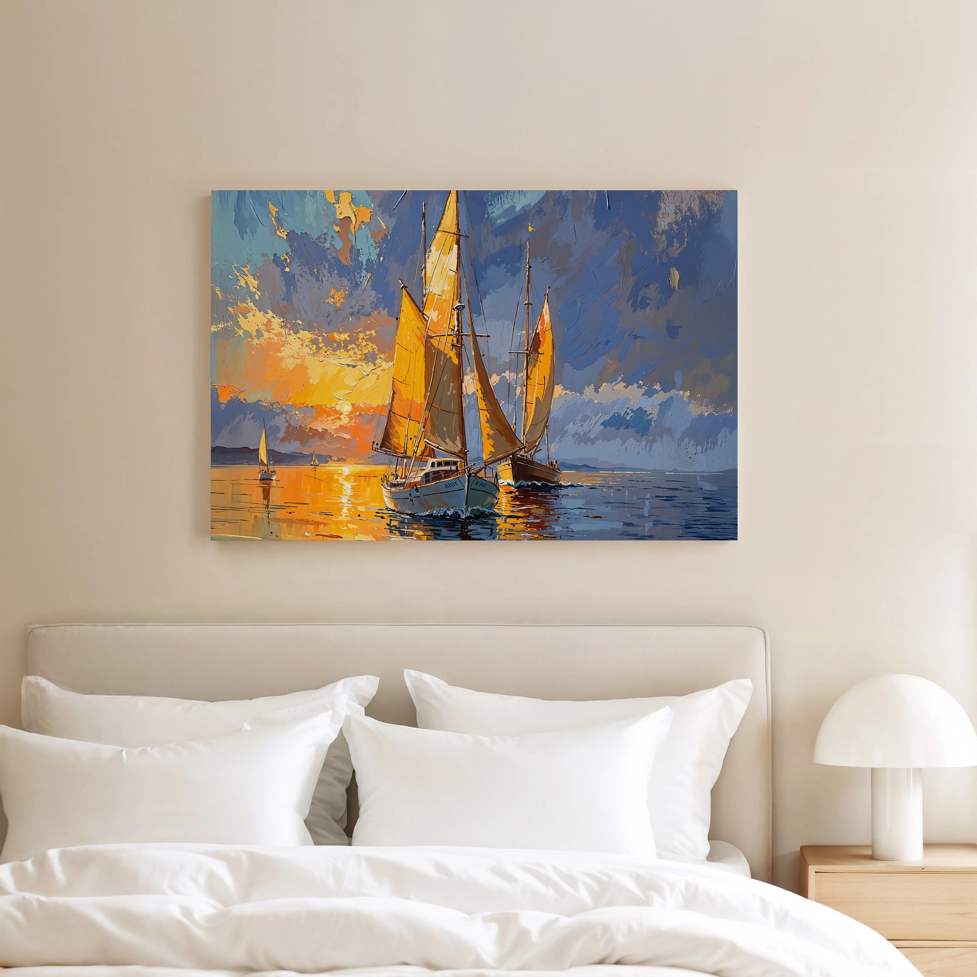 Ideal for contemporary coastal décor, relaxed modern interiors, or any space seeking warmth through elegance, Golden Sails offers a moment suspended—where movement is gentle, light is memory, and stillness glows.