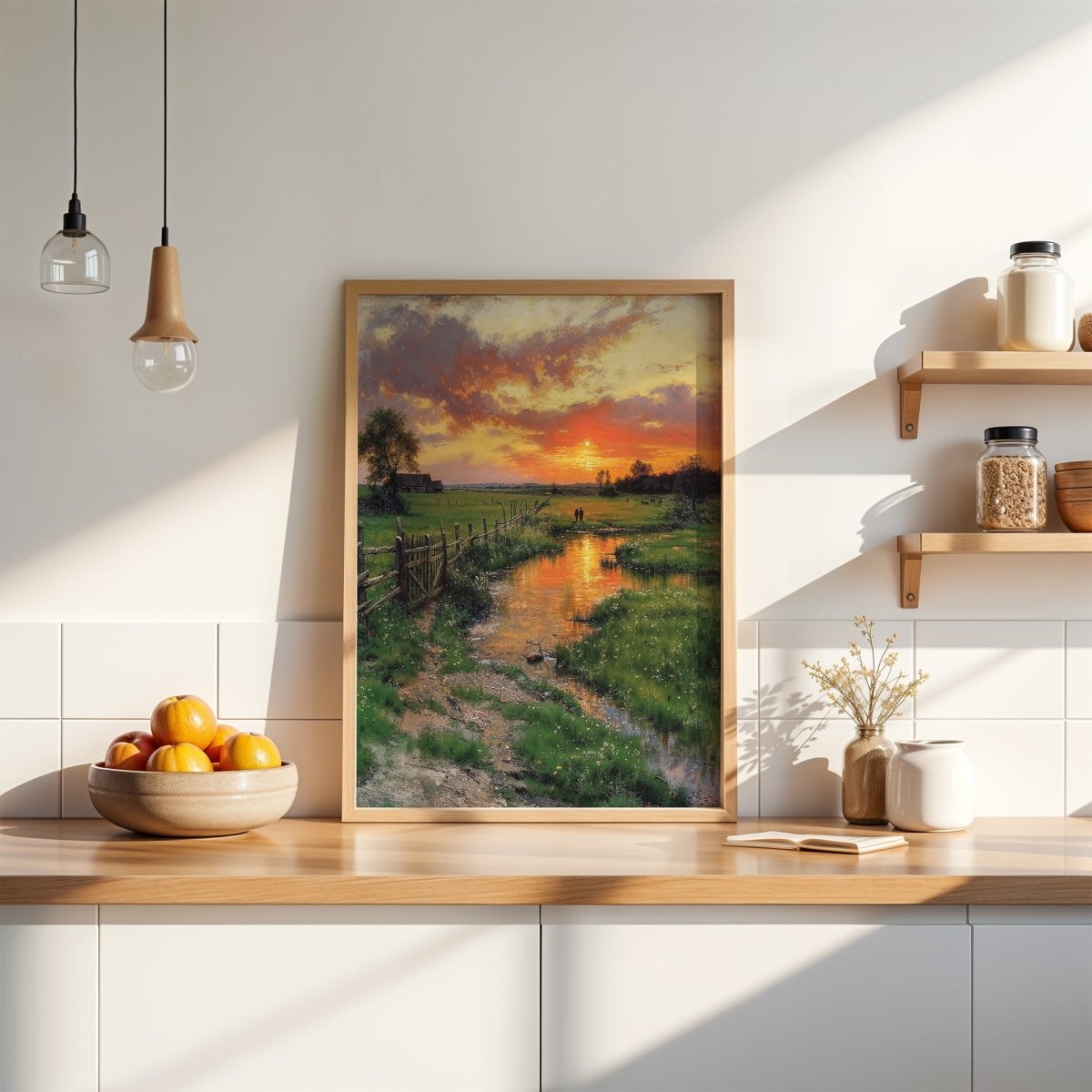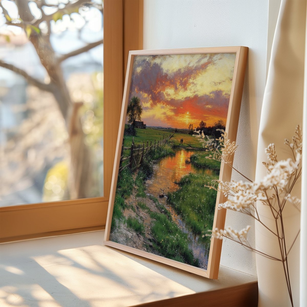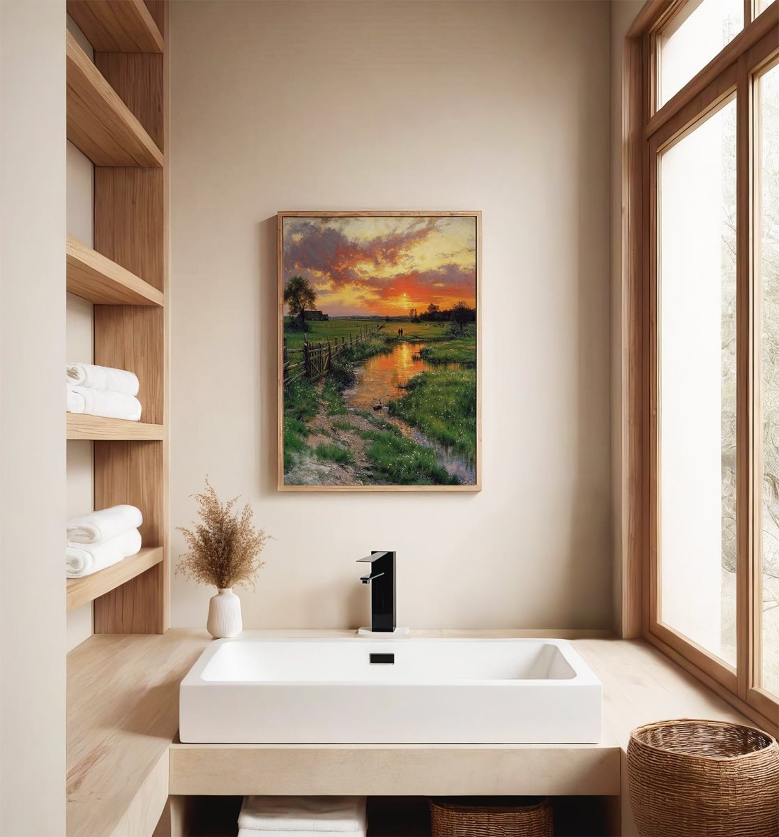 Hung in transitional spaces, hallways, or reading corners, this piece invites stillness. It’s not just an image, but a gentle breath captured in color: warm, serene, and timeless.