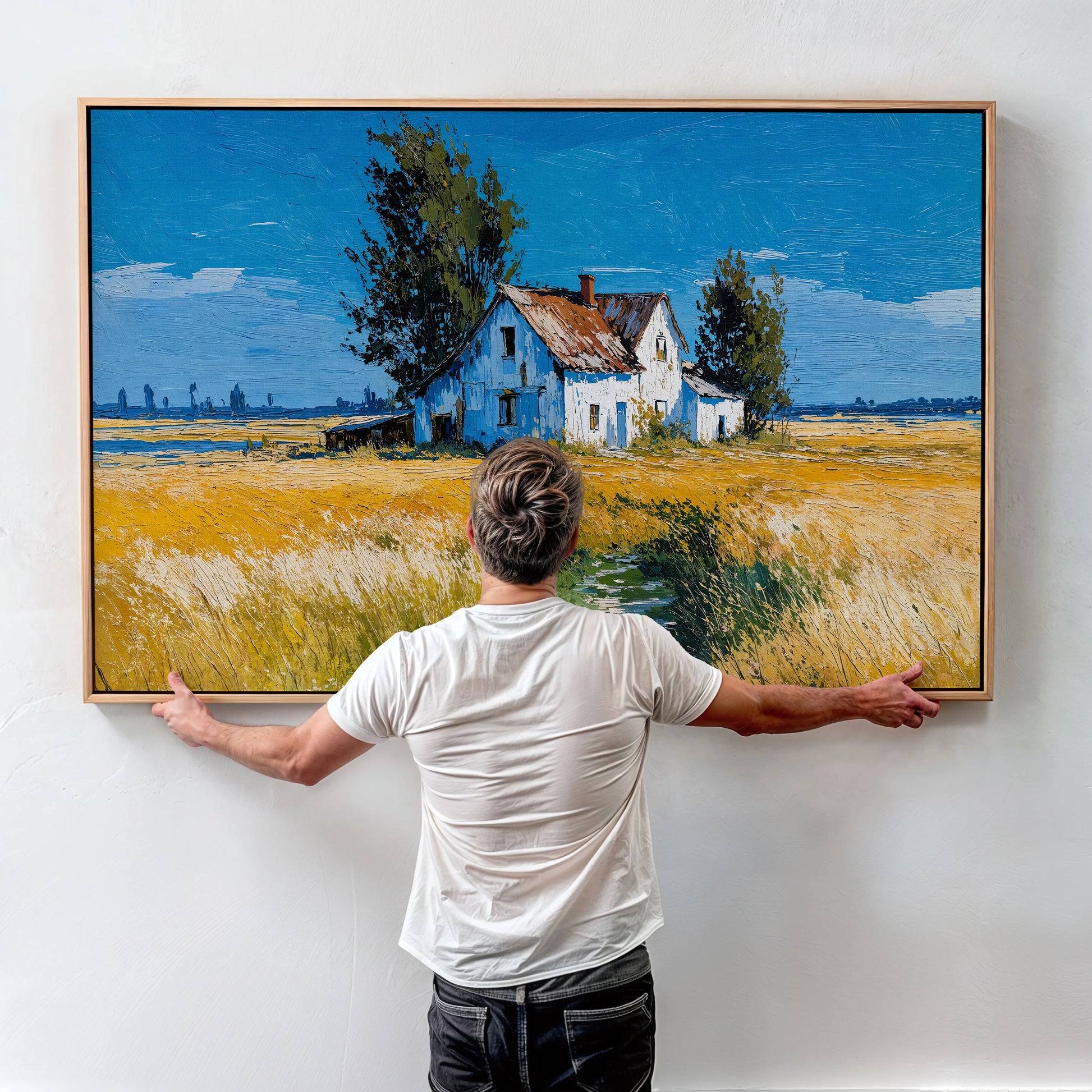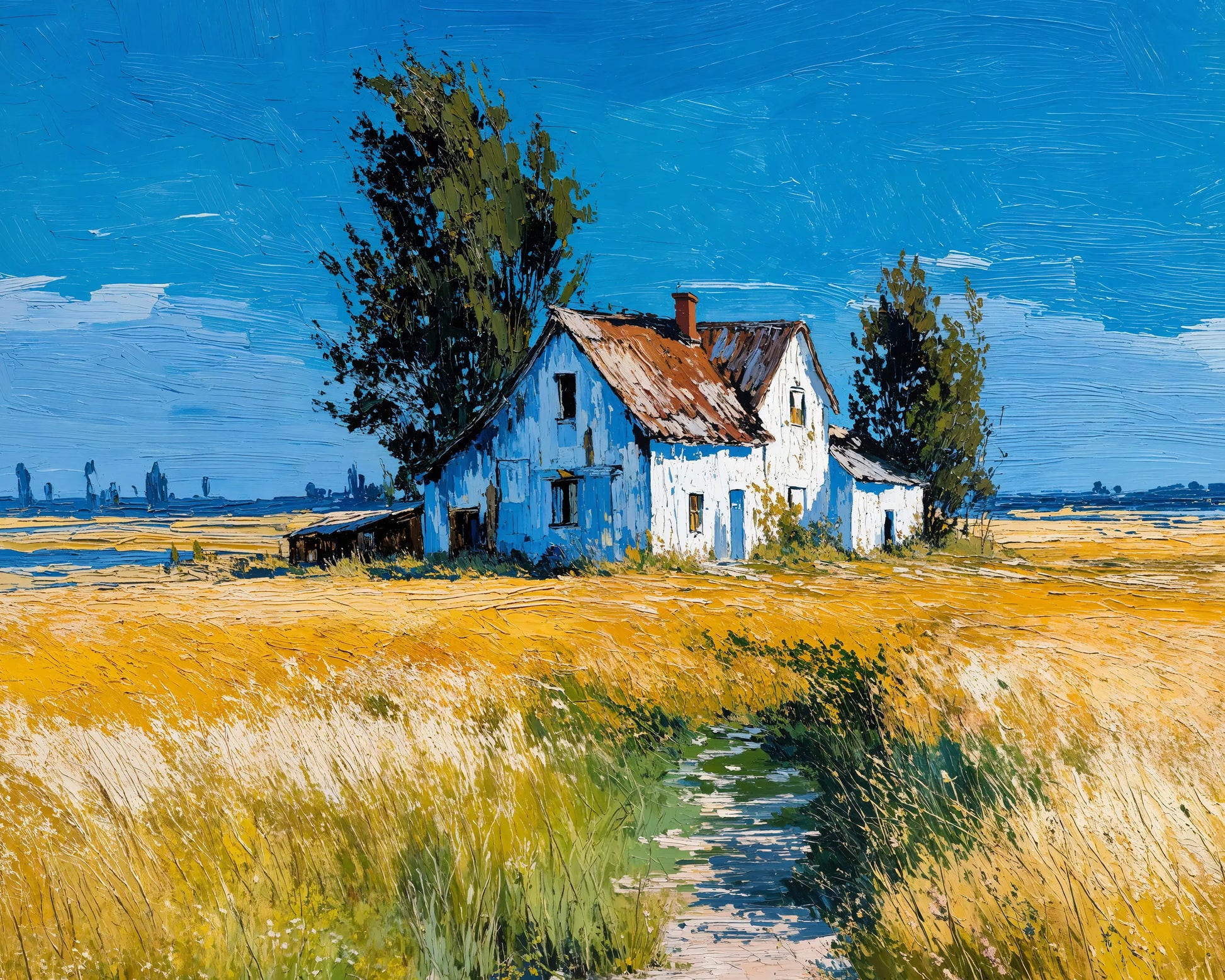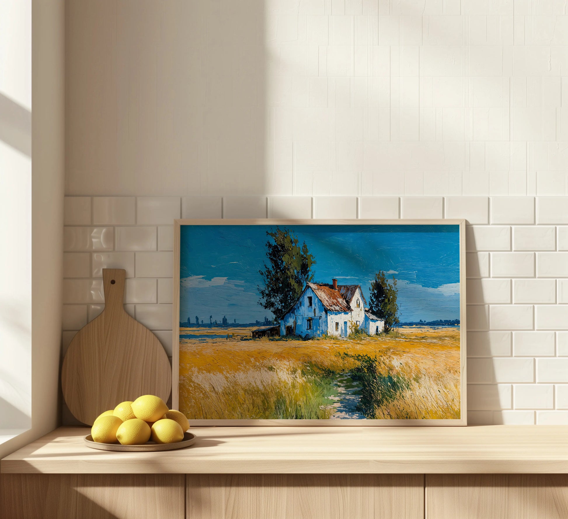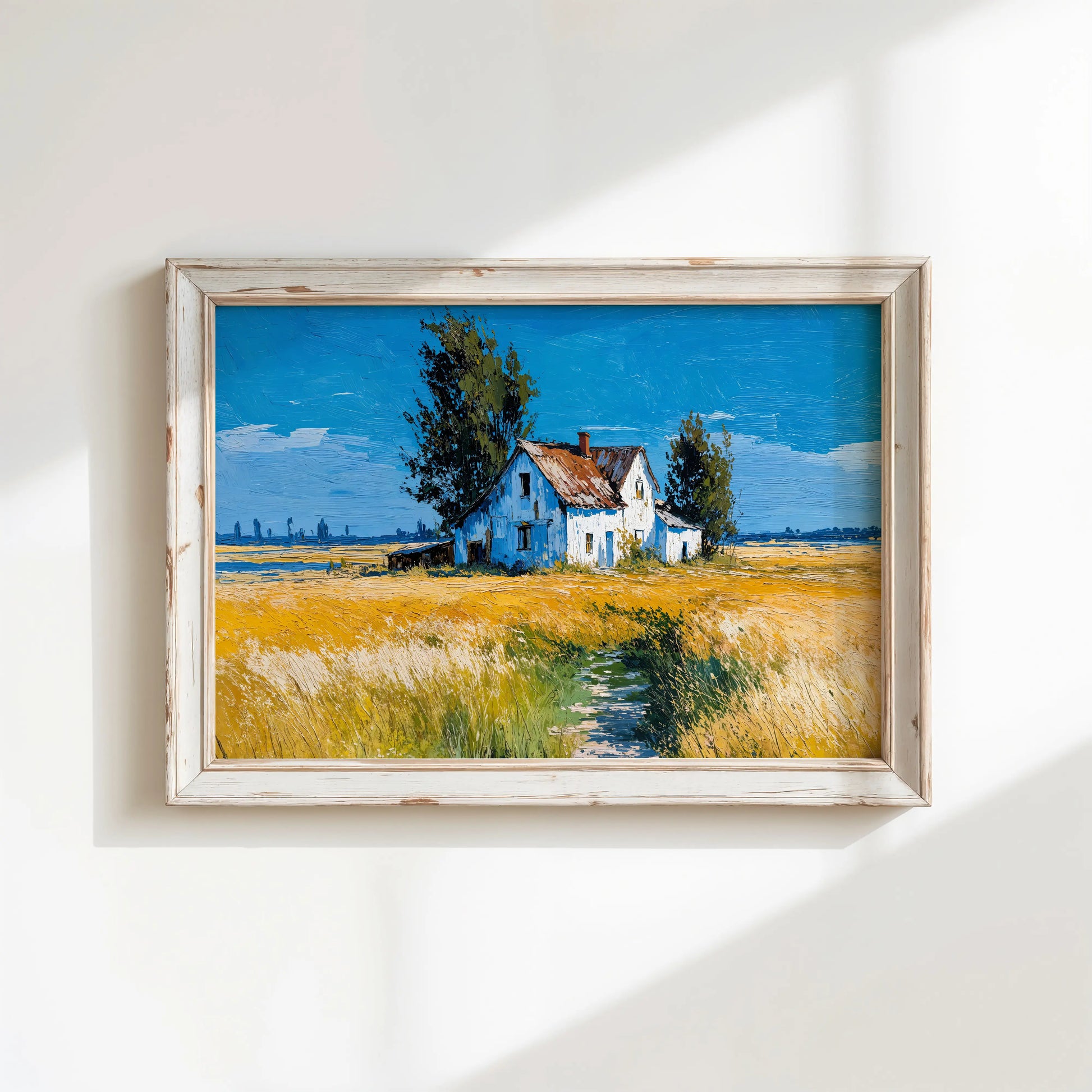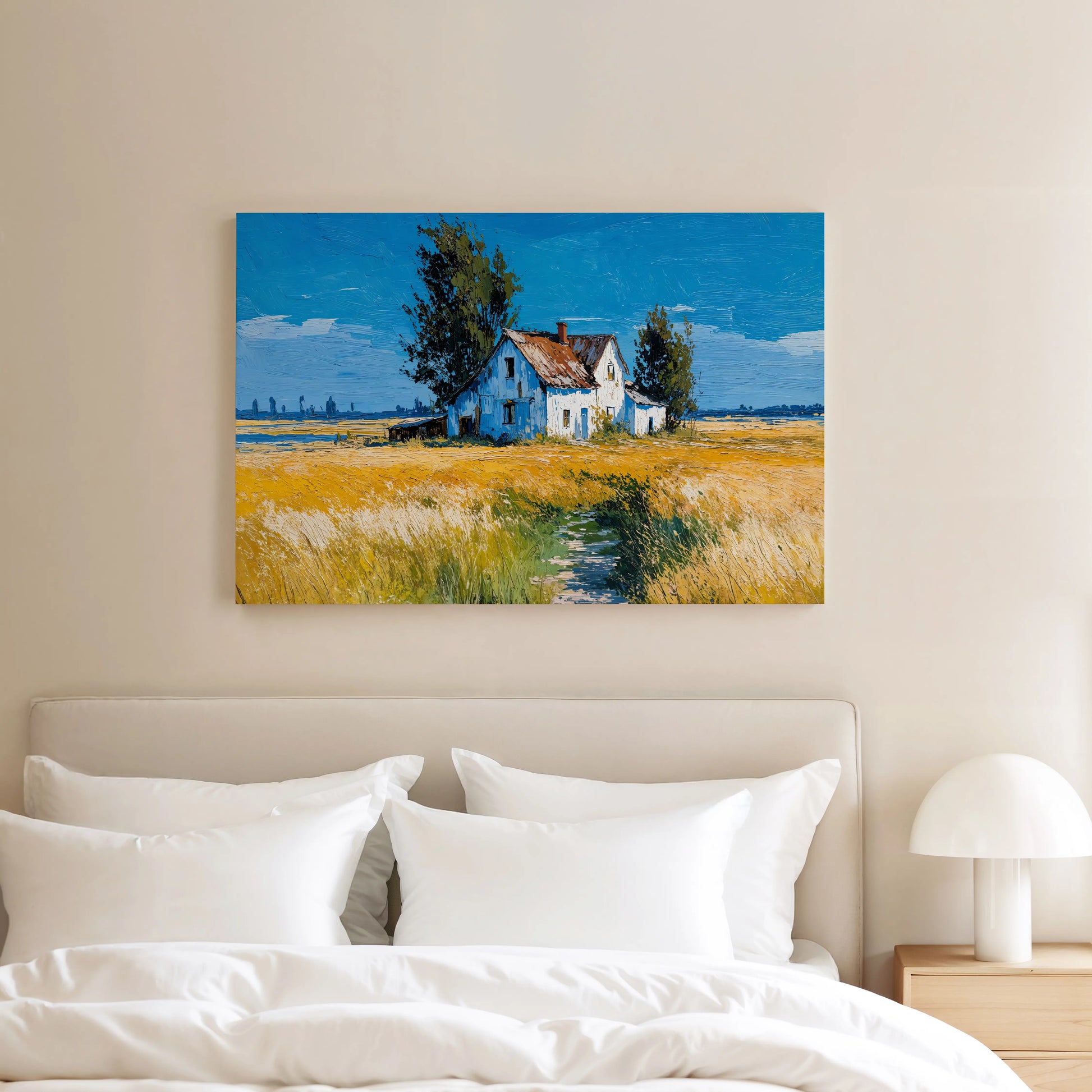 This artwork evokes a timeless rural atmosphere and is ideal for those who love countryside charm, rustic themes, or bold color compositions. Printed on premium stretched canvas, it makes a standout piece for any living room, kitchen, or creative space.