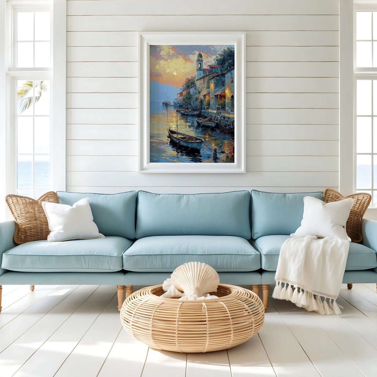 Ideal for coastal interiors, rustic foyers, evening-themed spaces, or rooms that savor slow transitions, this piece carries the mood of quiet return—a harbor not for transit, but for rest.