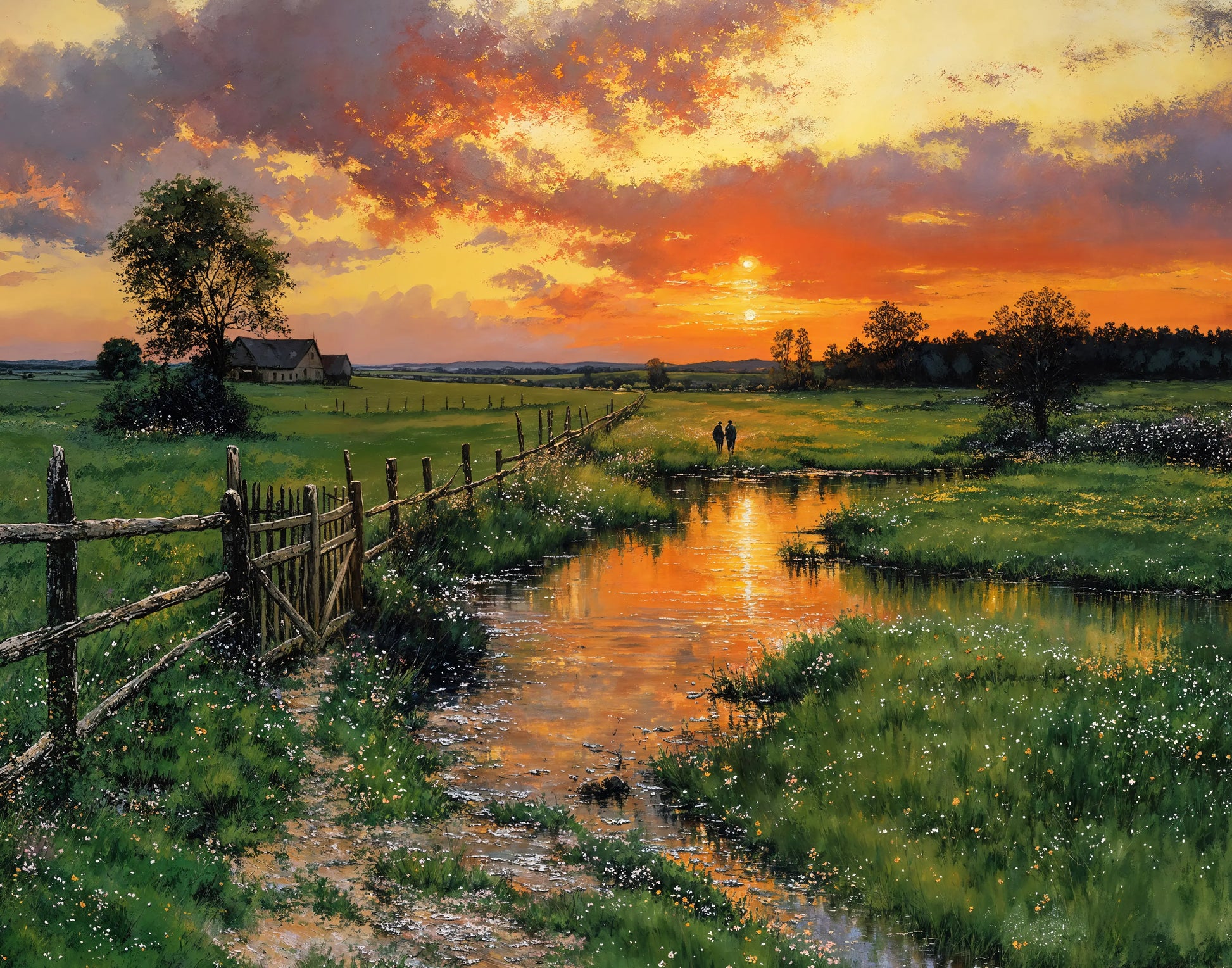 Heartfelt captures the simplicity and beauty of rural peace—where wildflowers bloom, clouds glow, and every reflection hums with warmth. The brushwork dances between detail and dream, grounding the present in timeless light.