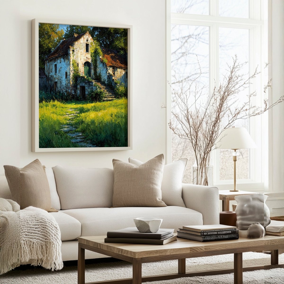 Suited for reading nooks, vintage-inspired rooms, or places of quiet reflection, House of Memories invites viewers to linger in the spaces between silence and song. It is a tender portrait of abandonment made beautiful—where memory lives not in presence, but in light, shadow, and the hush of overgrown paths.