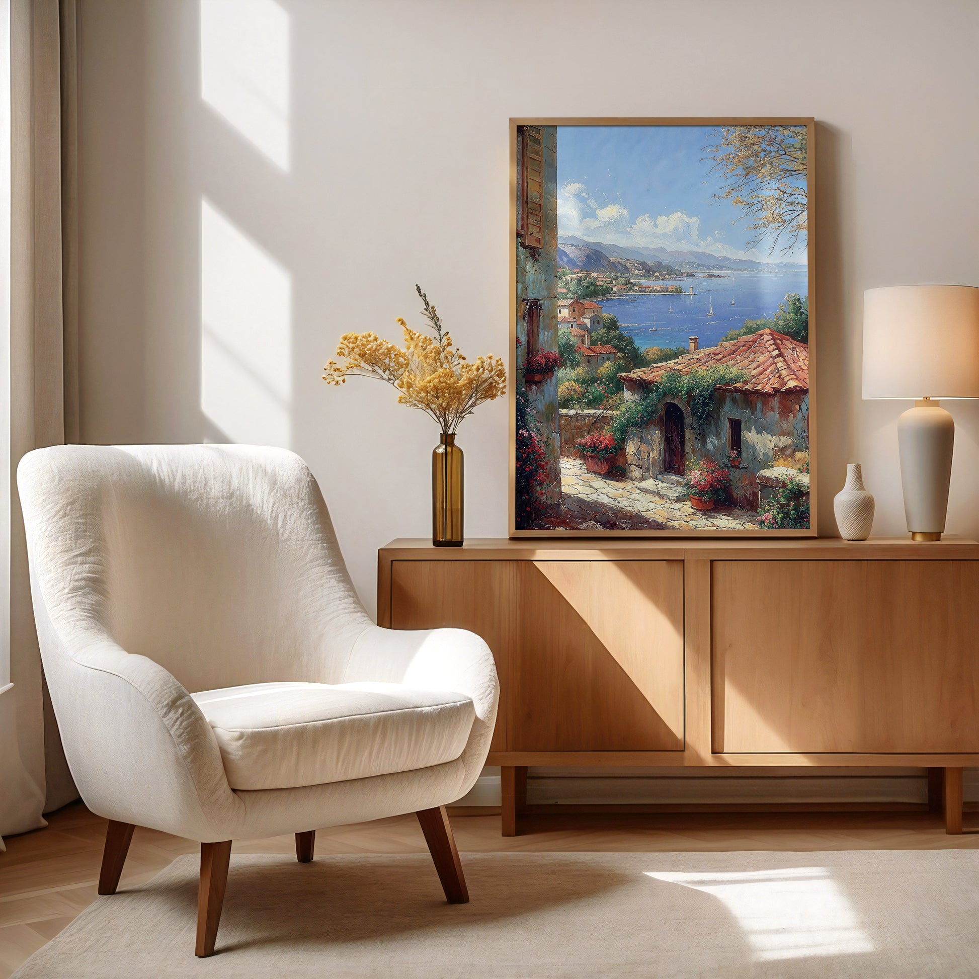 Designed for Mediterranean kitchens, coastal bedrooms, sunlit stairwells, or vacation homes, the artwork delivers more than ambiance—it brings place. A breeze made visible. A scent remembered. A quiet that hums like warmth on stone.