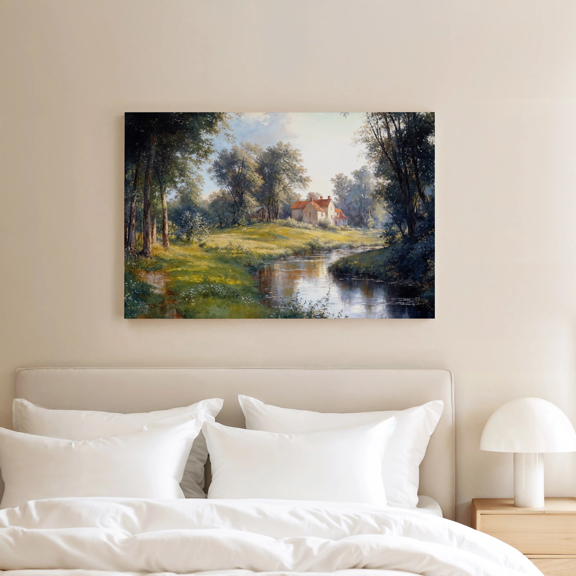 Printed on premium-quality stretched canvas, this piece radiates warmth, nostalgia, and natural beauty — perfect for rustic interiors, chalet decor, or any nature-inspired space.