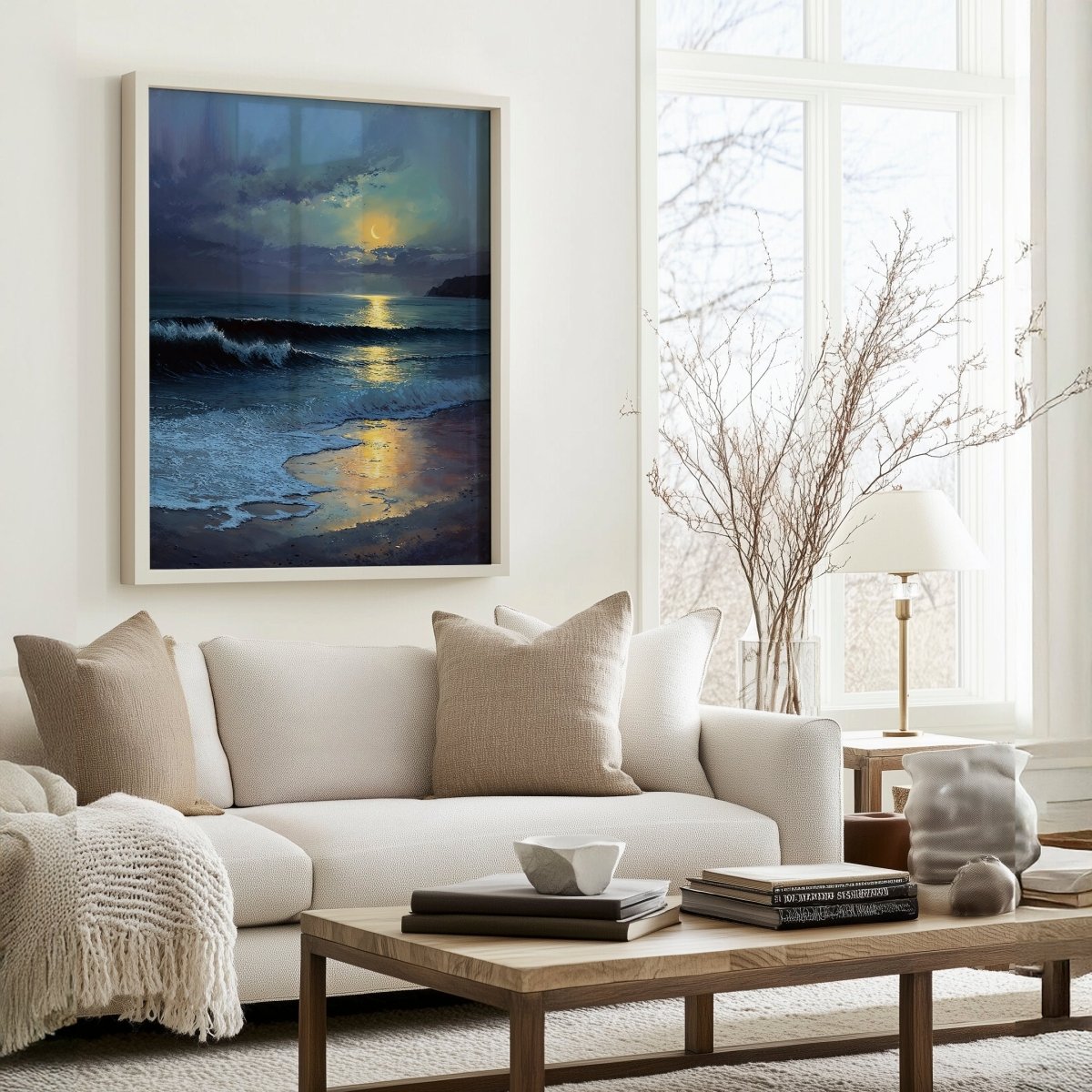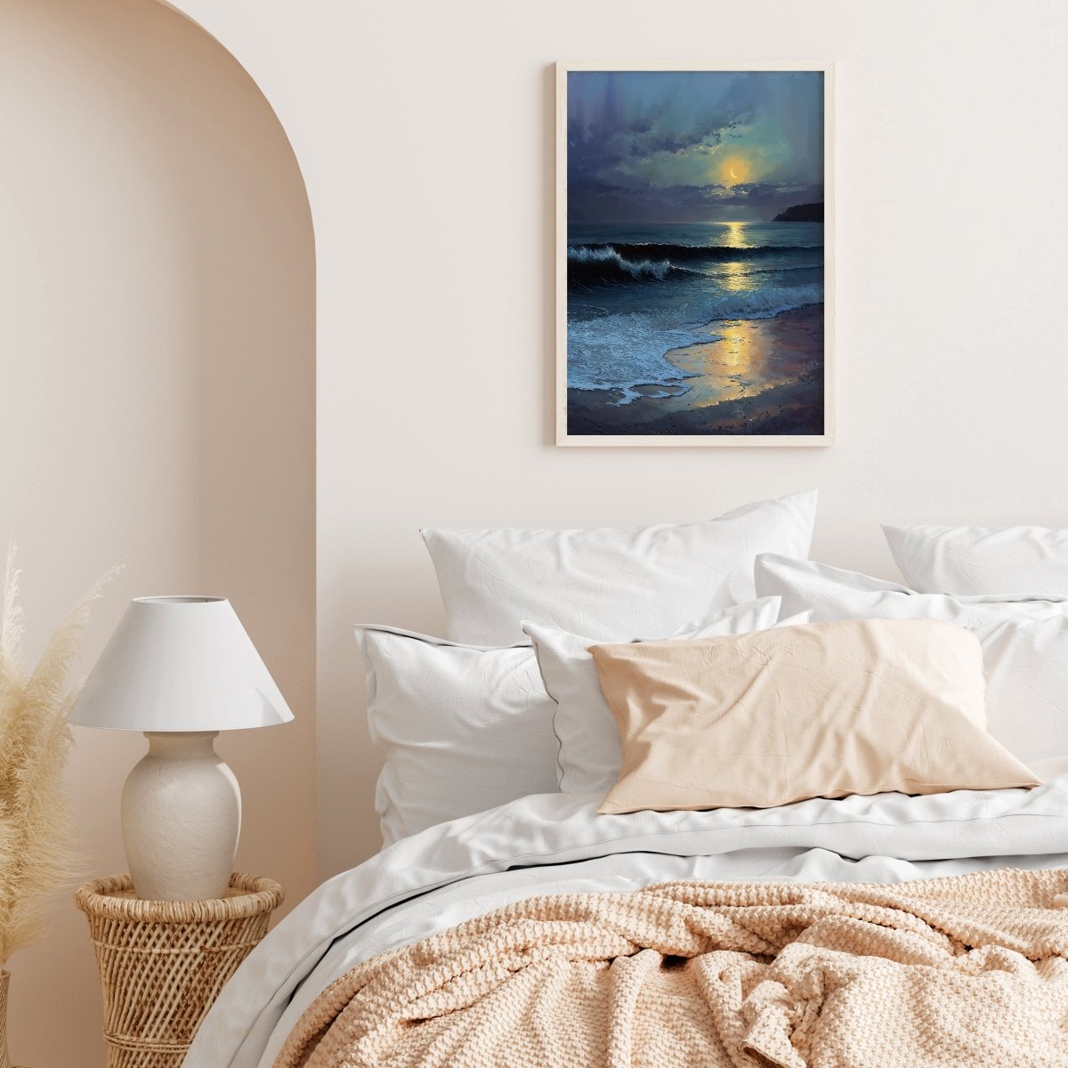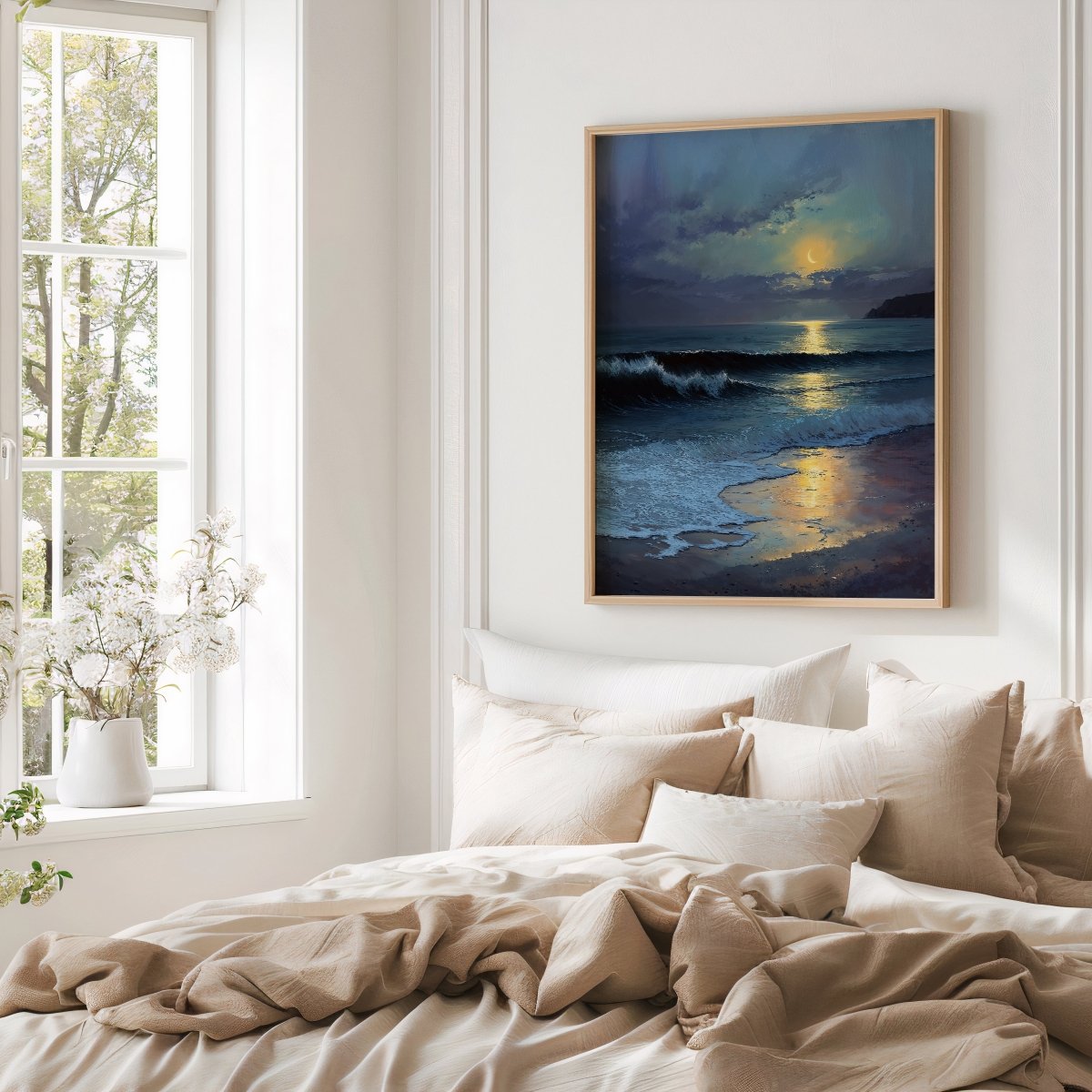 Perfect for bedrooms, meditation corners, coastal homes, or spa-like interiors, this piece brings calm, introspection, and the hush of moonlight into your space. A coastal lullaby in light.