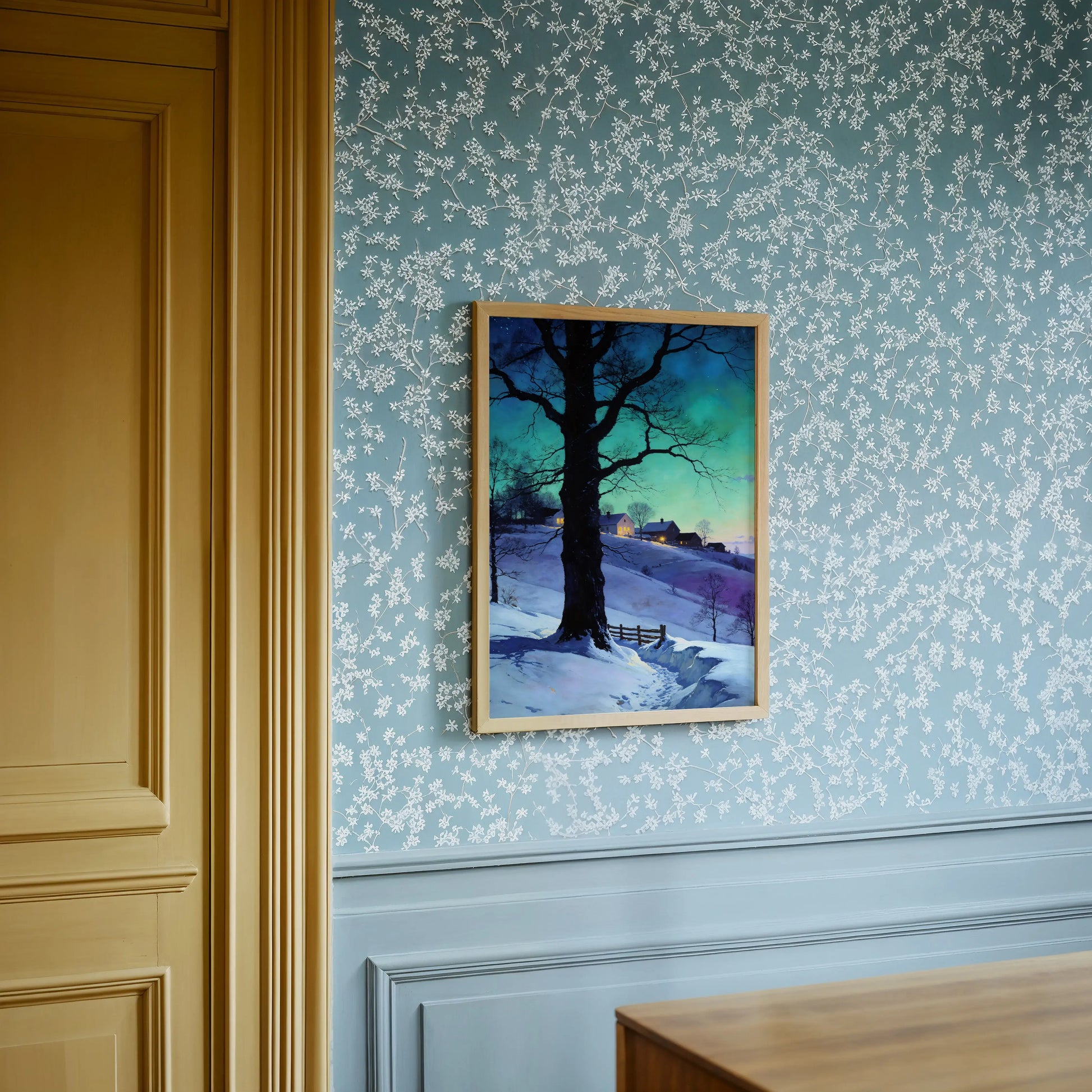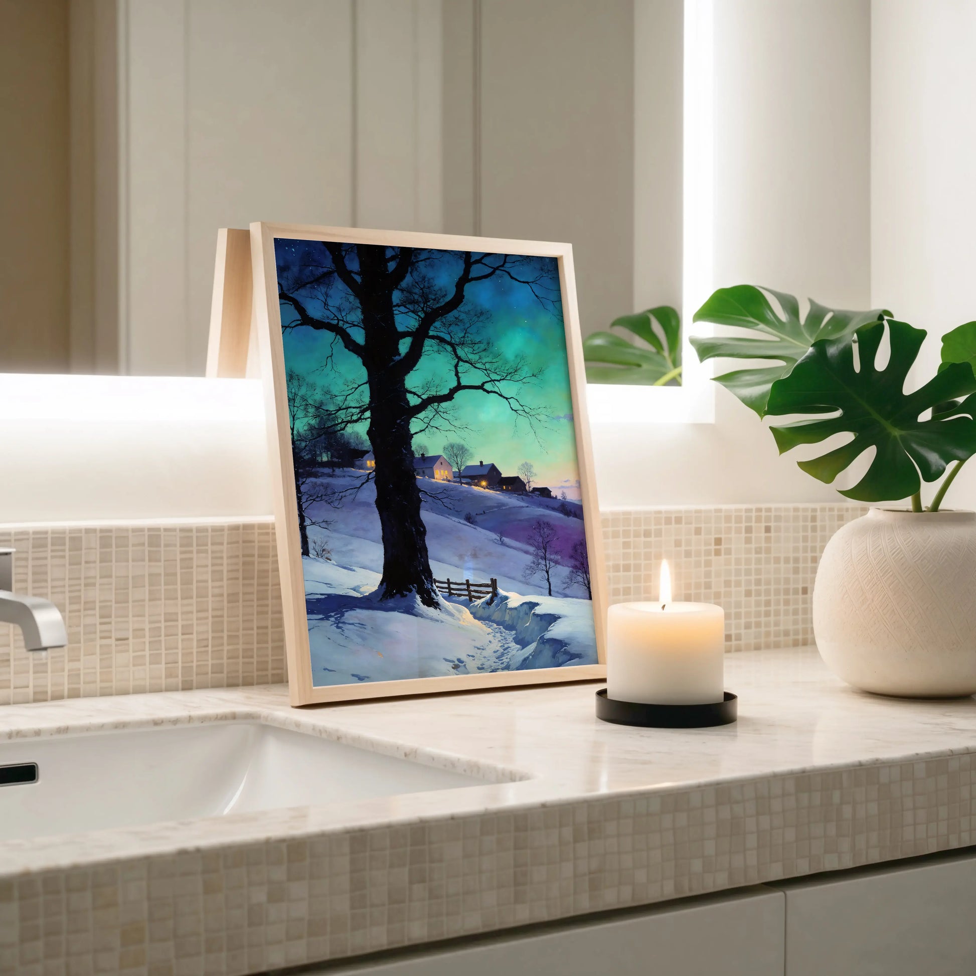 The winter image is beautiful giving off a warm glow that catches your eye as soon as you walk into the room.