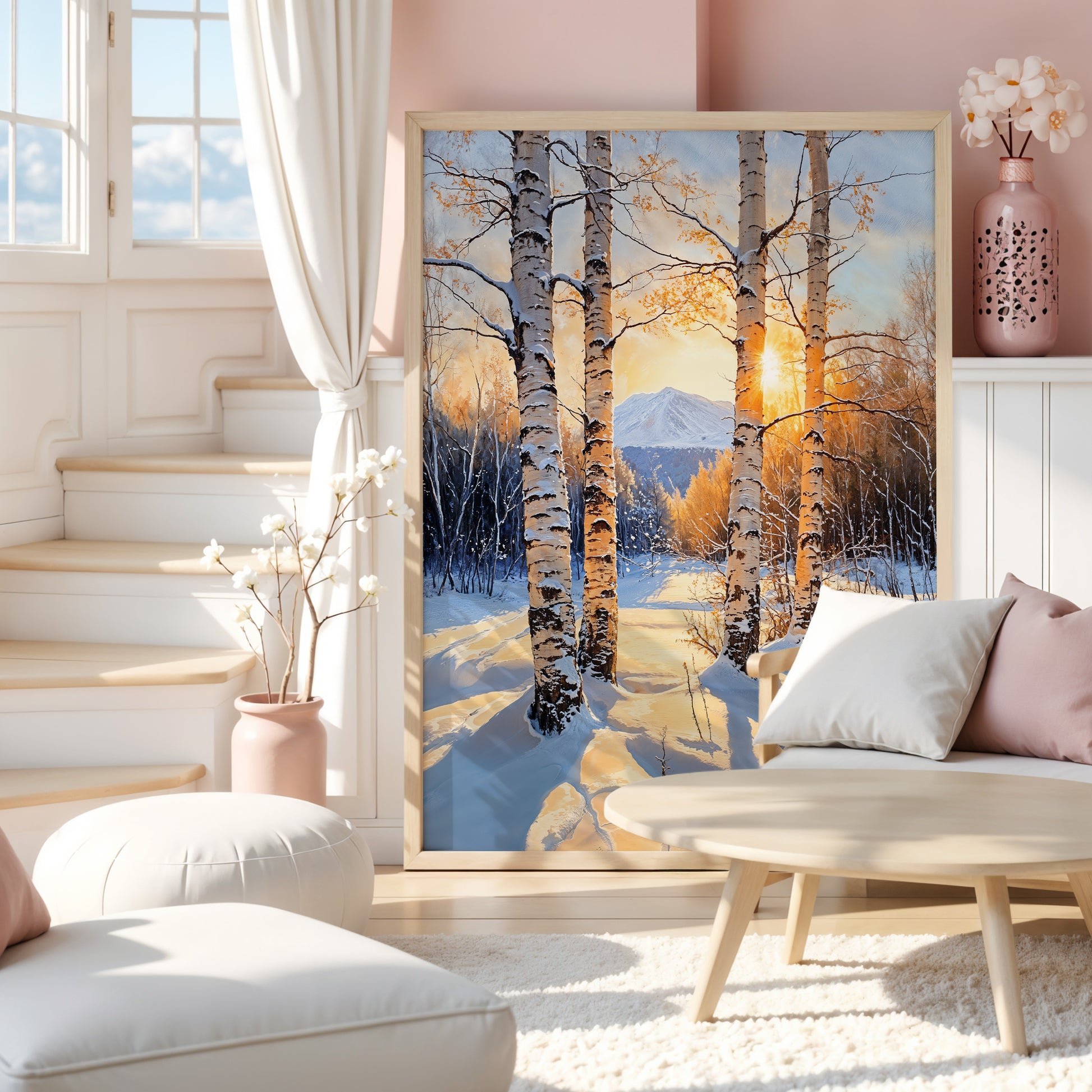 Ideal for minimalist winter interiors, seasonal galleries, or meditation rooms craving calm and luminance, this artwork offers more than beauty—it embodies the moment when light, land, and breath align.