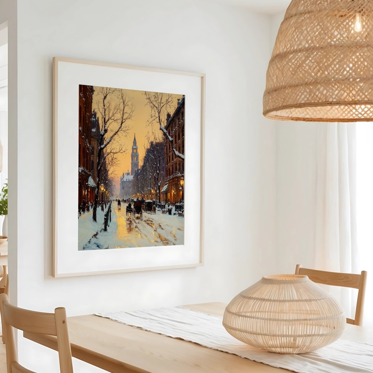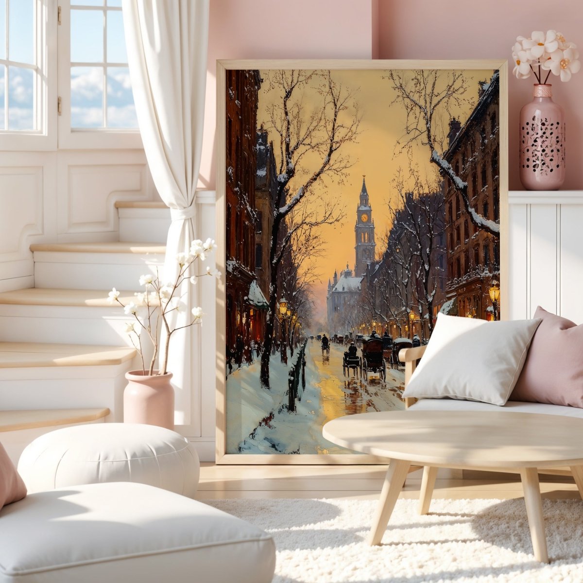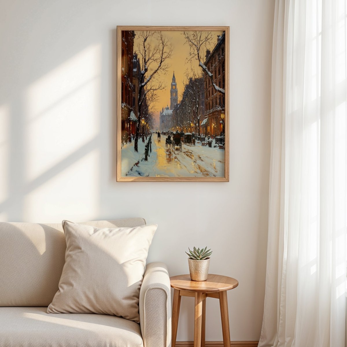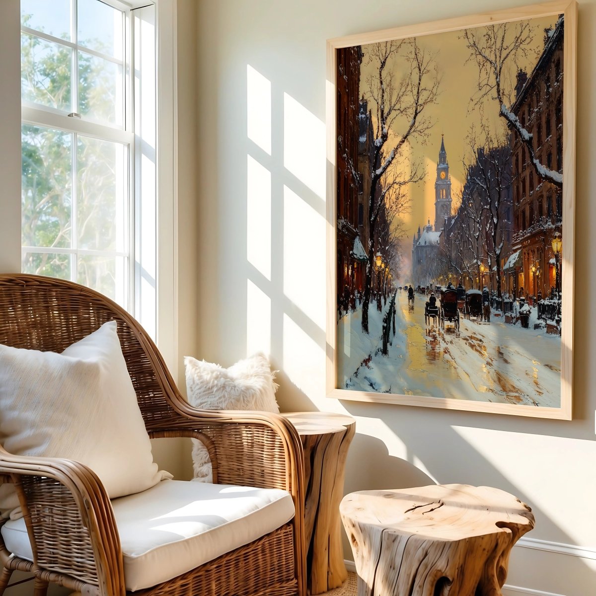 Built with soft chiaroscuro and digital glazing, each detail was hand-rendered and refined for a luminous, layered finish. Ideal for entryways, reading corners, or winter gallery walls—this piece captures the hush of snow and the warmth of remembrance.
