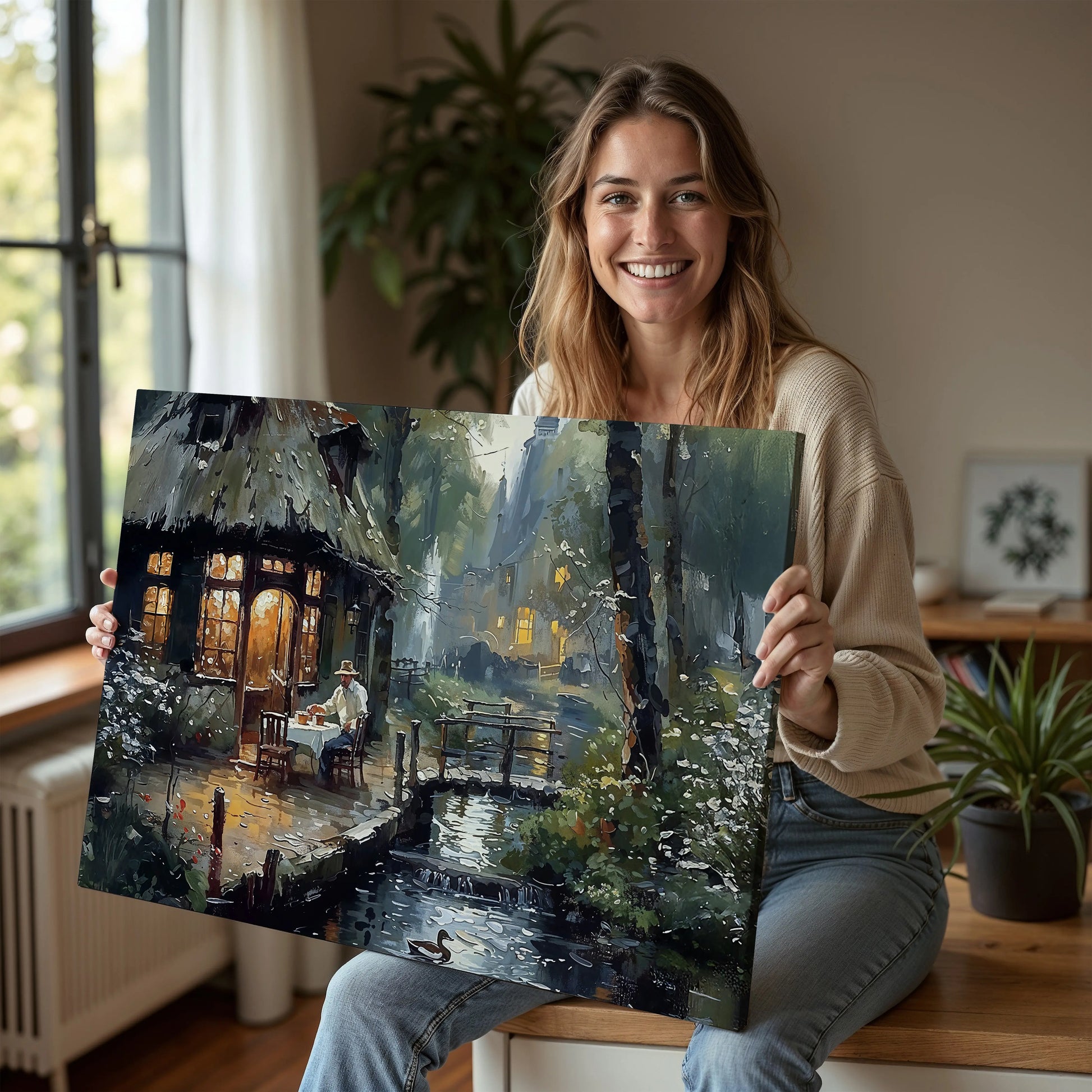 This scene evokes the magic of peaceful isolation — a celebration of quietude and contentment, ideal for interiors that cherish warmth, reflection, and nature’s charm.