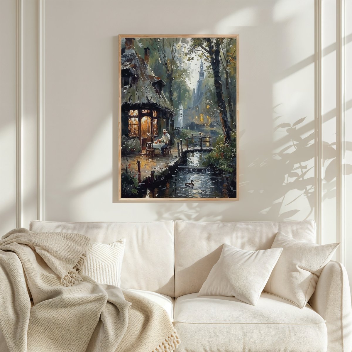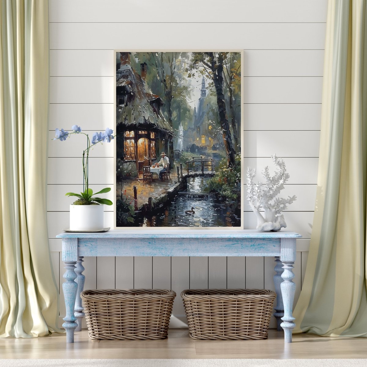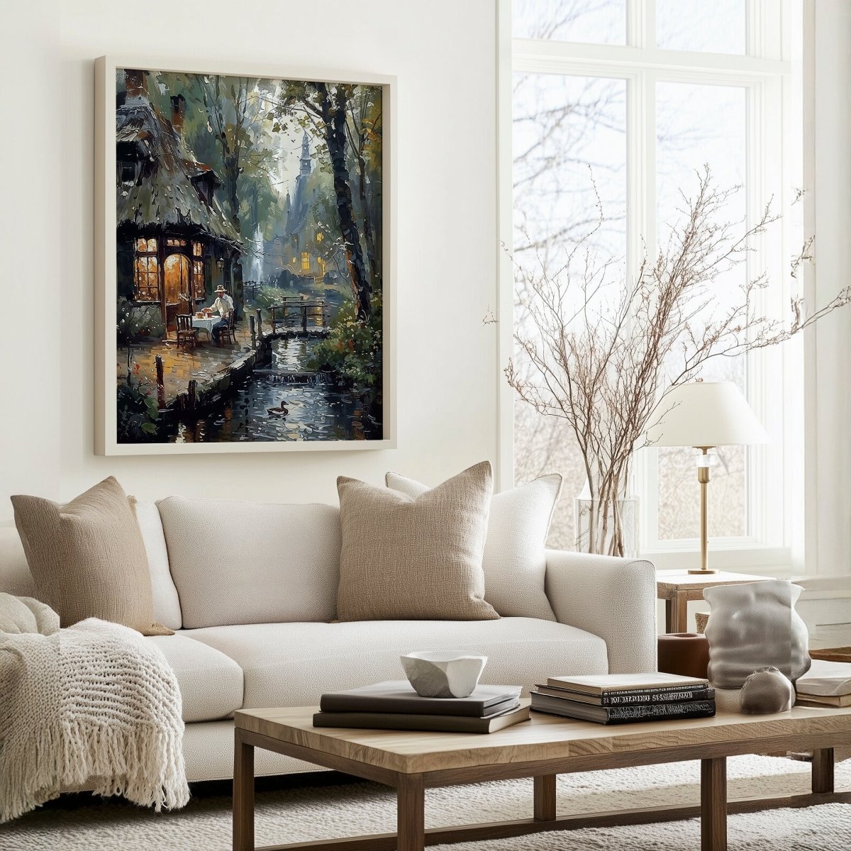 Perfect for interiors that celebrate peace, thought, and atmosphere, the painting infuses spaces with a meditative calm. It speaks to the beauty of time suspended, where solitude is not emptiness but presence. In Solitude, light and silence weave together, offering a sanctuary of reflection.