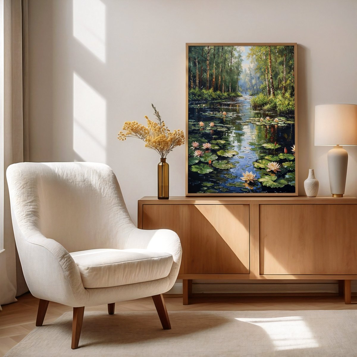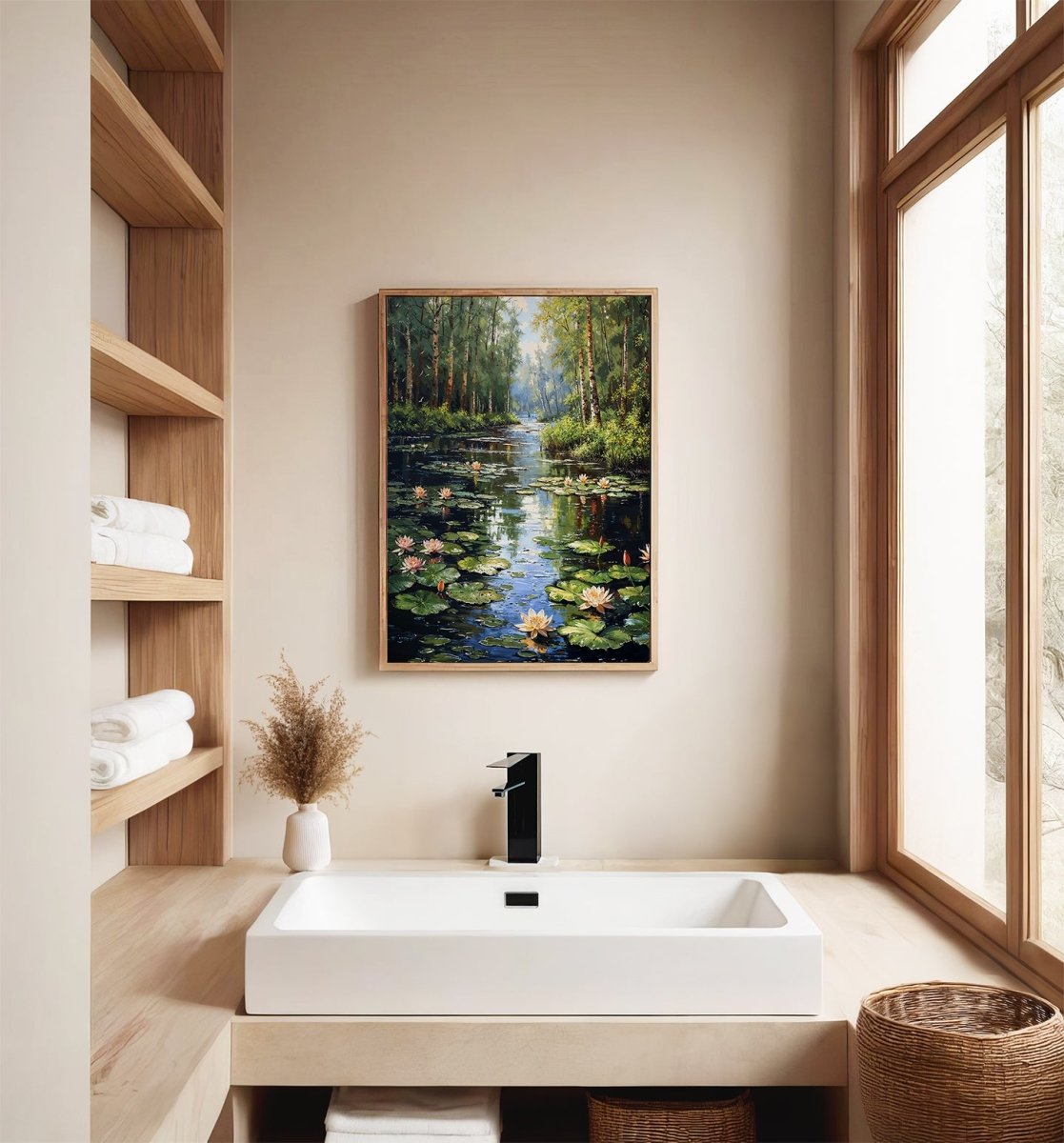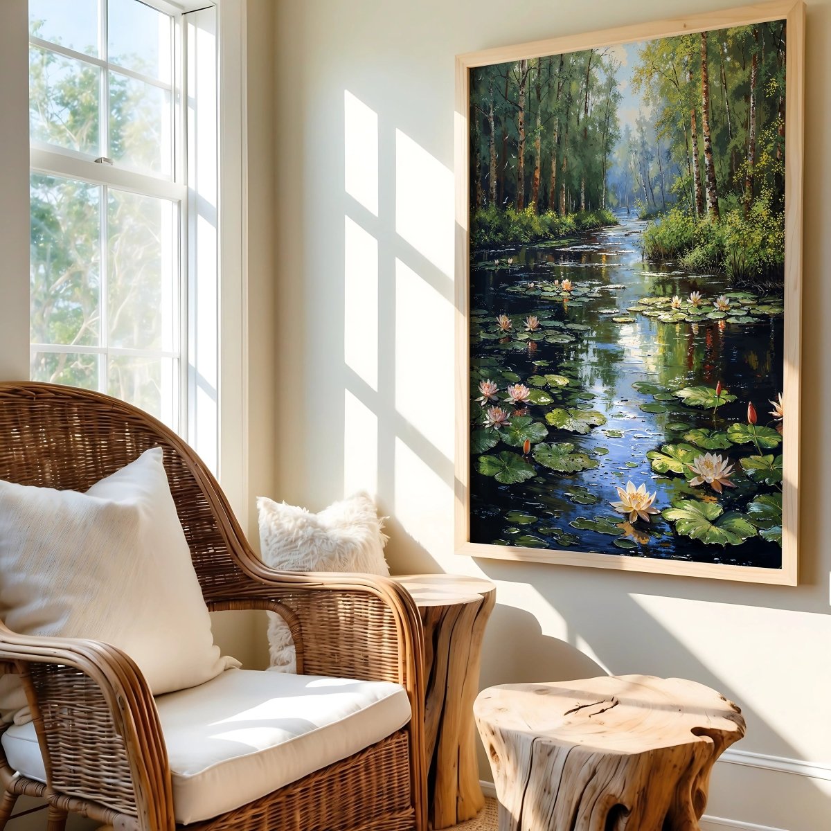 Ideal for bedrooms, wellness spaces, or meditative interiors, this artwork brings quiet elegance and nature’s rhythm to your walls. A still pond for the spirit—peaceful, immersive, and timeless.