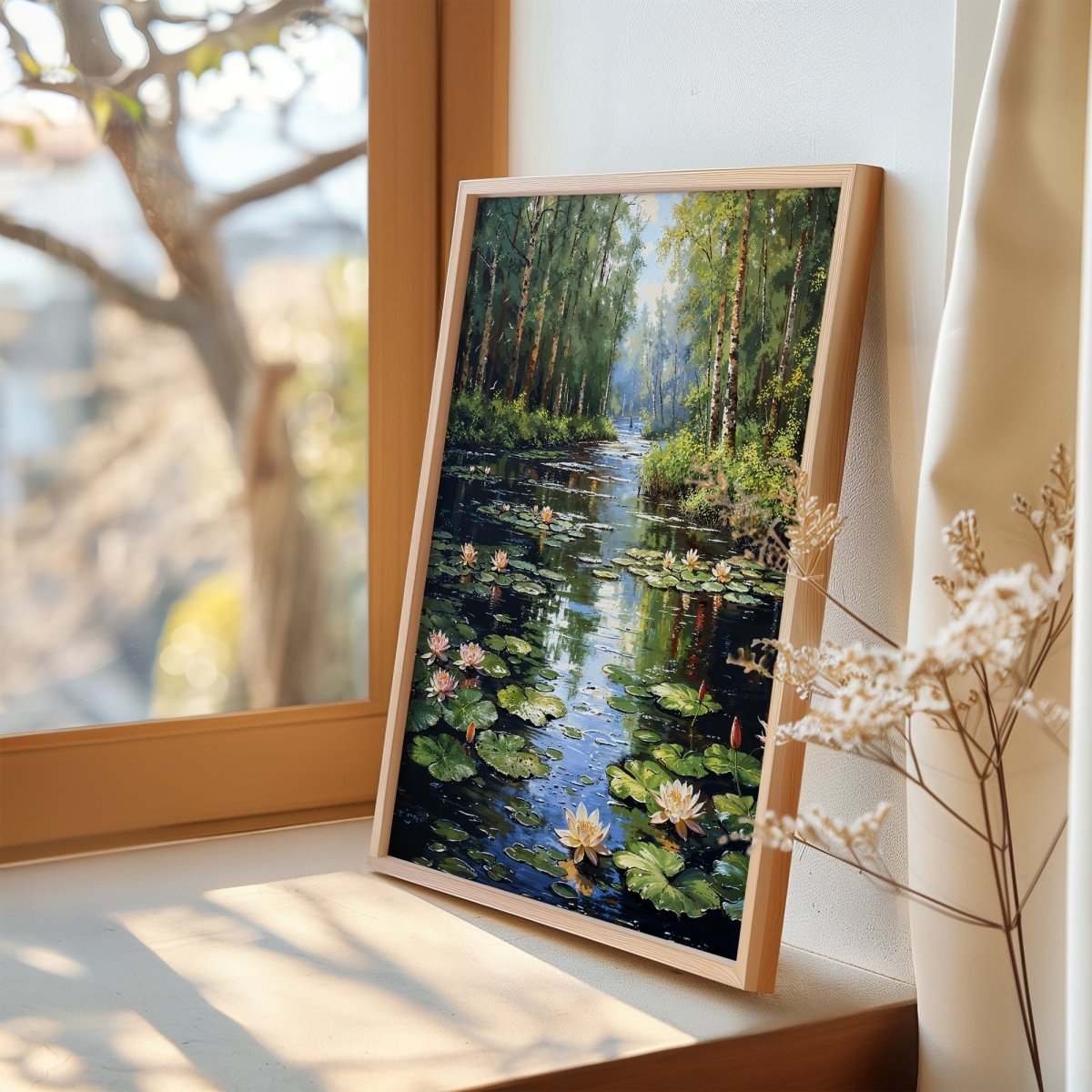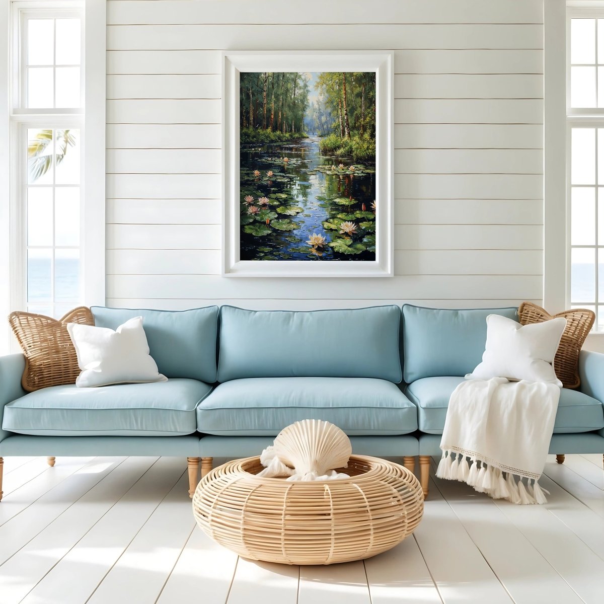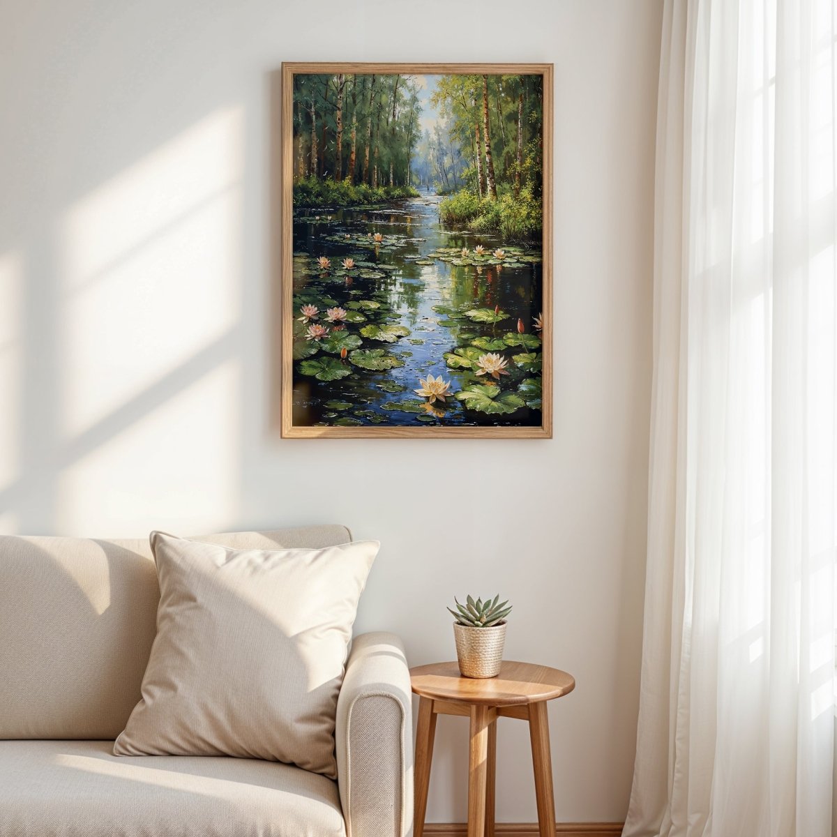 Ideal for bedrooms, wellness spaces, or meditative interiors, this artwork brings quiet elegance and nature’s rhythm to your walls. A still pond for the spirit—peaceful, immersive, and timeless.