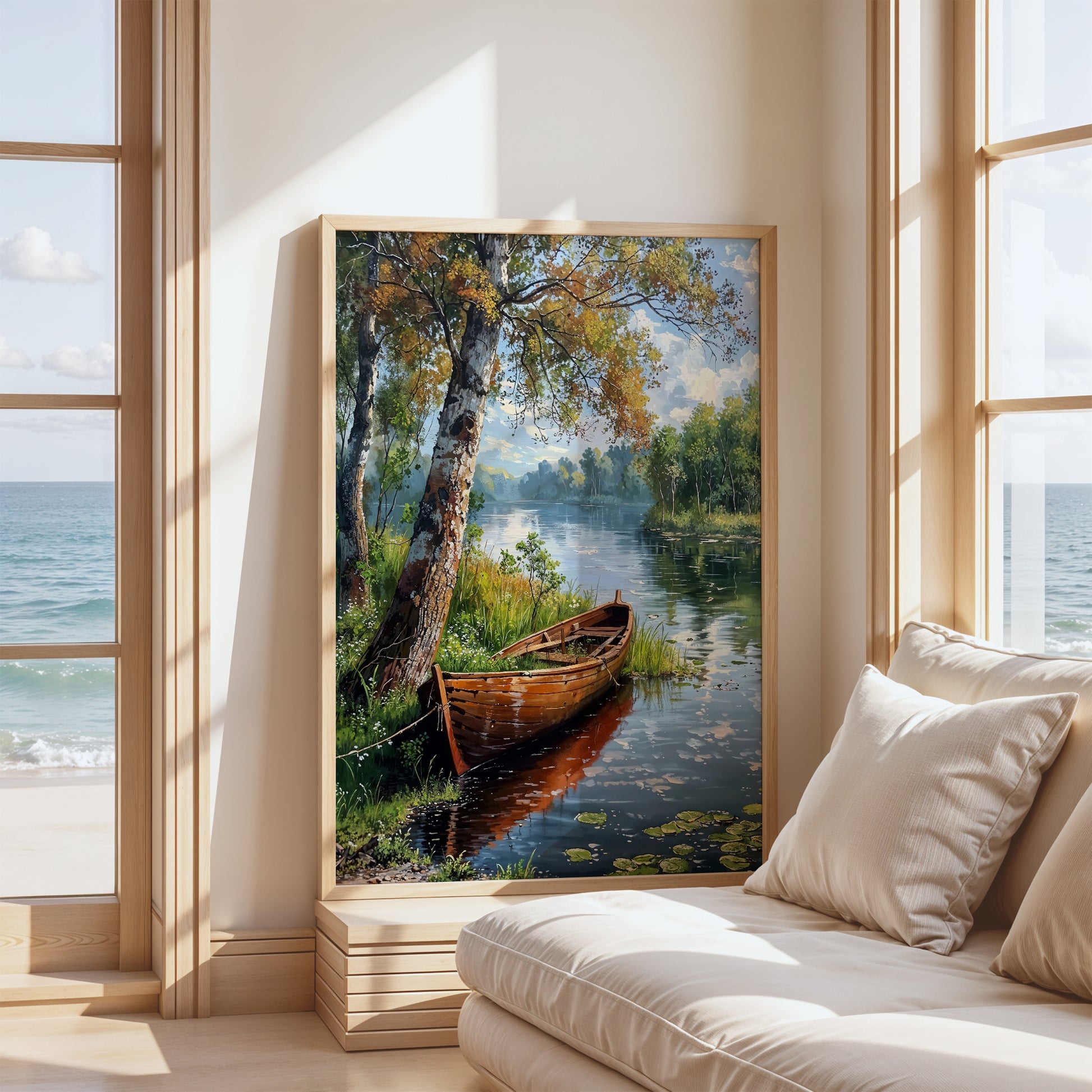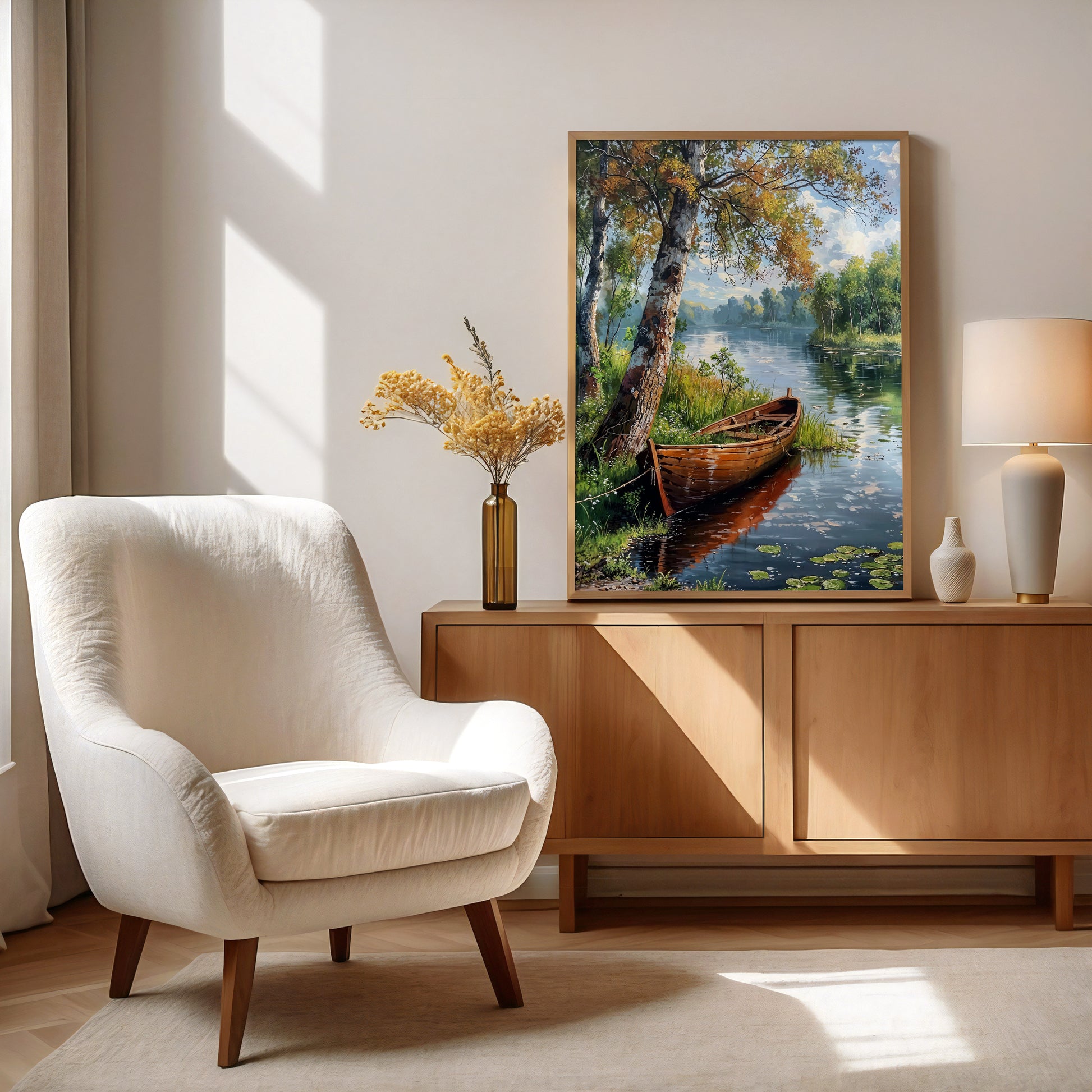 Perfect for cabin walls, nature-inspired bedrooms, rustic libraries, or contemplative nooks, this artwork doesn’t ask for attention—it earns it. A quiet tether. A suspended moment. Water that doesn’t rush, but remembers.