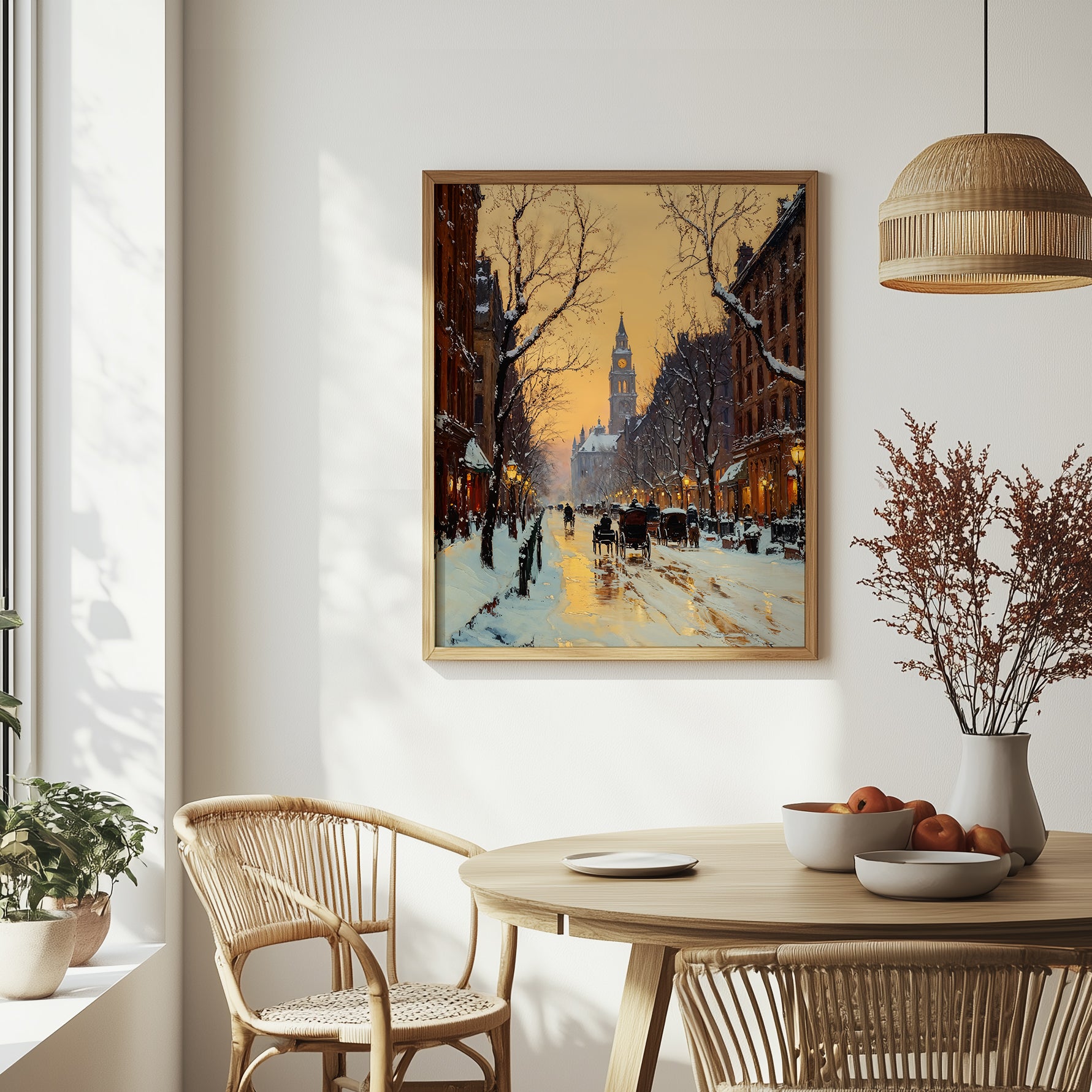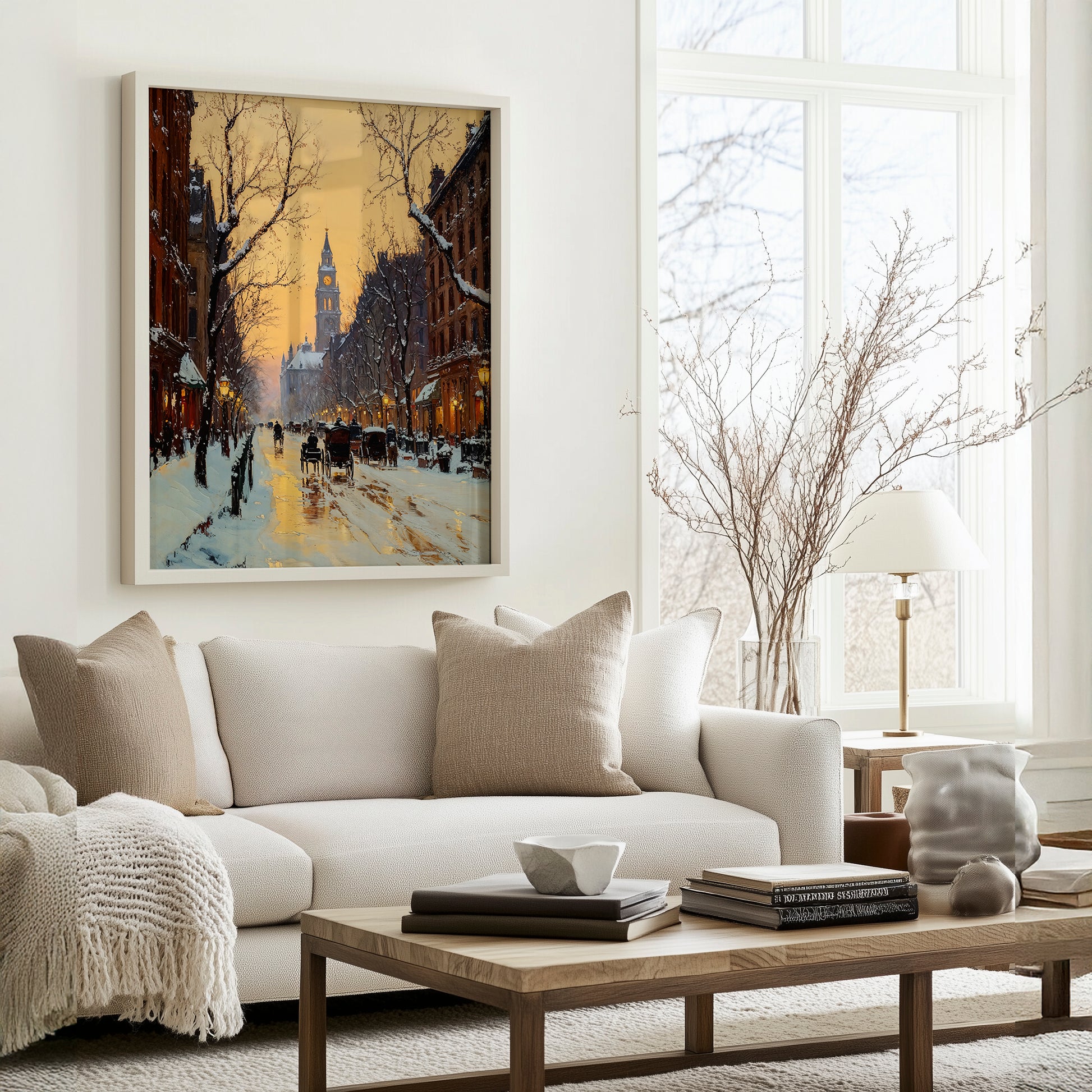 Built with soft chiaroscuro and digital glazing, each detail was hand-rendered and refined for a luminous, layered finish. Ideal for entryways, reading corners, or winter gallery walls—this piece captures the hush of snow and the warmth of remembrance.