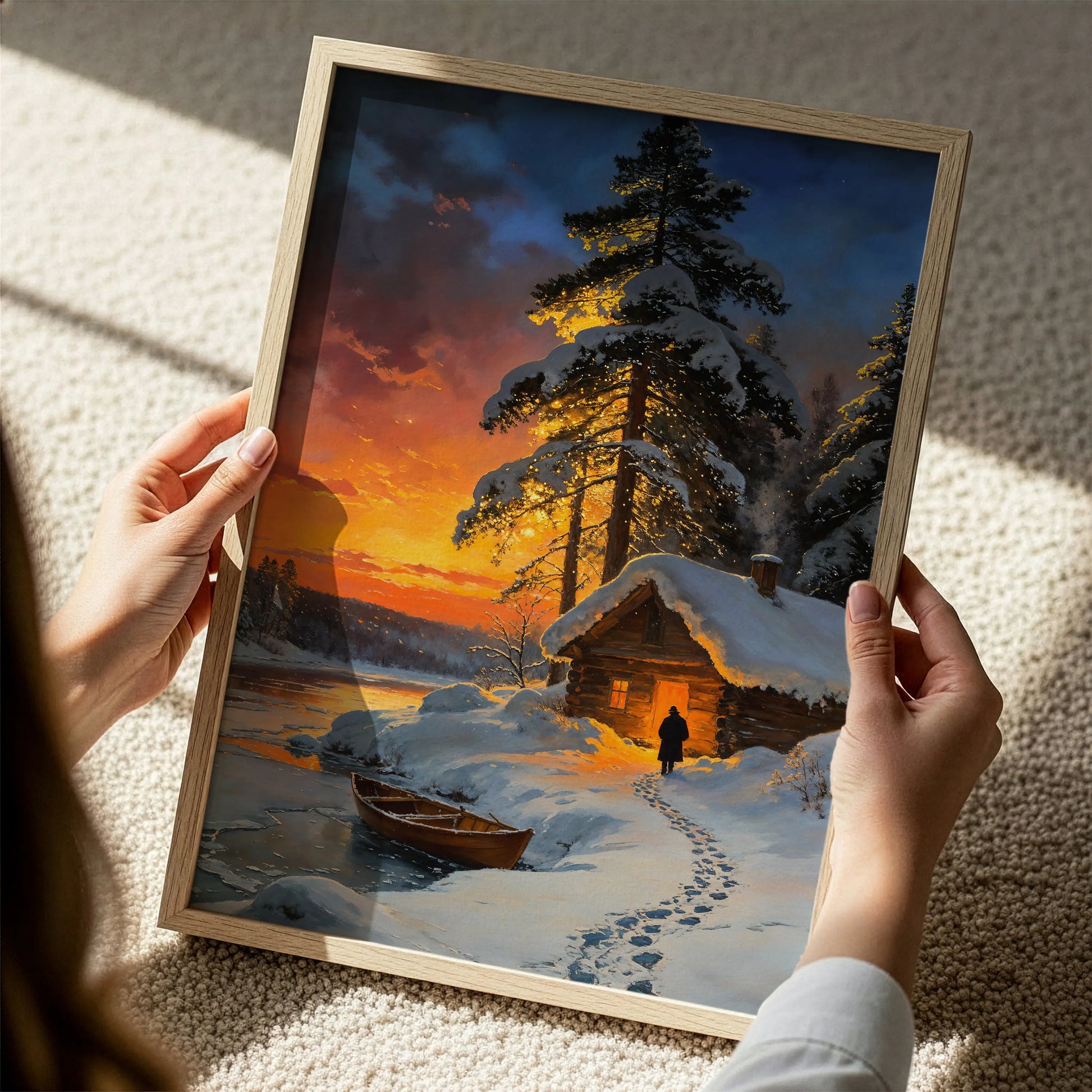 The scene evokes not only survival but grace — a story of daring that unfolds in silence, under the vast weight of winter’s beauty. It invites the viewer to feel the cold air, the crunch of snow, and the pulse of courage that propels the wanderer forward.