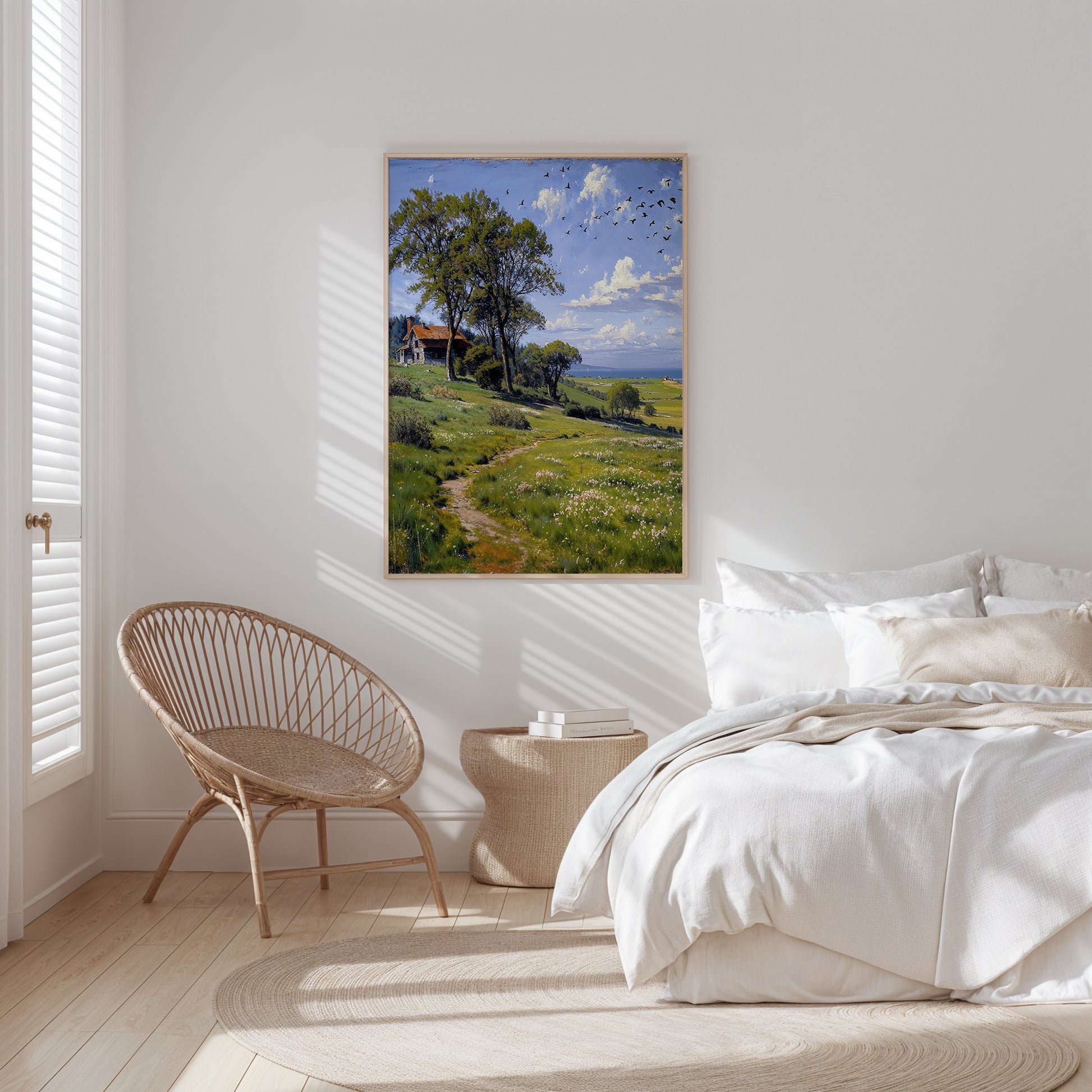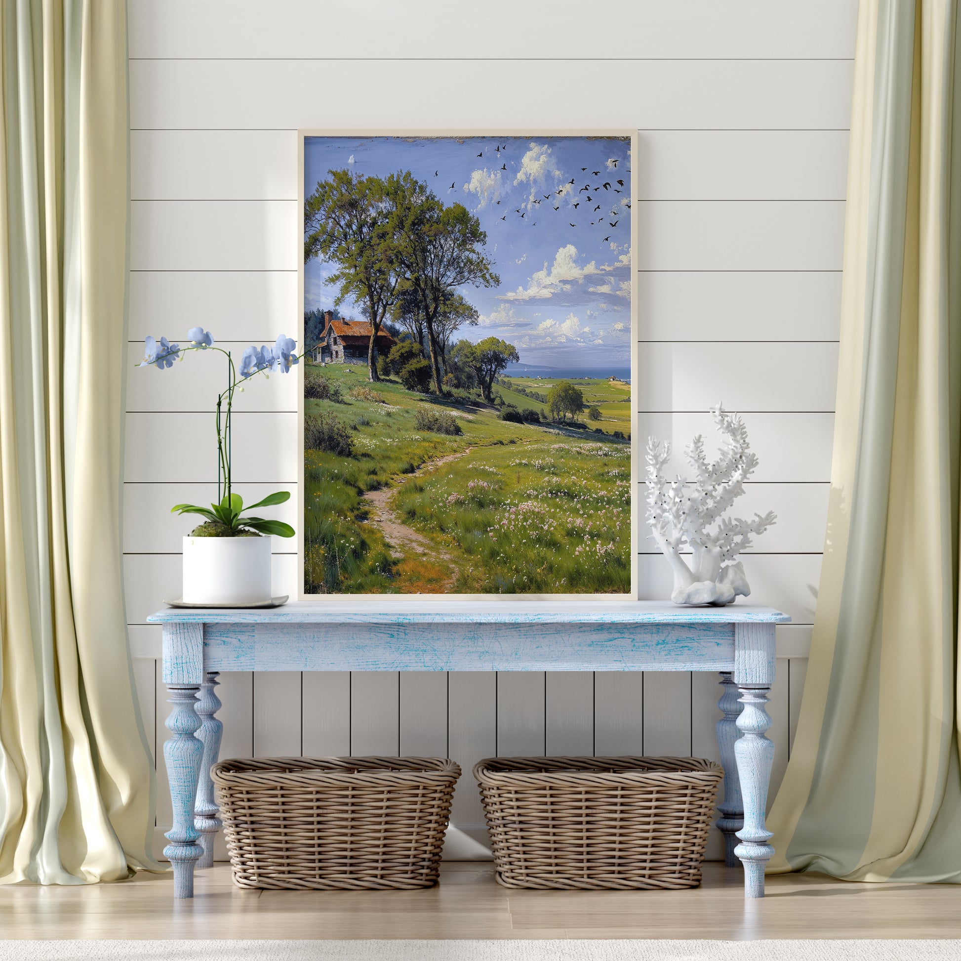 Perfect for serene living rooms, reading nooks, or transitional spaces craving calm, the artwork becomes both journey and resting place—light-filled, open, and profoundly still.