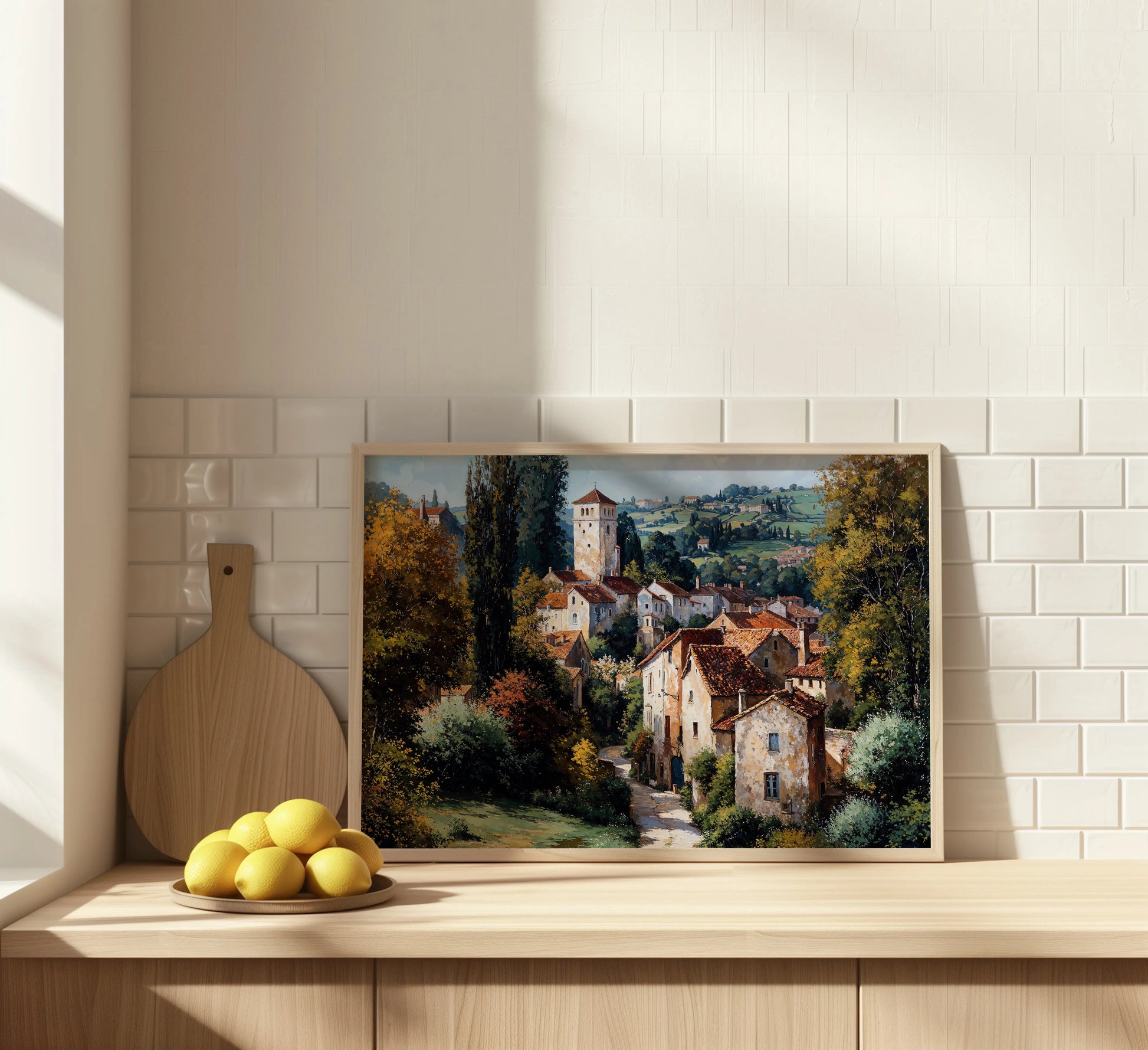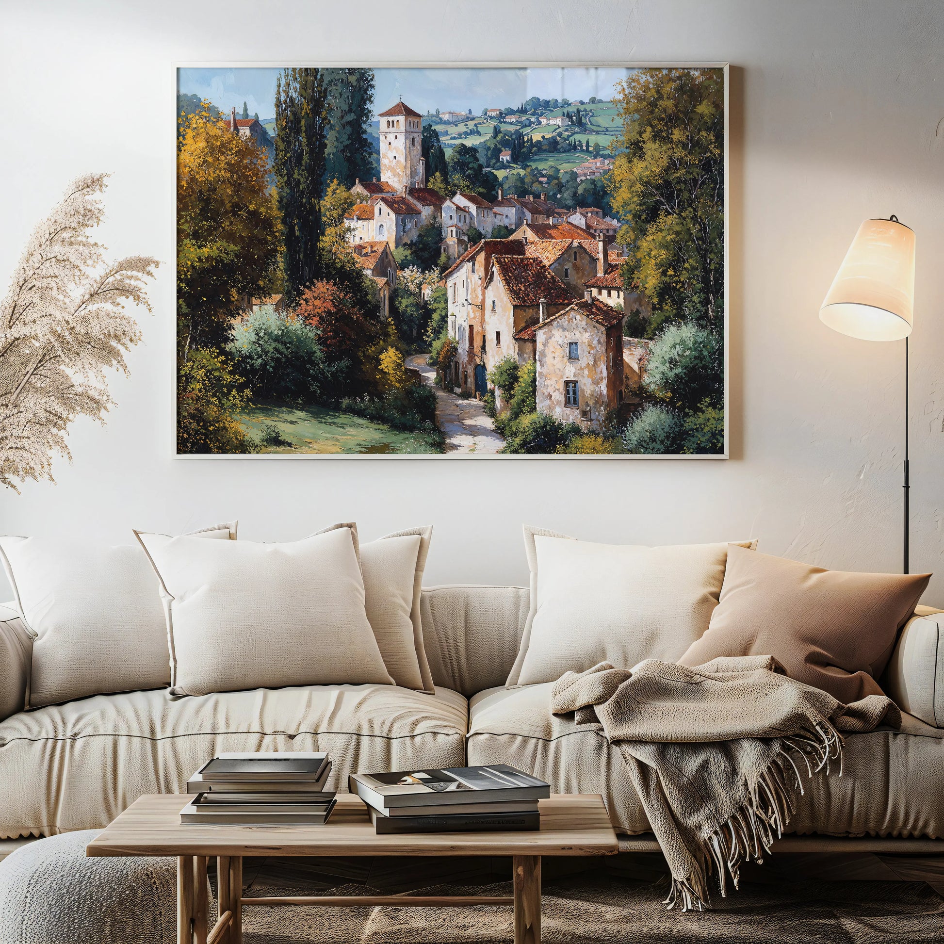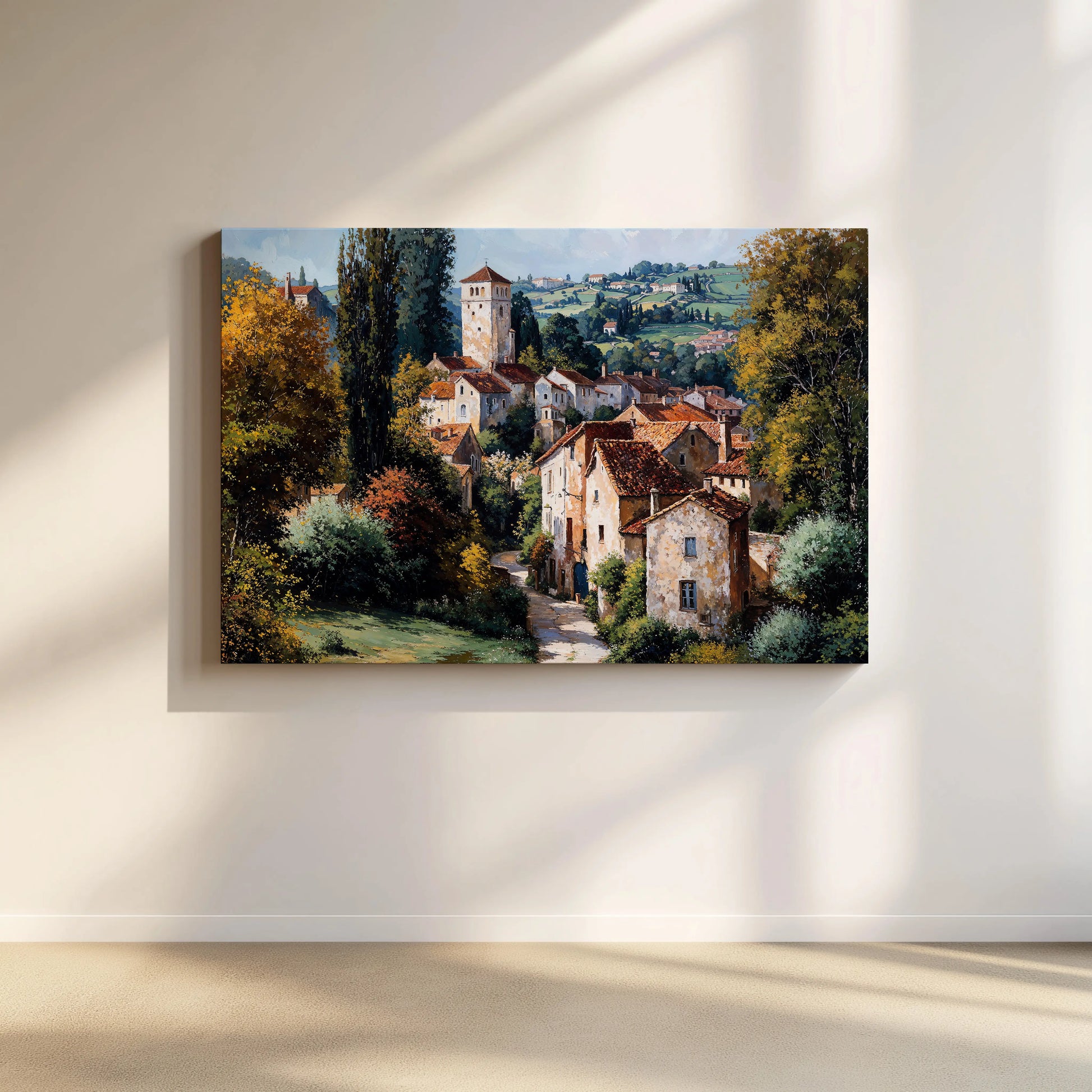 Perfect for adding warmth and elegance to your home or office, this stretched canvas print is an ideal gift for travel lovers, nature enthusiasts, and anyone who appreciates the charm of the European countryside.