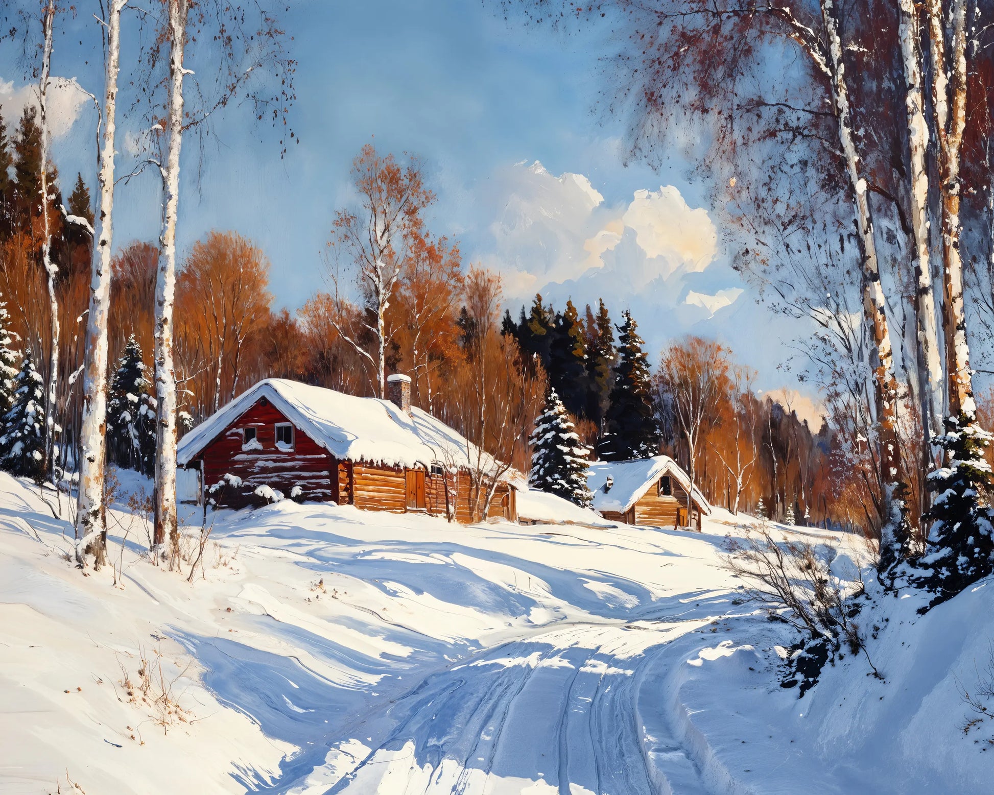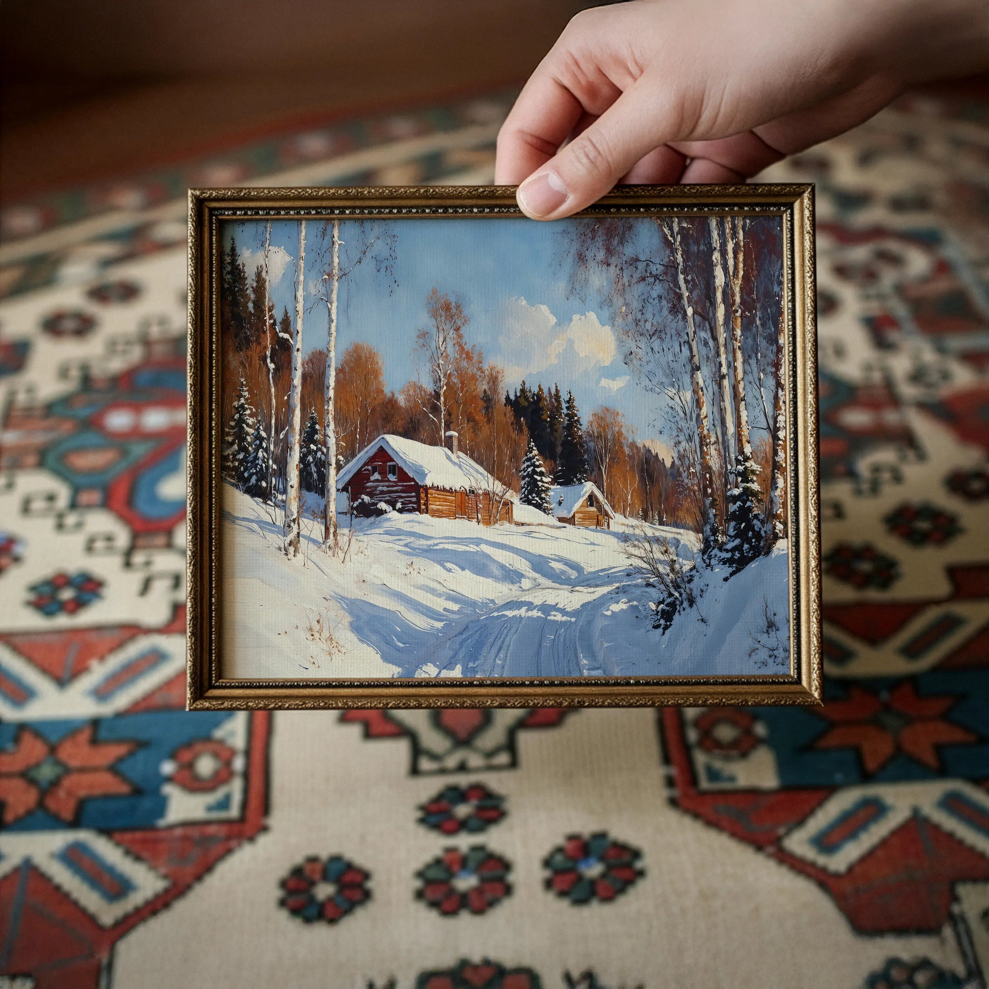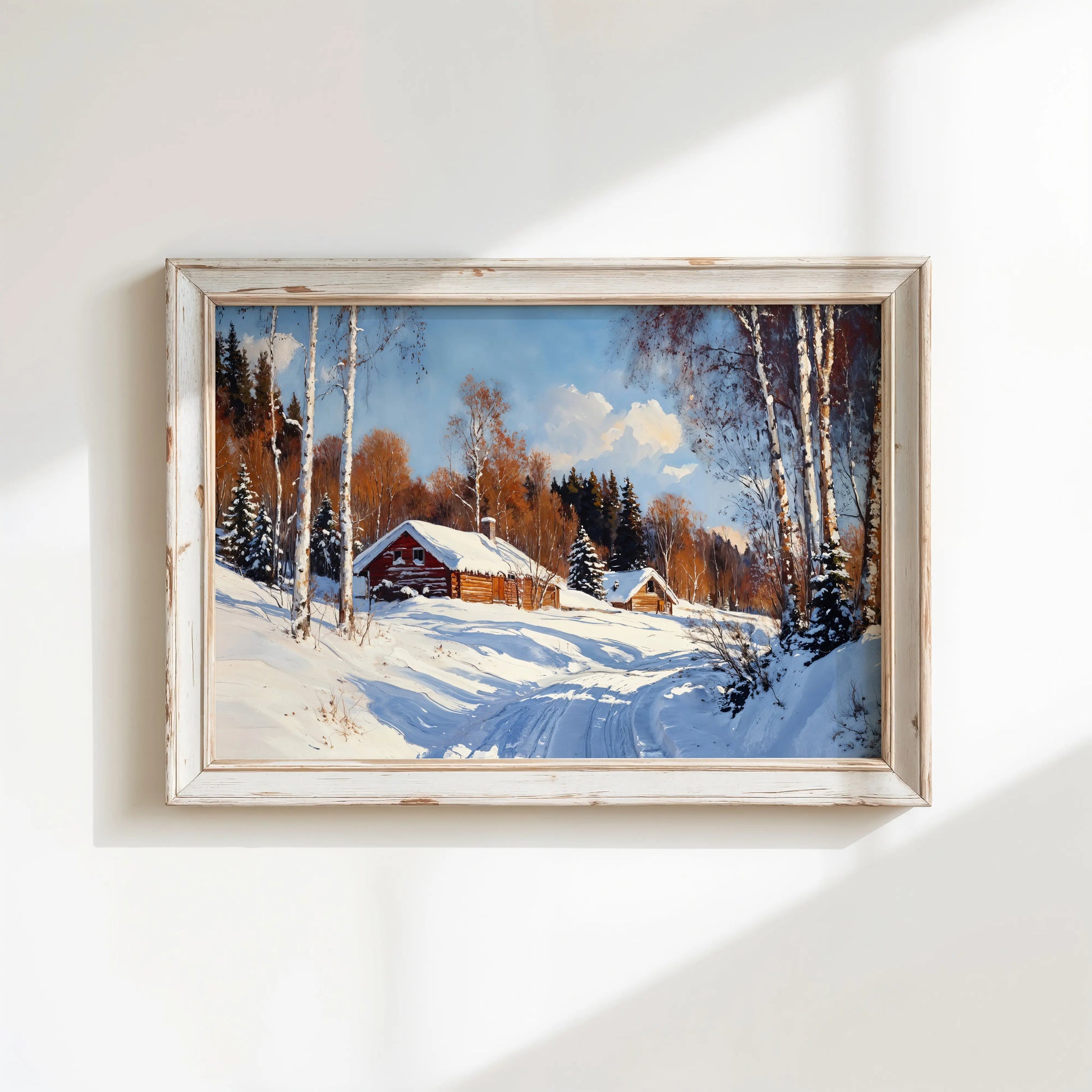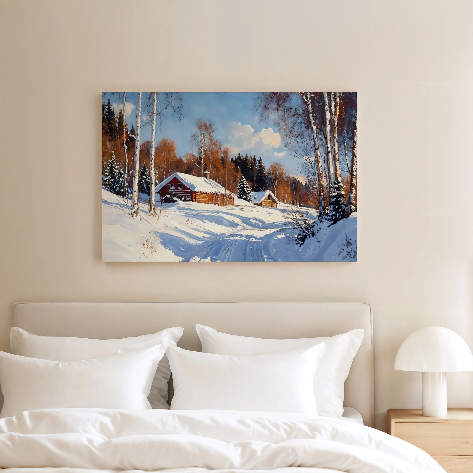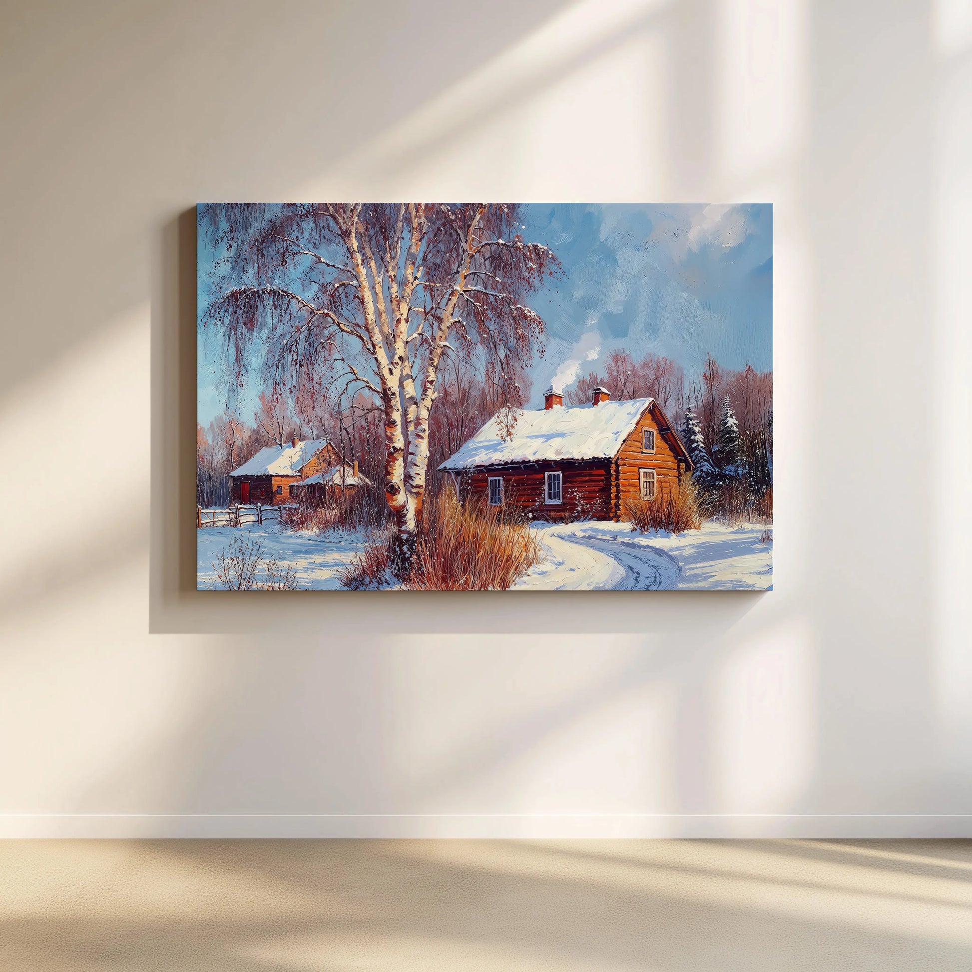 This high-quality stretched canvas brings rustic charm and cozy tranquility into your living space, ideal for winter décor or year-round lovers of the season.
