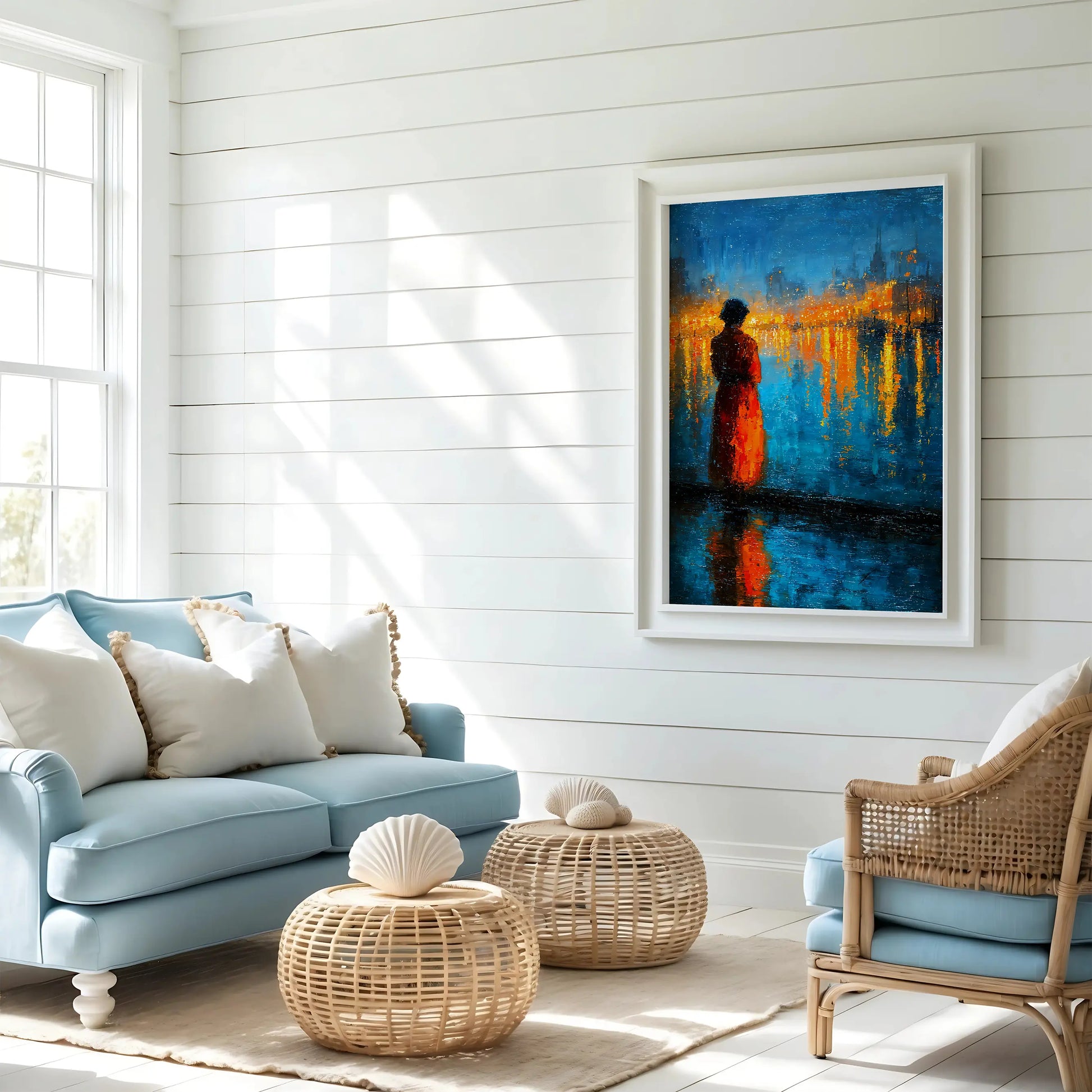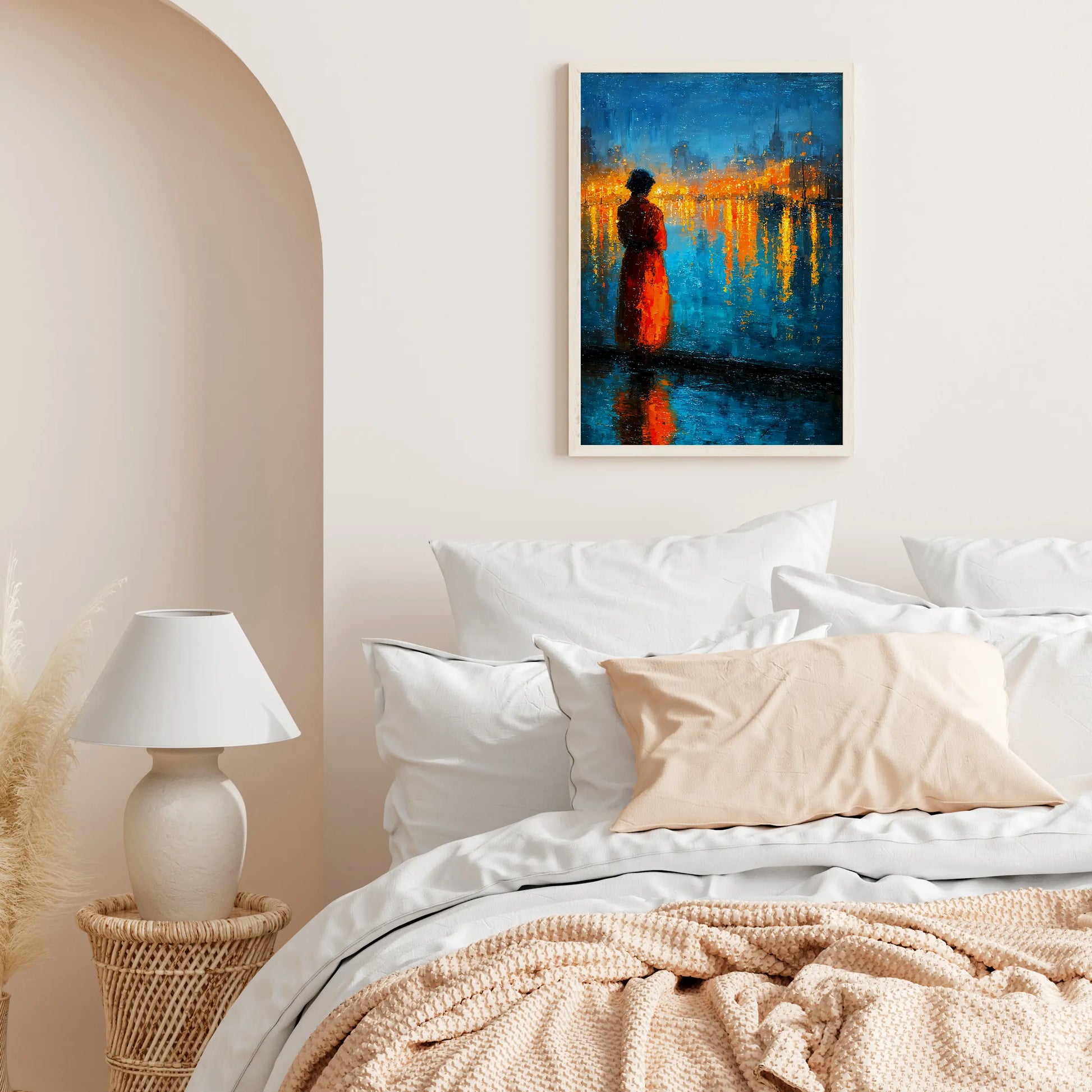 Perfect for introspective interiors, modern collections, or urban romanticism, Yearning holds space for silence. A portrait of longing wrapped in color, light, and the distance between two shores.